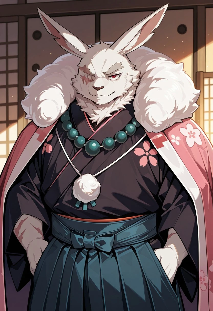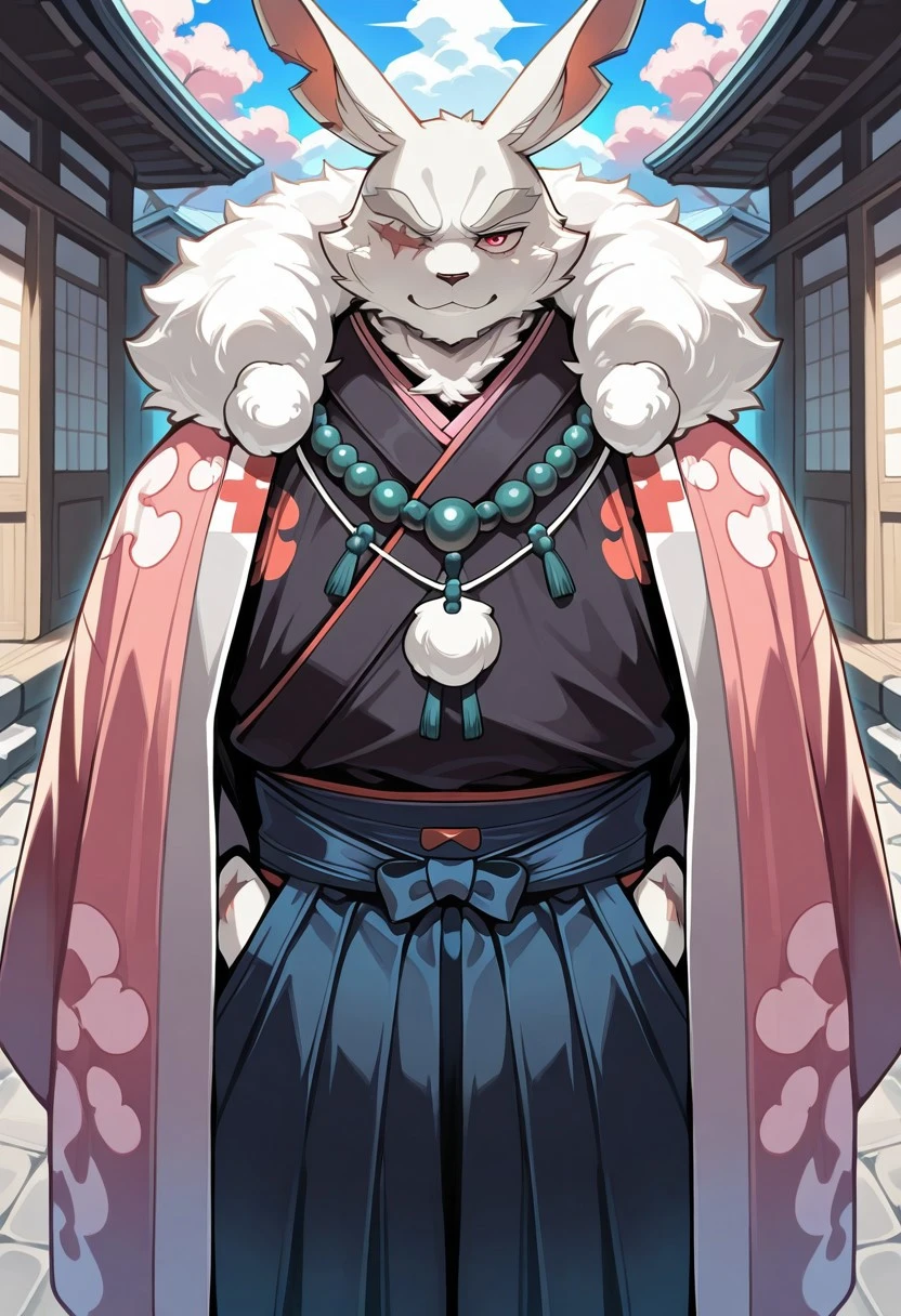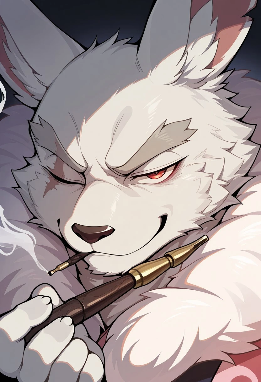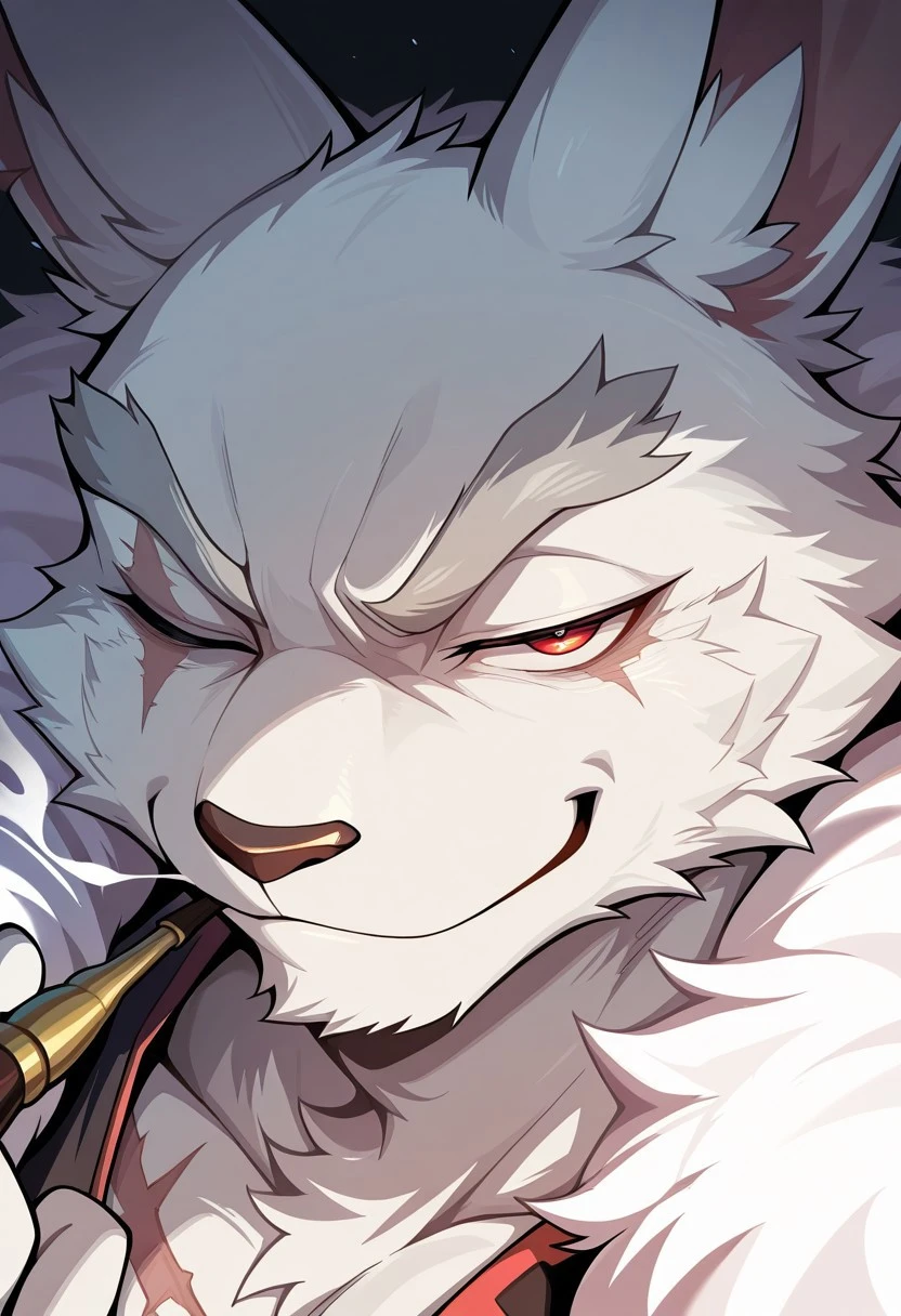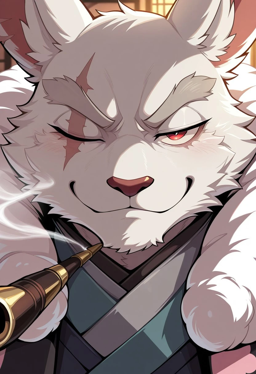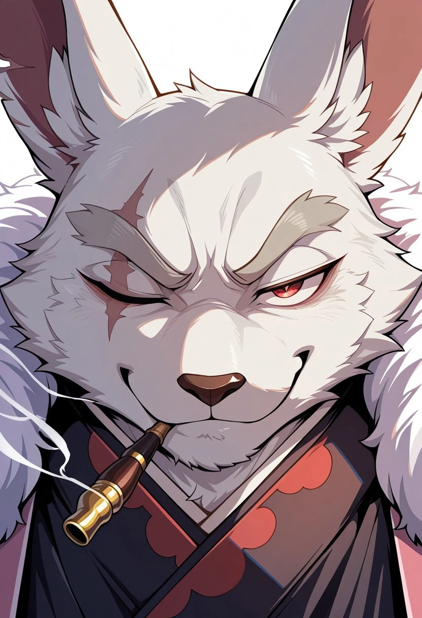 Furry,Vys4ch3,red eyes,one scarred eye,white fur,scars