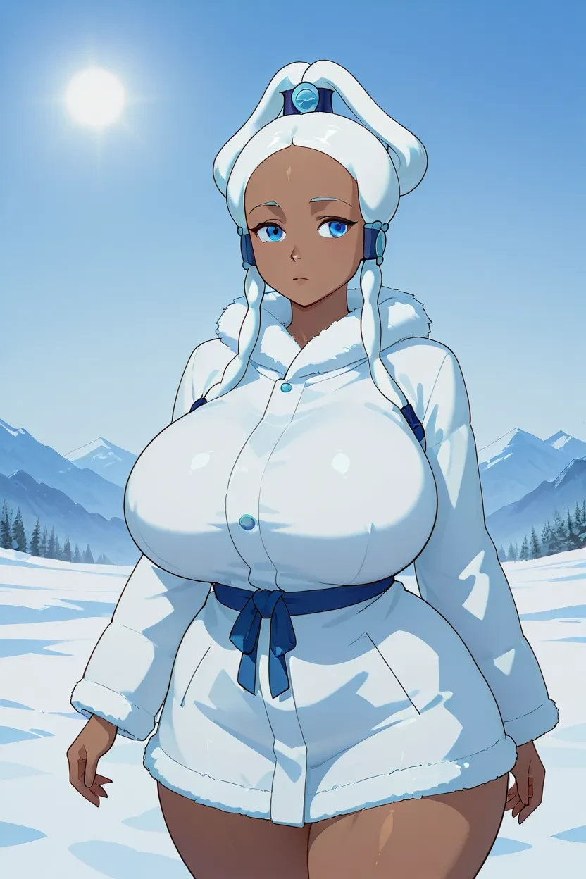 1girl, princess yue, blue eyes, white hair, hair tubes, dark skin, dark-skinned female, , curvy, wide , thick thighs, , fully , , , Avatar The Last Airbender_art_style, 4k, HD, superb quality, Hi-res
