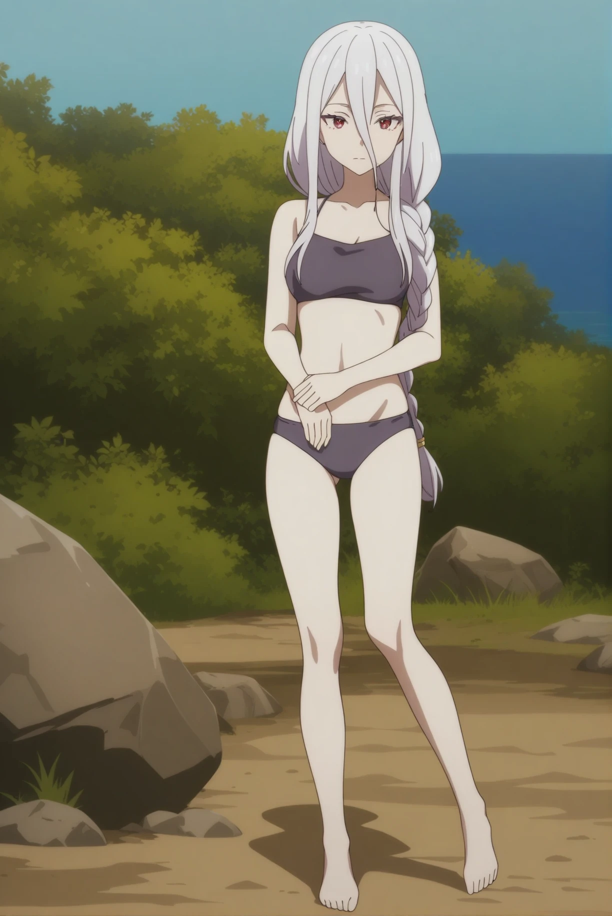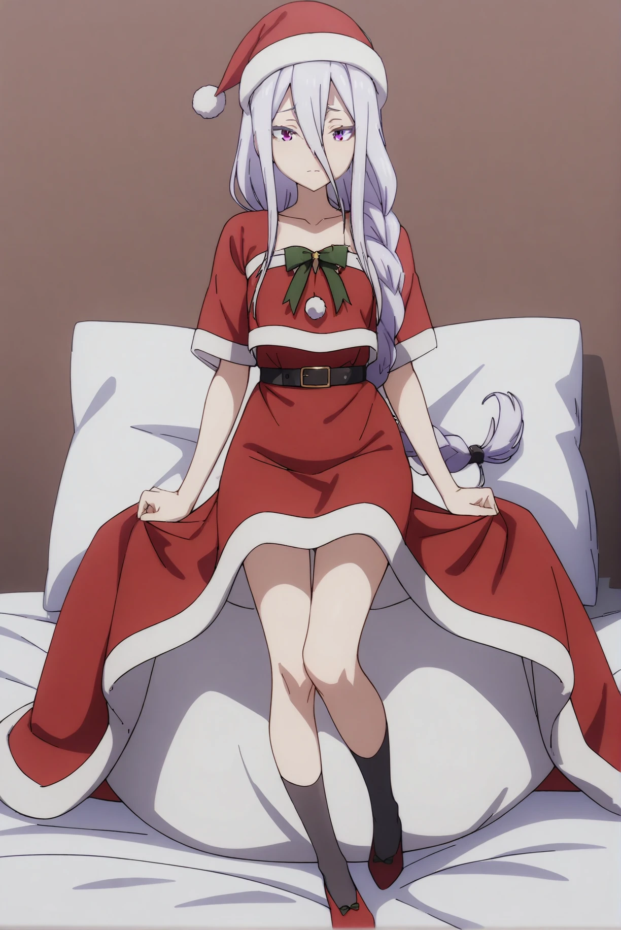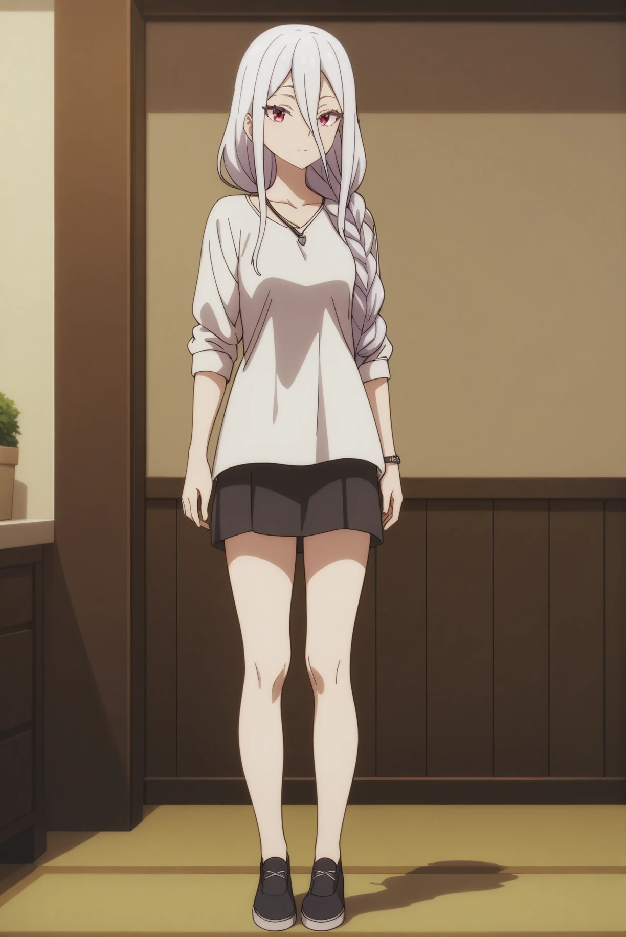 kd-shiraori, white dress, white knee boots, long braid, white hair