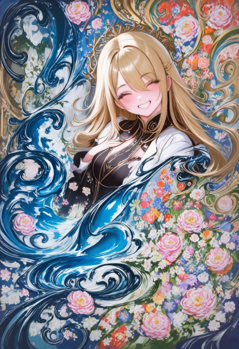 livelydizzystyle, vibrant floral collage livelydizzystyle, flowing liquid patterns, abstract shapes livelydizzystyle, traditional media brushwork, painterly texture livelydizzystyle, ornate decorative motifs, layered collage textures livelydizzystyle, bold ink waves, high-contrast brushwork, surreal composition