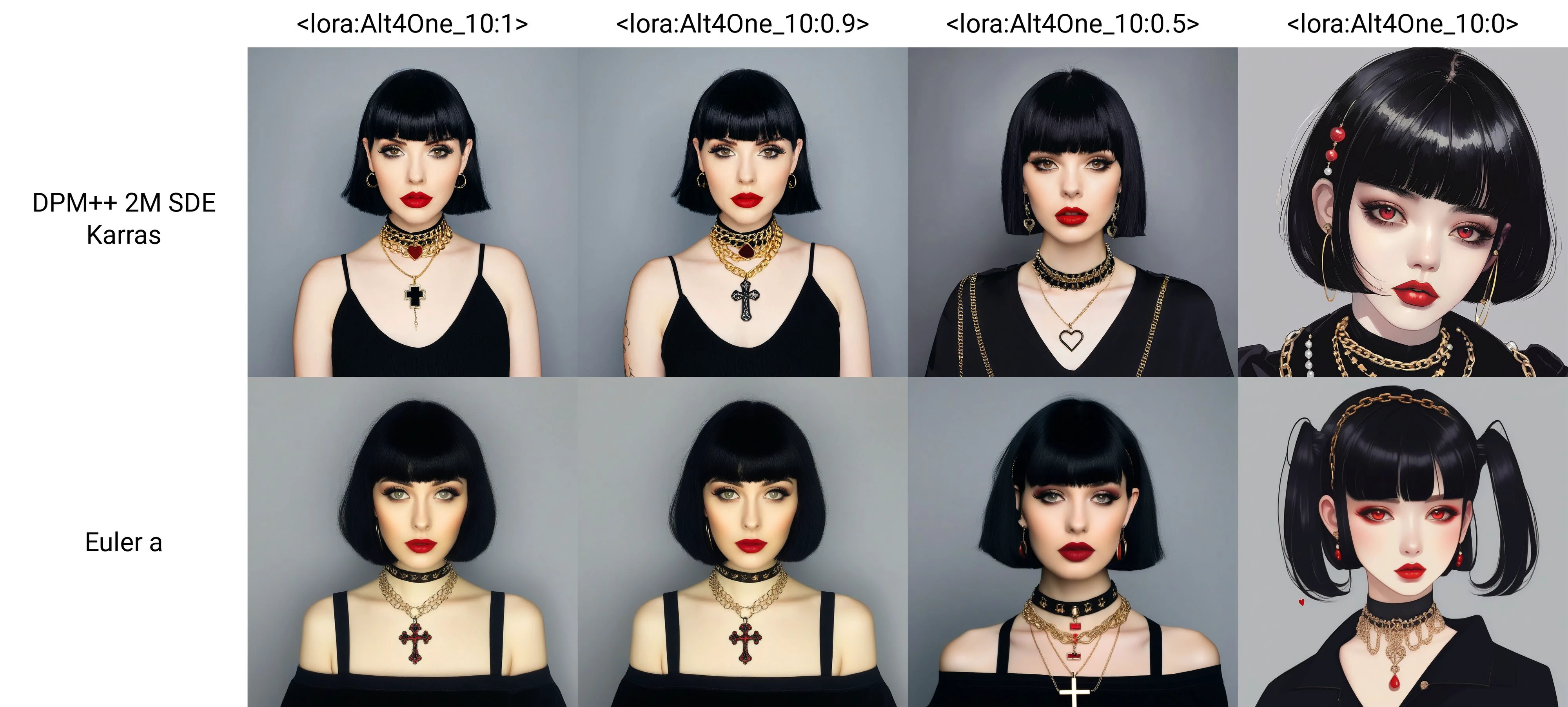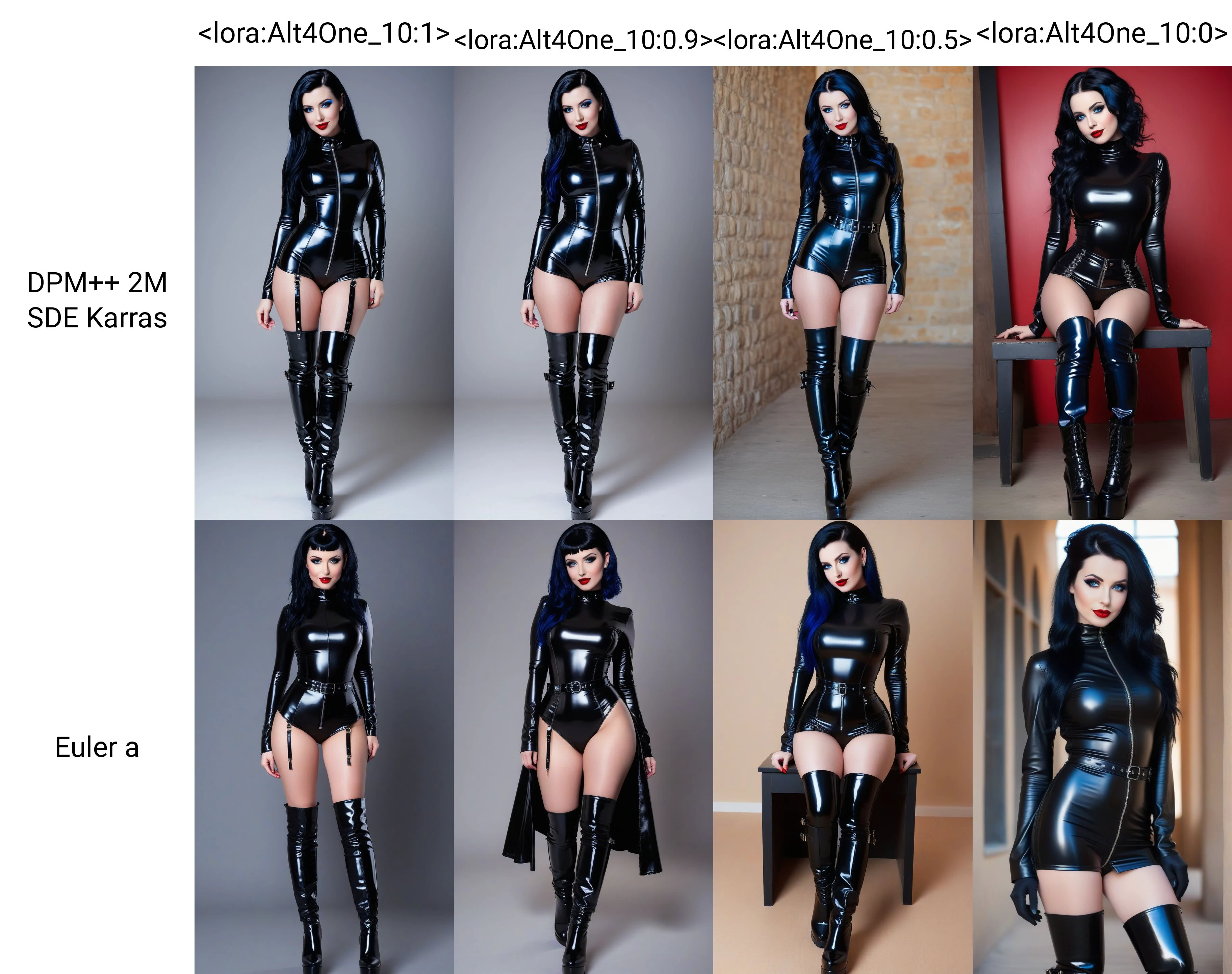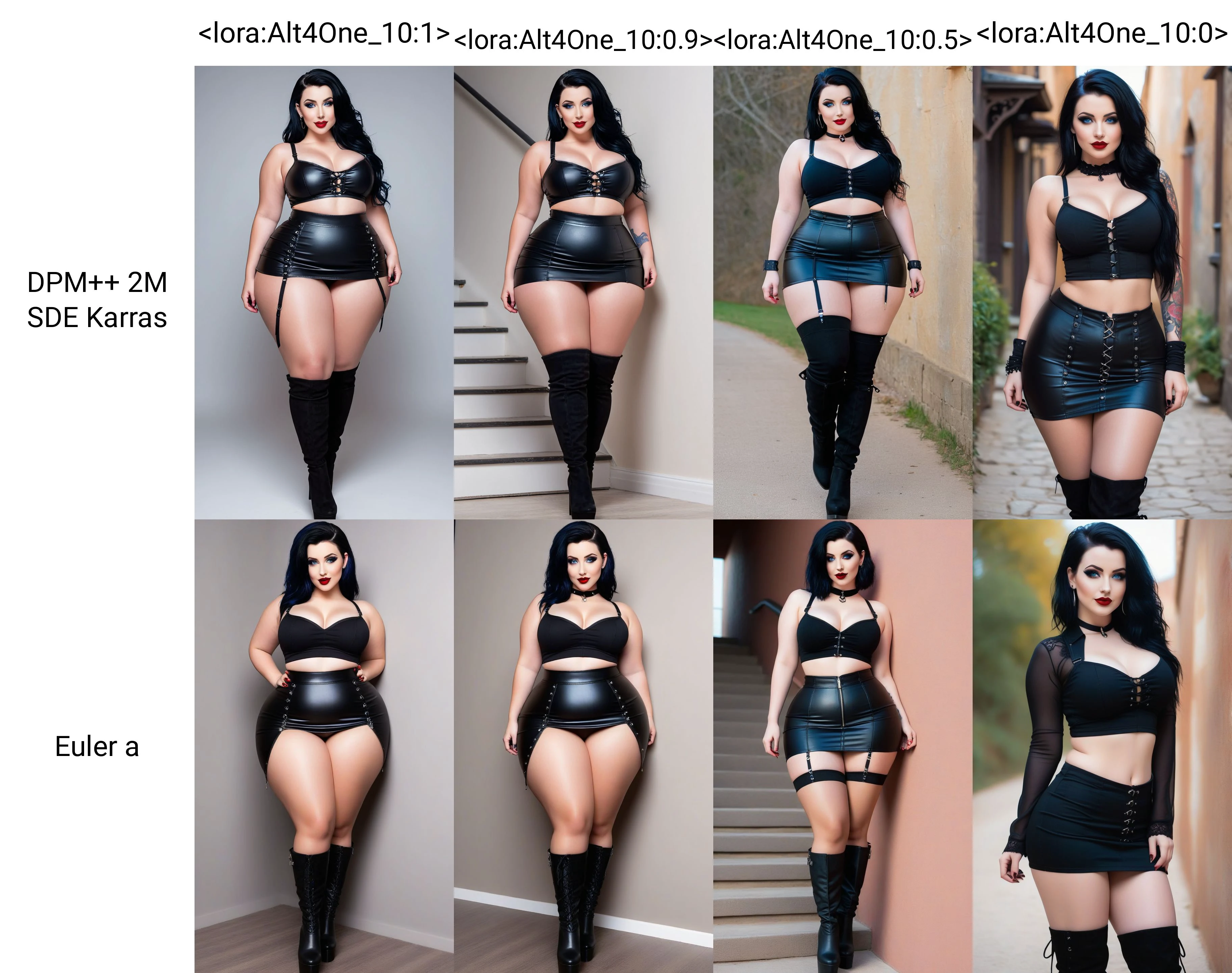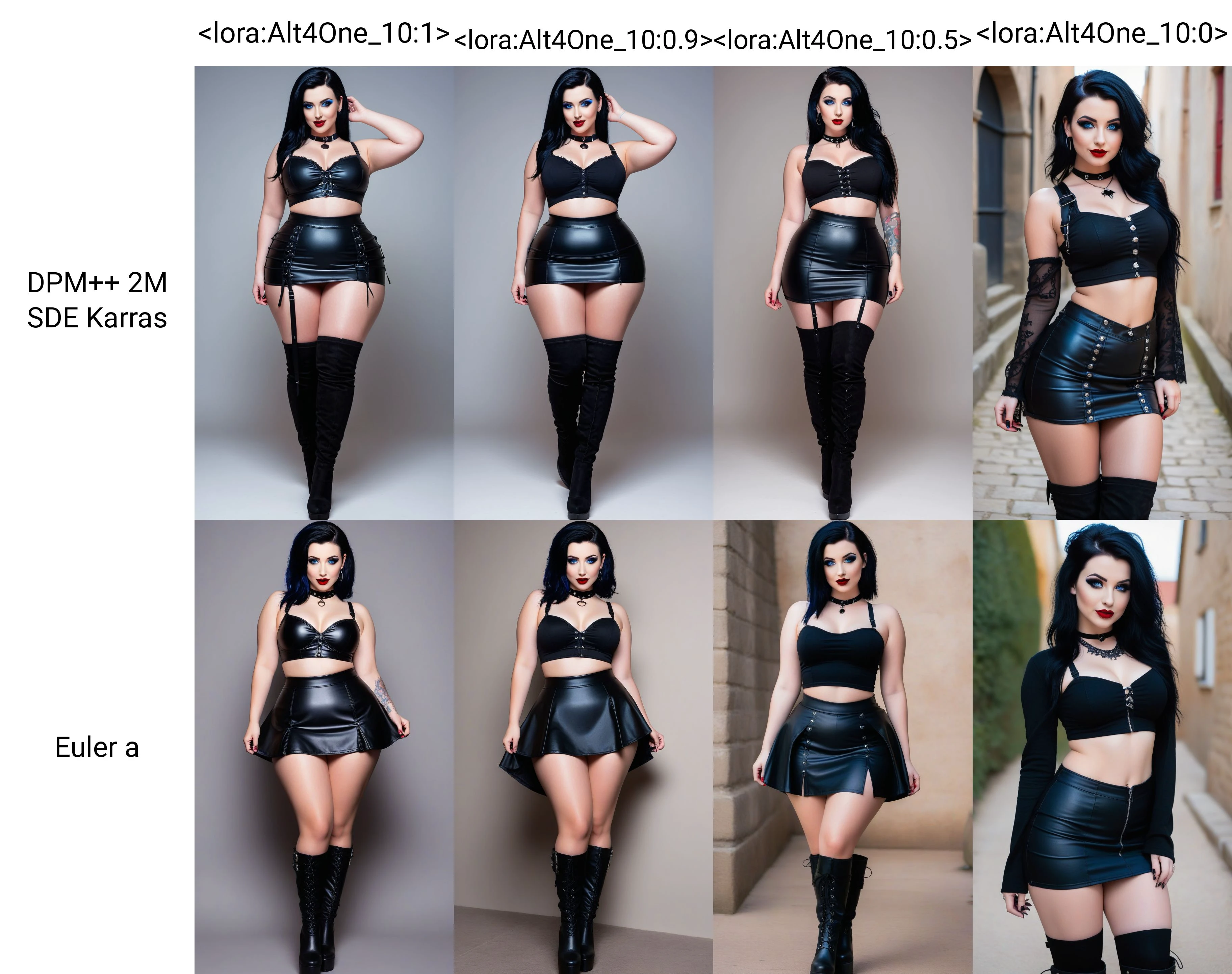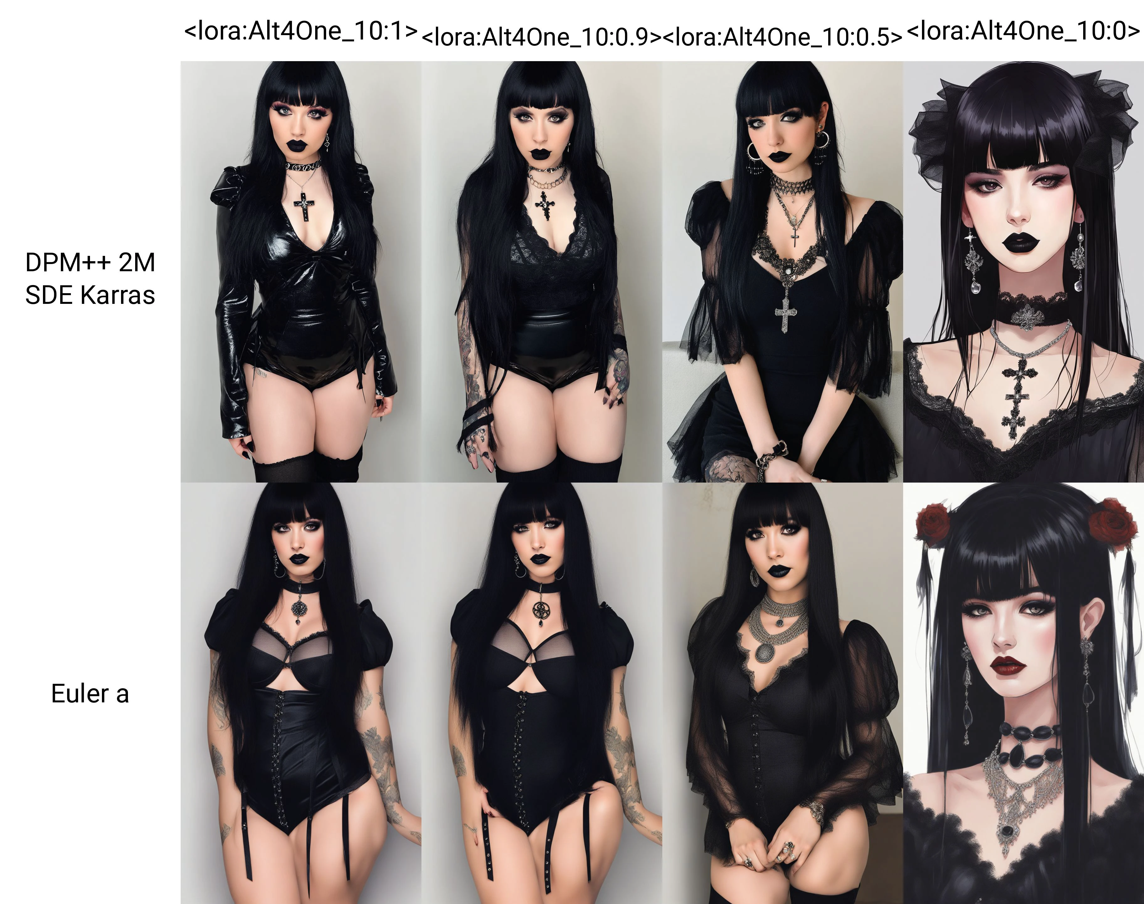 This LoRA's aim is to produce more alternative style, woman, clothing, poses and more. The caption was done using DeepBooru, so it should work well with that style of prompting.
