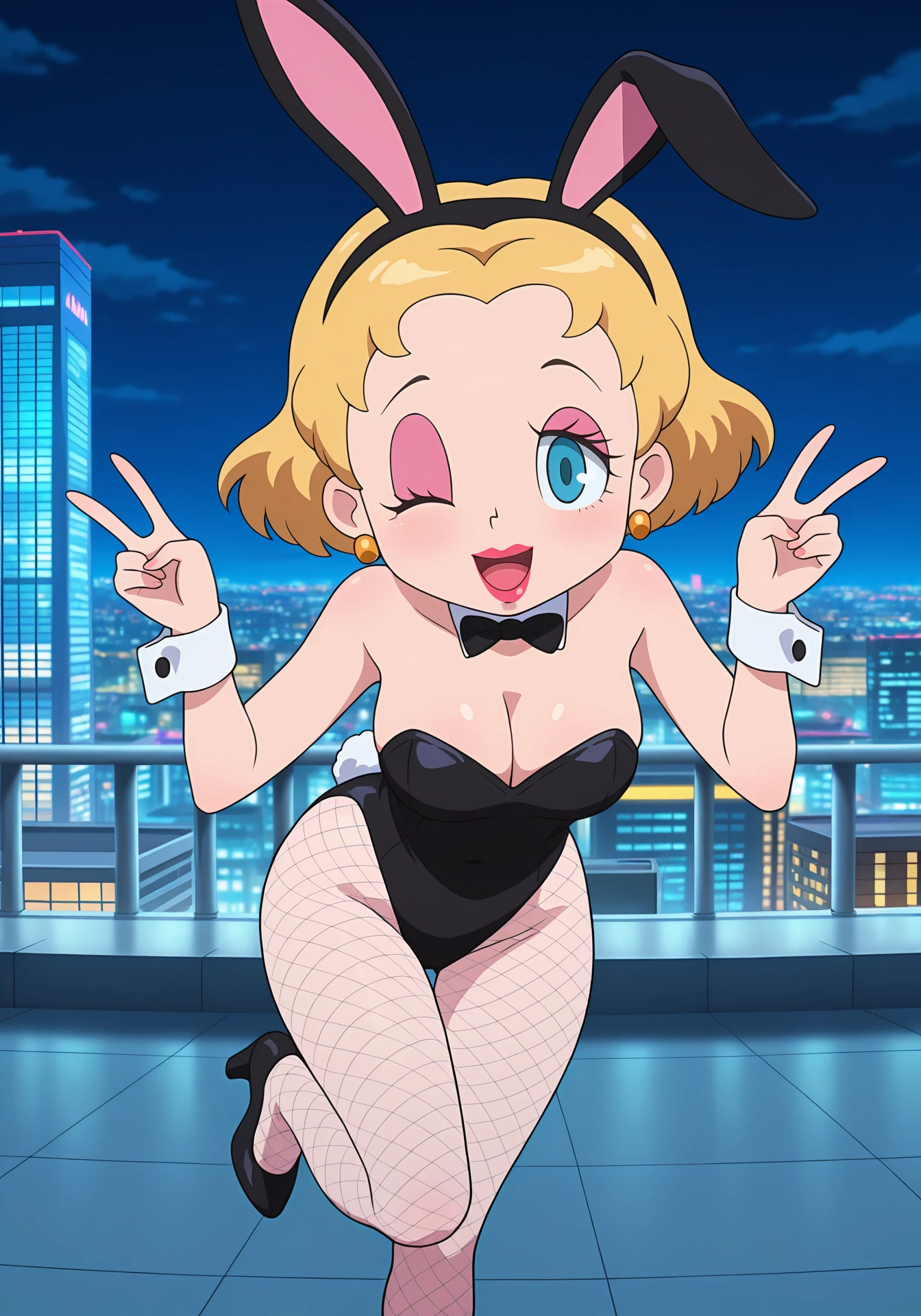 brendayokai, blonde hair, short hair, blue eyes, makeup, lipstick, red lips, eyeshadow, earrings
