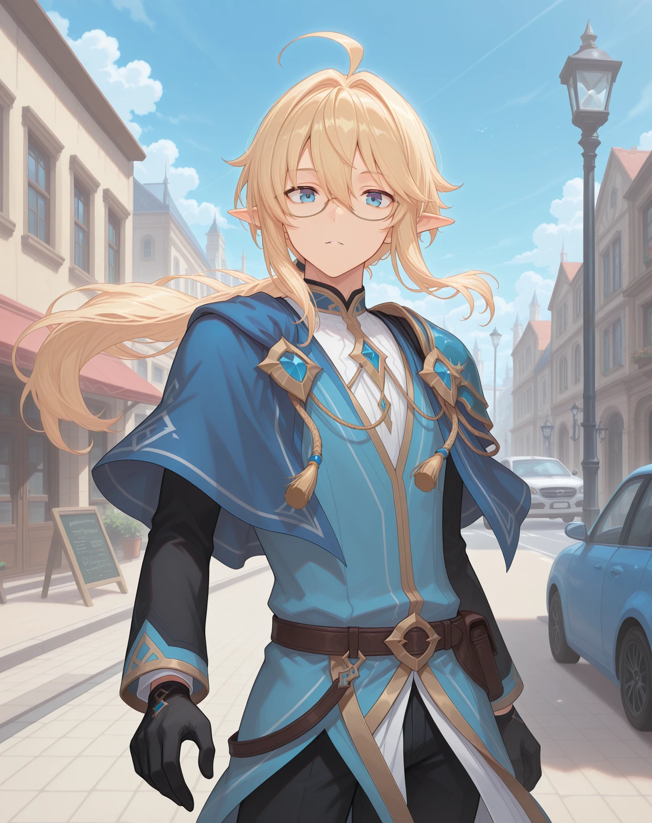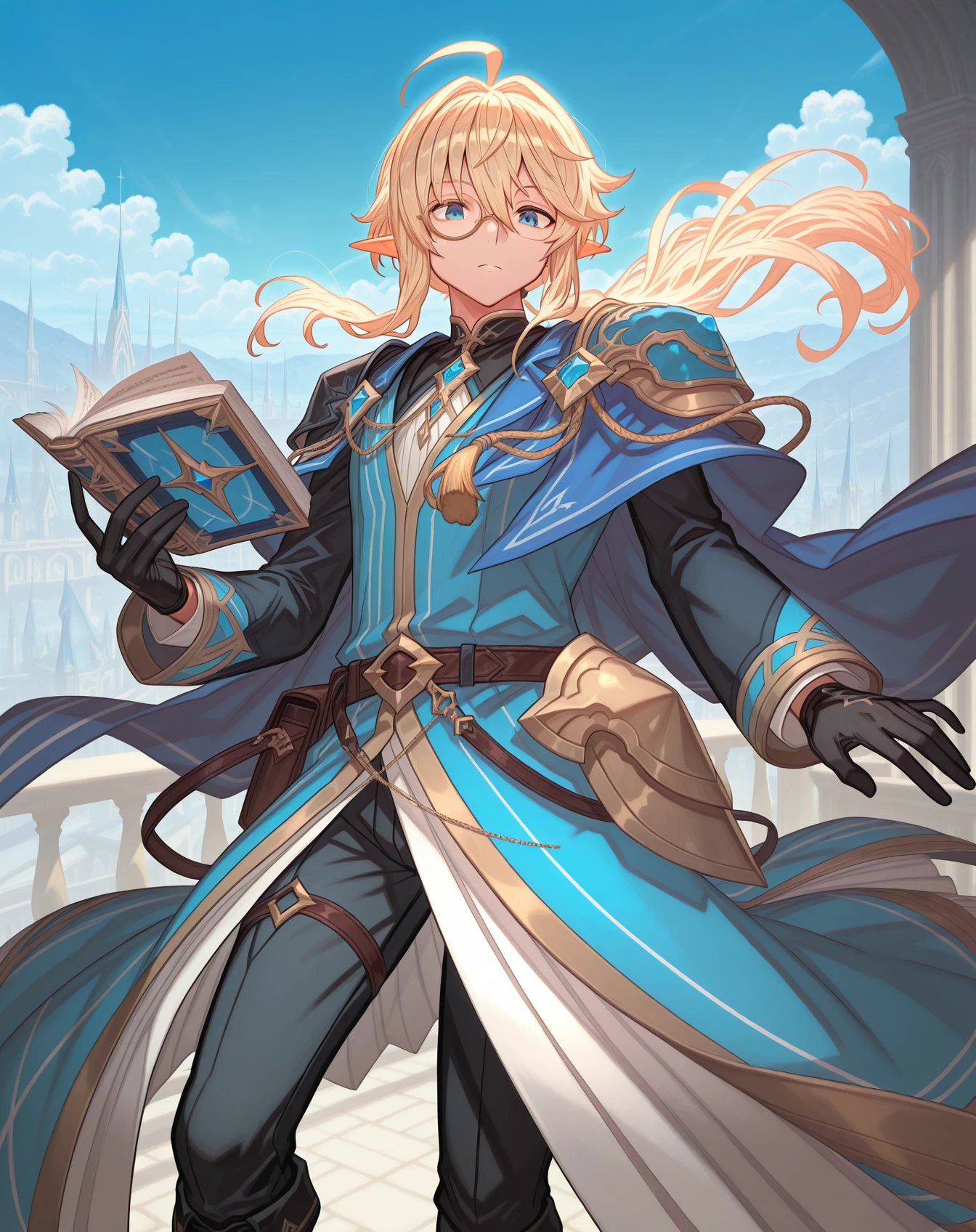 white gloves, white coat, long sleeves, robe, blue coat,white jacket, shirt, sleeve cuffs, layered clothes, shoes, grey footwear, black pants, white footwear,