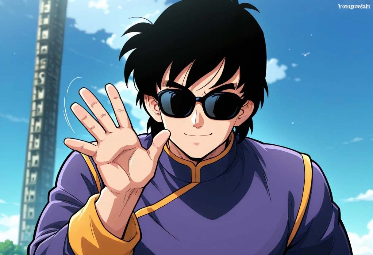 youngroshidb, 1boy, solo, male focus, black hair, sunglasses