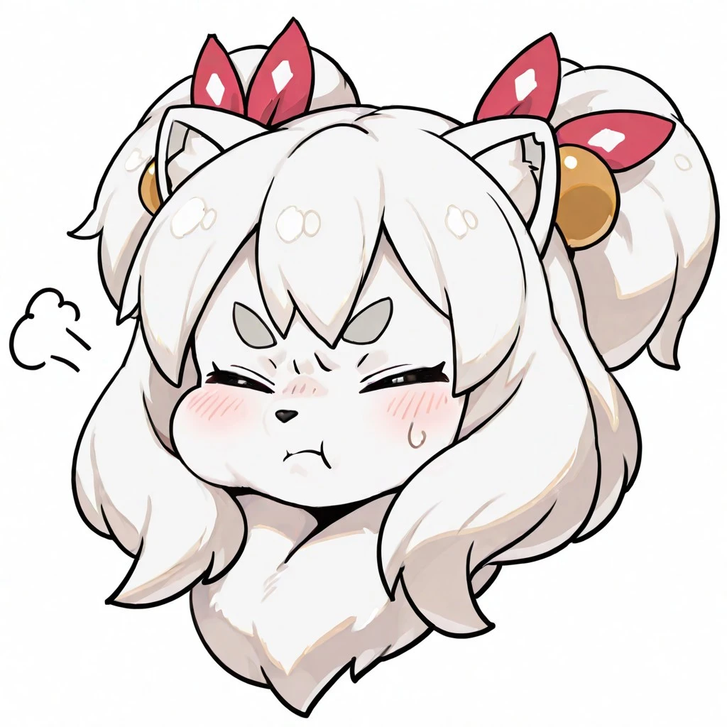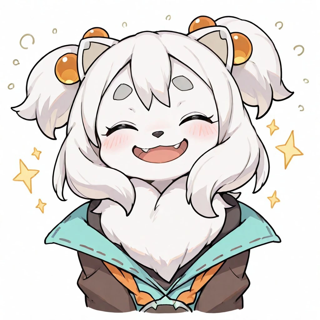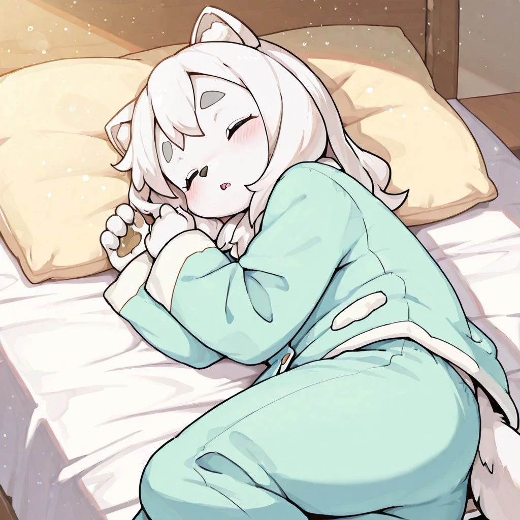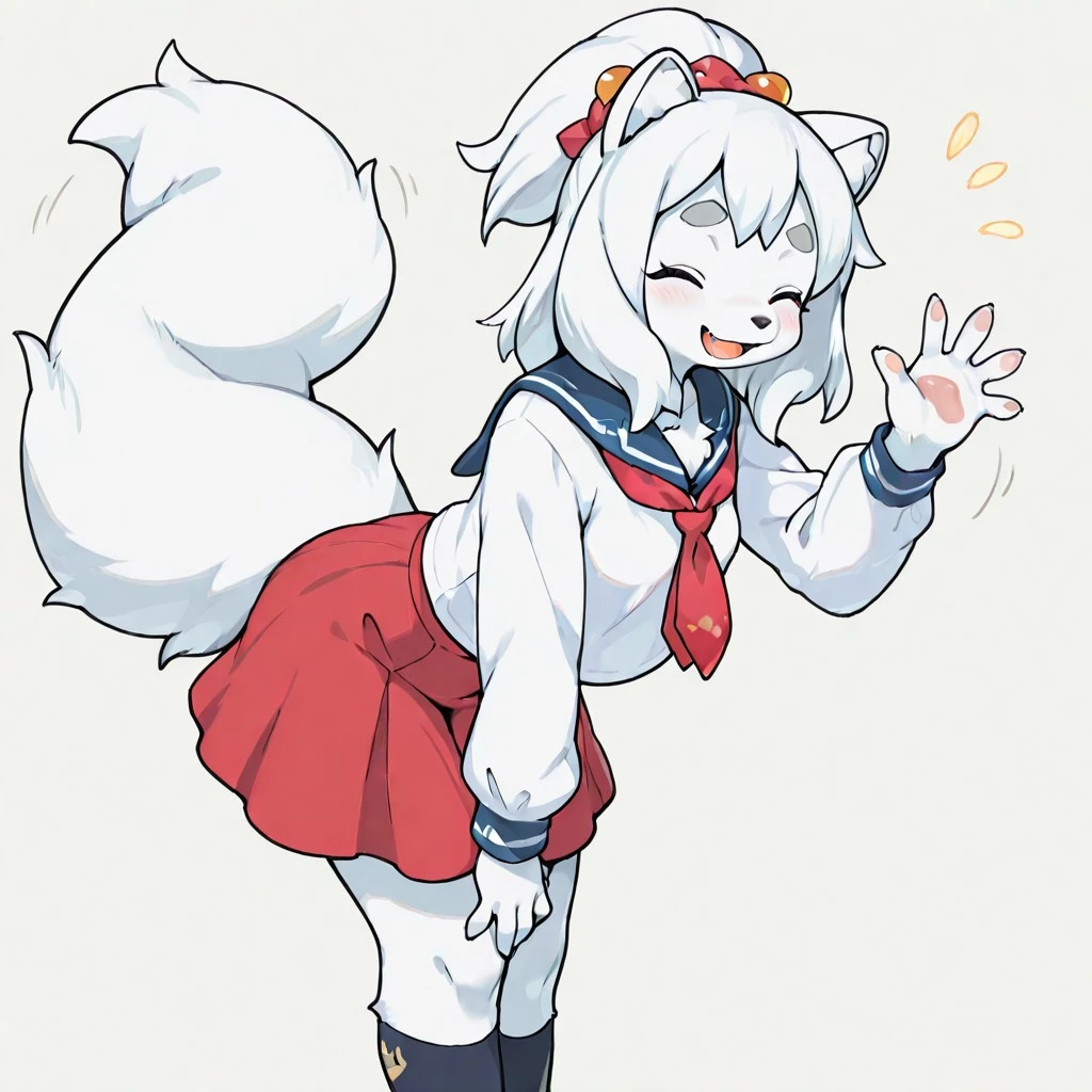 fini_(world_flipper), furry, kemono, anthro, female, closed eyes, white hair, white fur