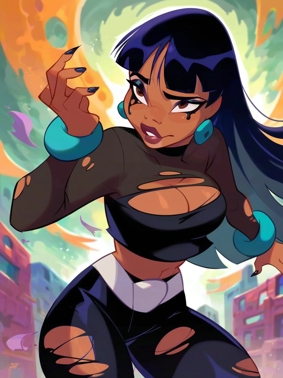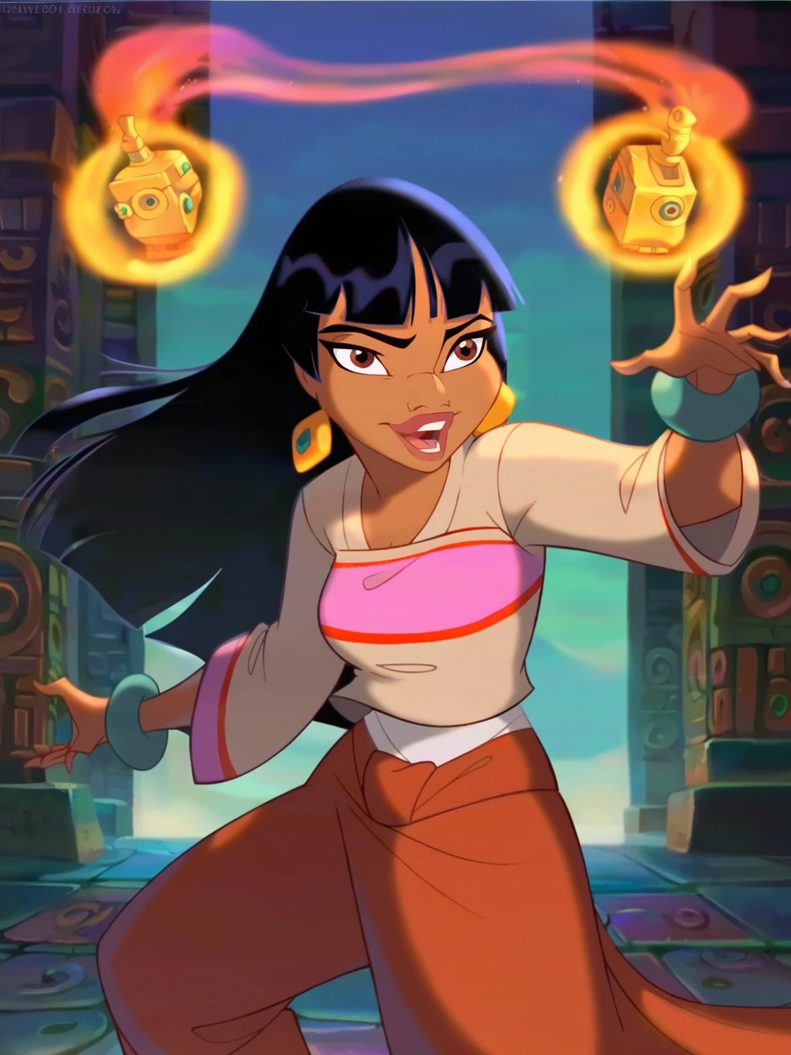 Recommend prompt: "sh_el, 1girl, black hair, brown eyes, tanned skin, jade braslet"