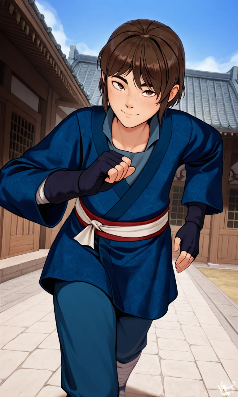veylehan, brown eyes, brown hair, short hair, freckles