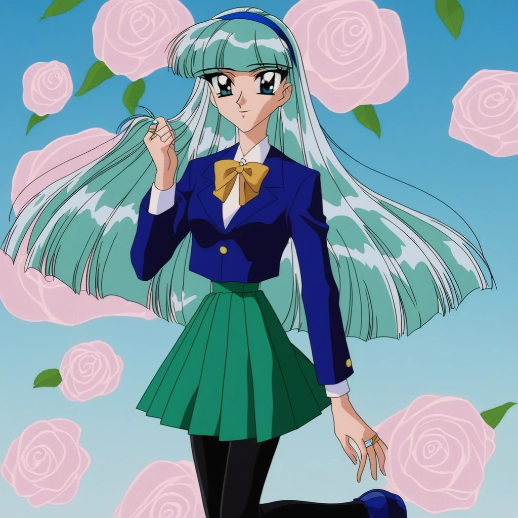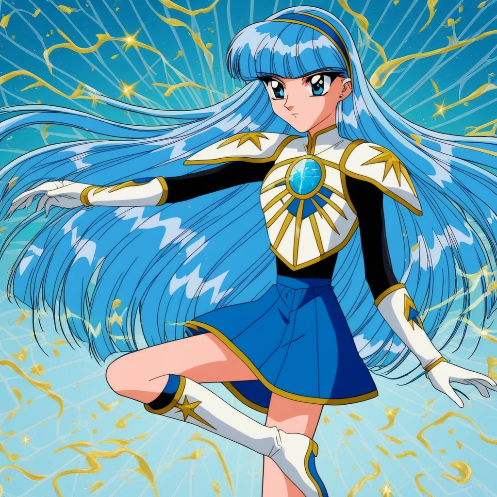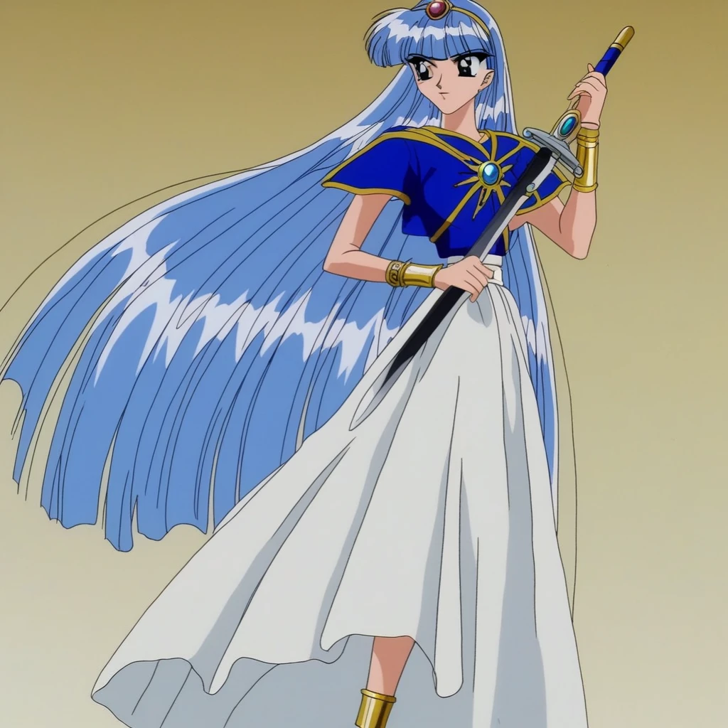Umi Ryuuzaki, known as Marina in Latin America and Marina Santana in Spain, is one of the three protagonists of the Magic Knight Rayearth series (created by CLAMP) and represents the element of Water. Umi is a tall, pretty, and elegant girl with long blue hair, but she is a bit grumpy. In Latin America and Spain, she was renamed Marina and, together with her friends Hikaru (Lucy) and Fuu (Anaís), as well as the Mashin (Genie) Ceres, she will dedicate herself to defending the world of Zephyr.