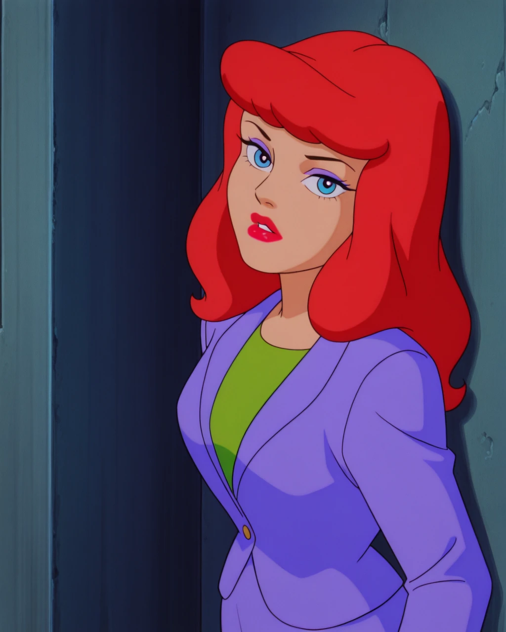 DaphneBlake, red lips, red hair, blue eyes, skirt, jacket