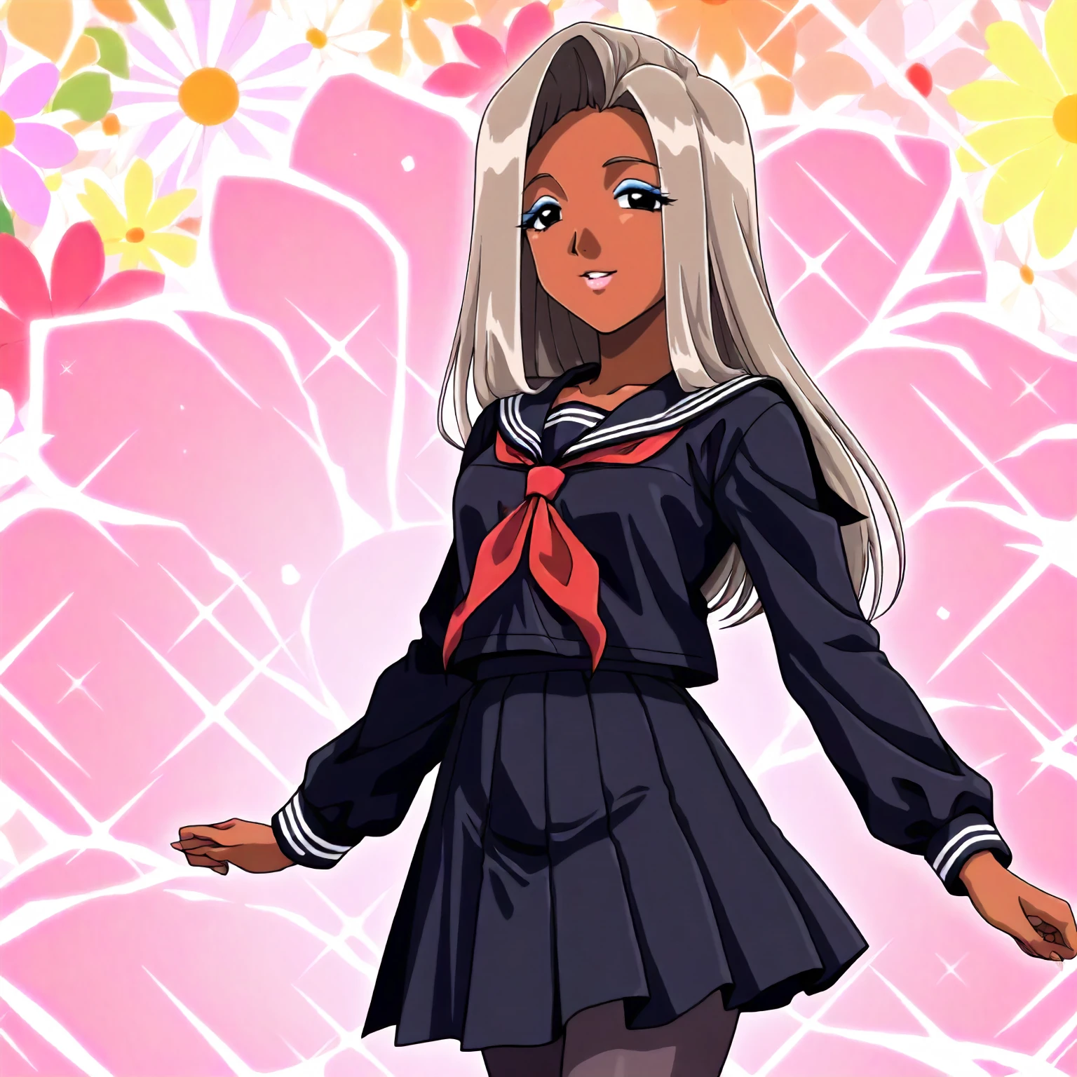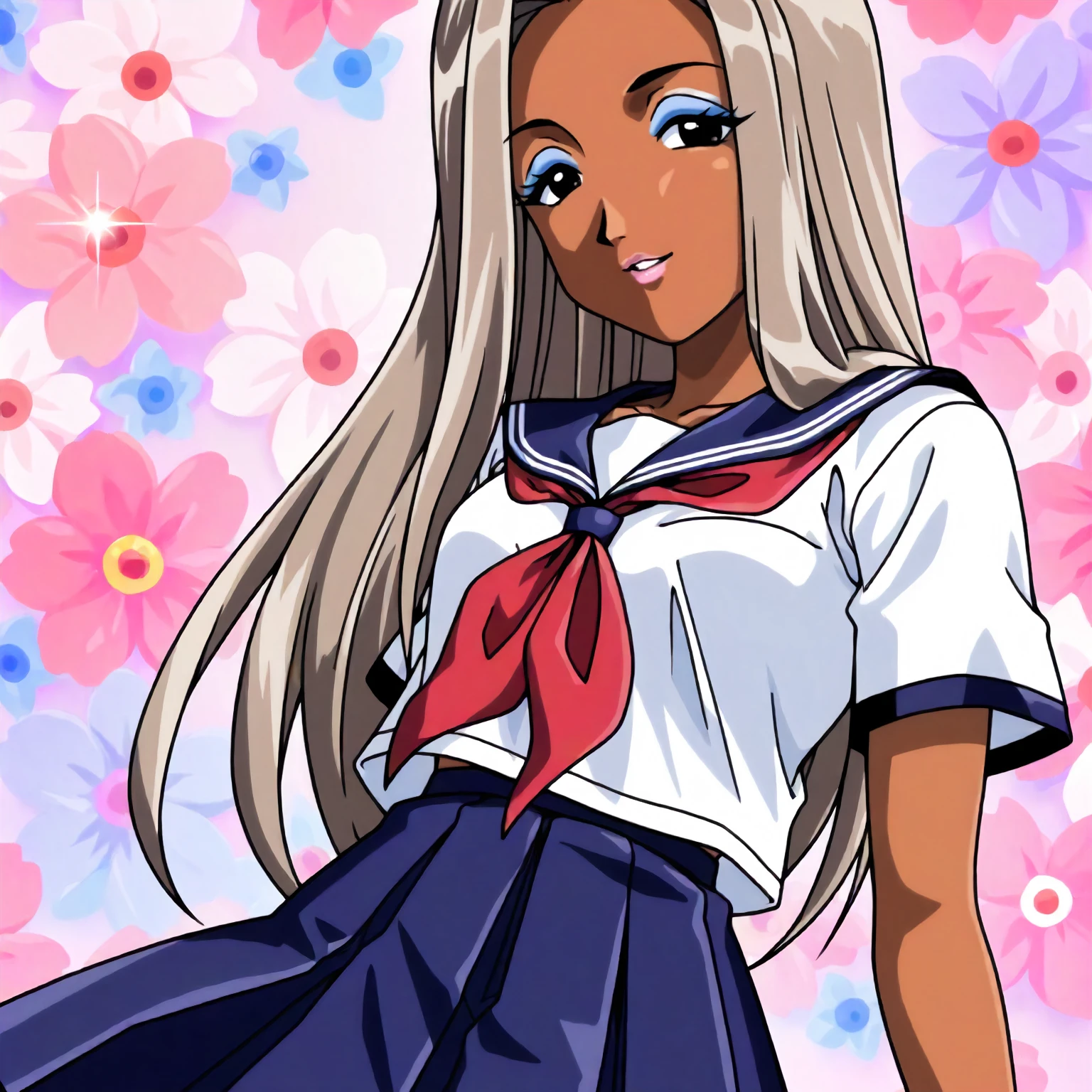 anime coloring, inaba_maki\(hexa\),1girl,light brown hair,long hair,eyeshadow,black eyes,pink lips,dark skin,