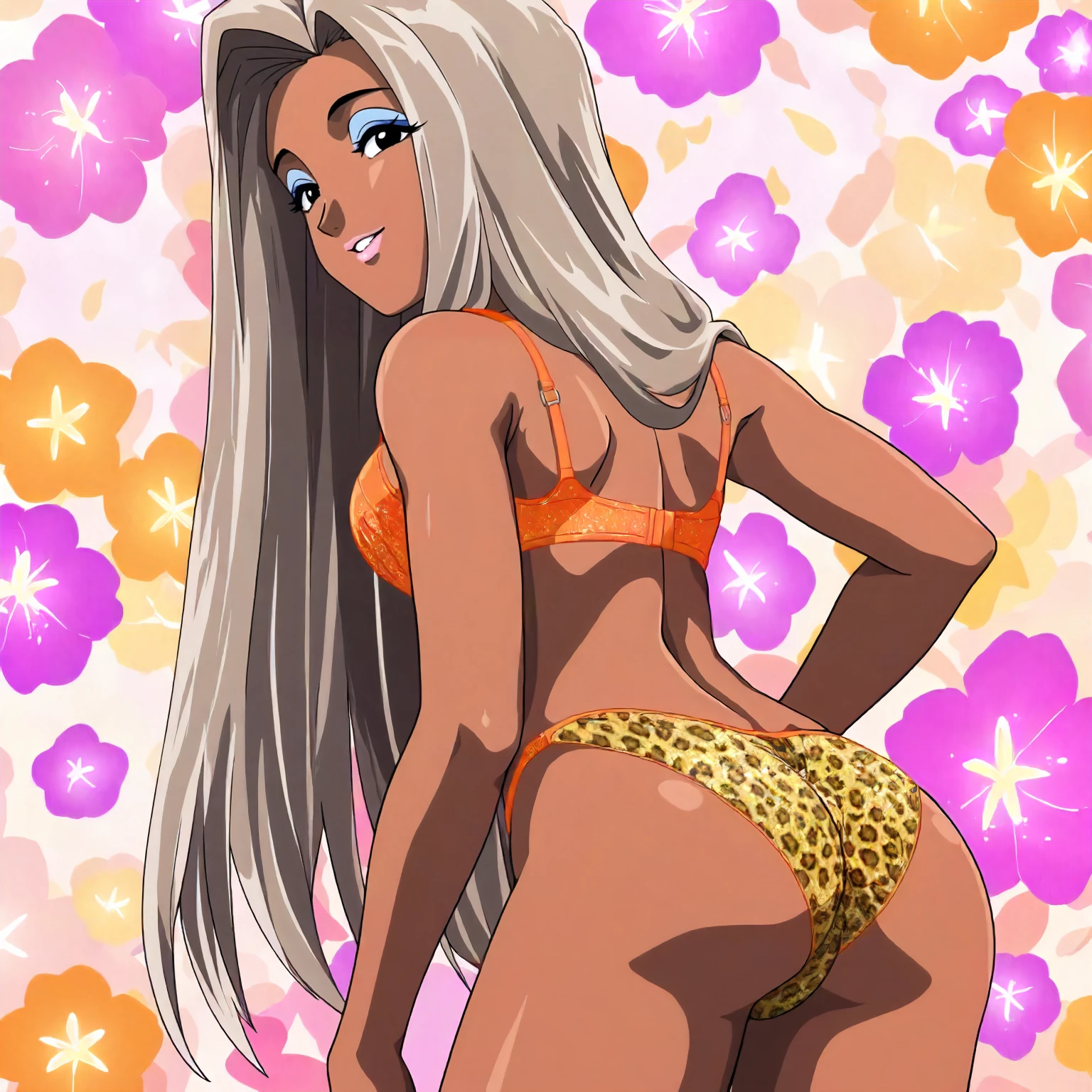 patternless bra,(orange_bra:1.1), yellow panties,leopard_print_panties,high leg panties,