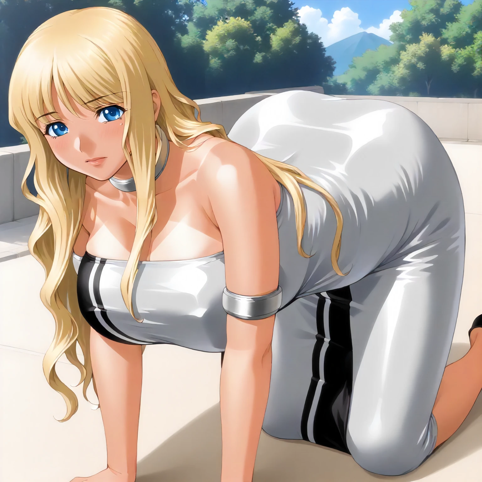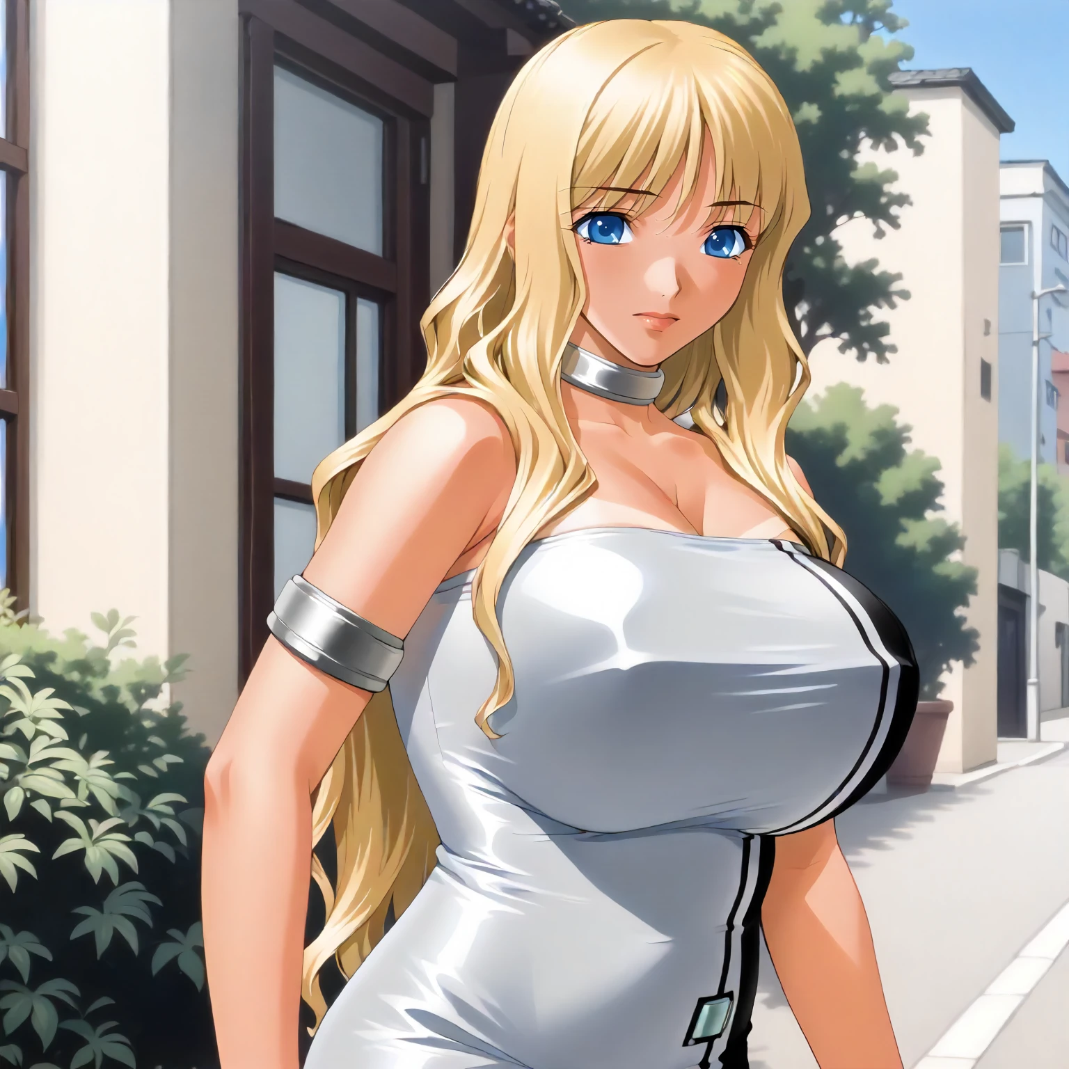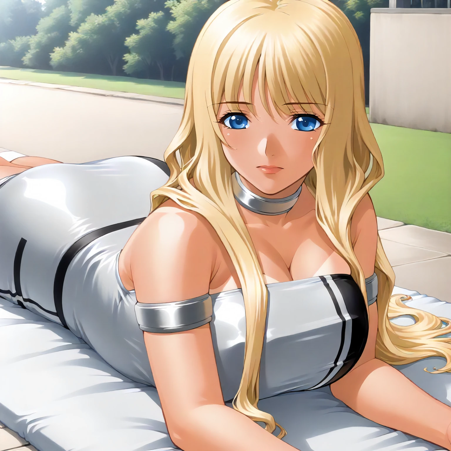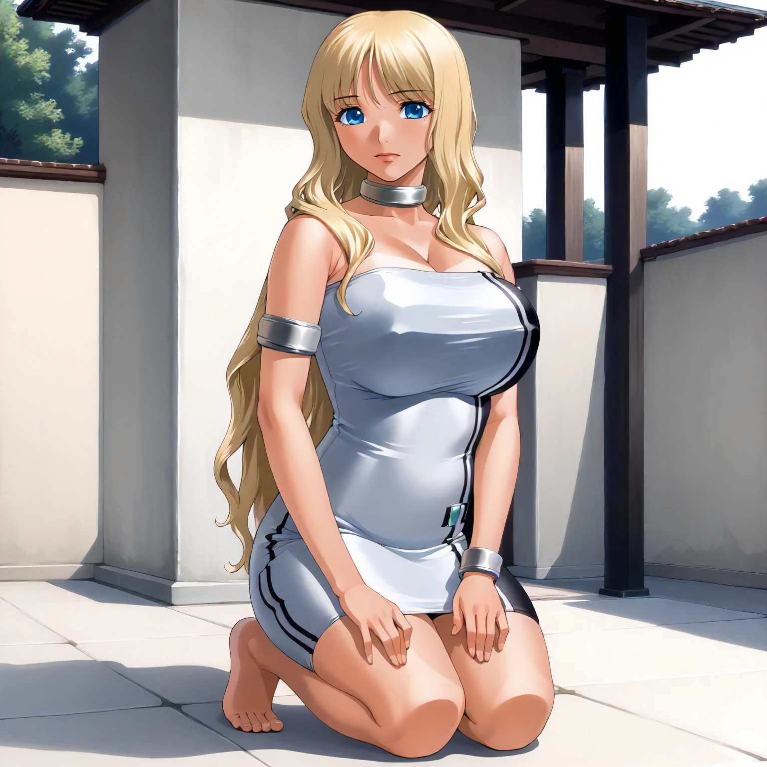 TokikoHanamaru,1girl,mature female,blonde hair,long hair,bangs,blue eyes,tan,