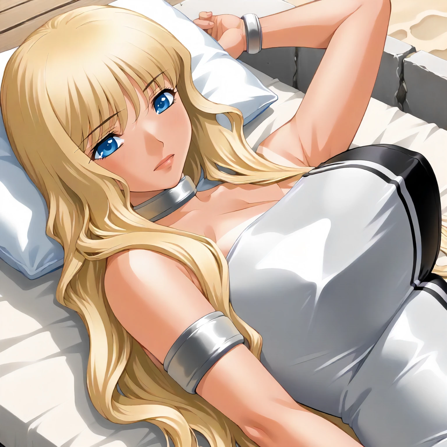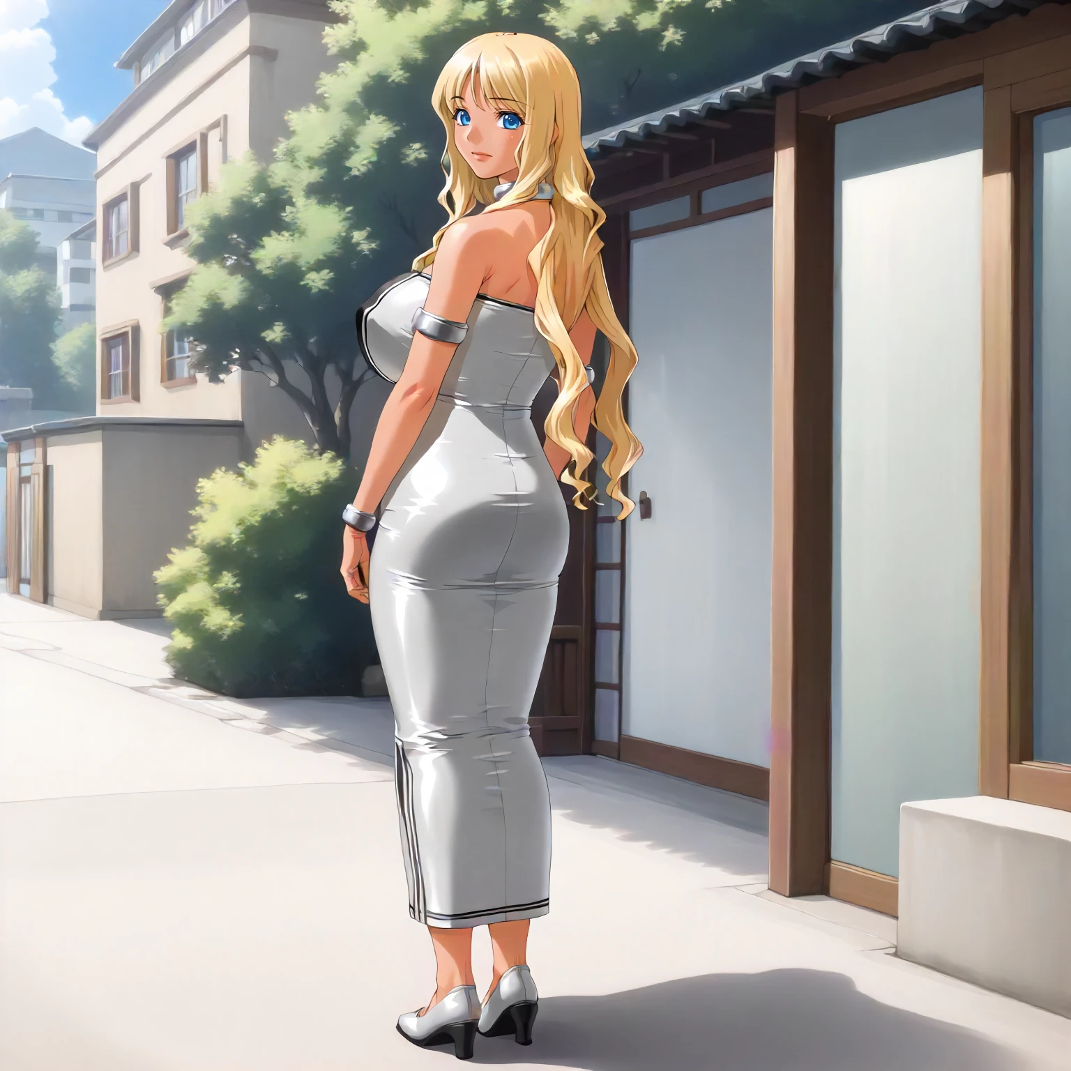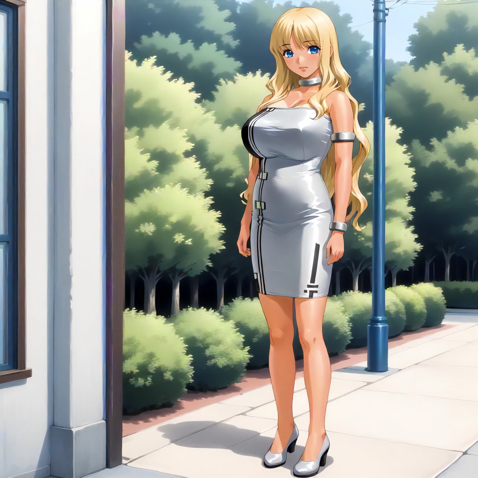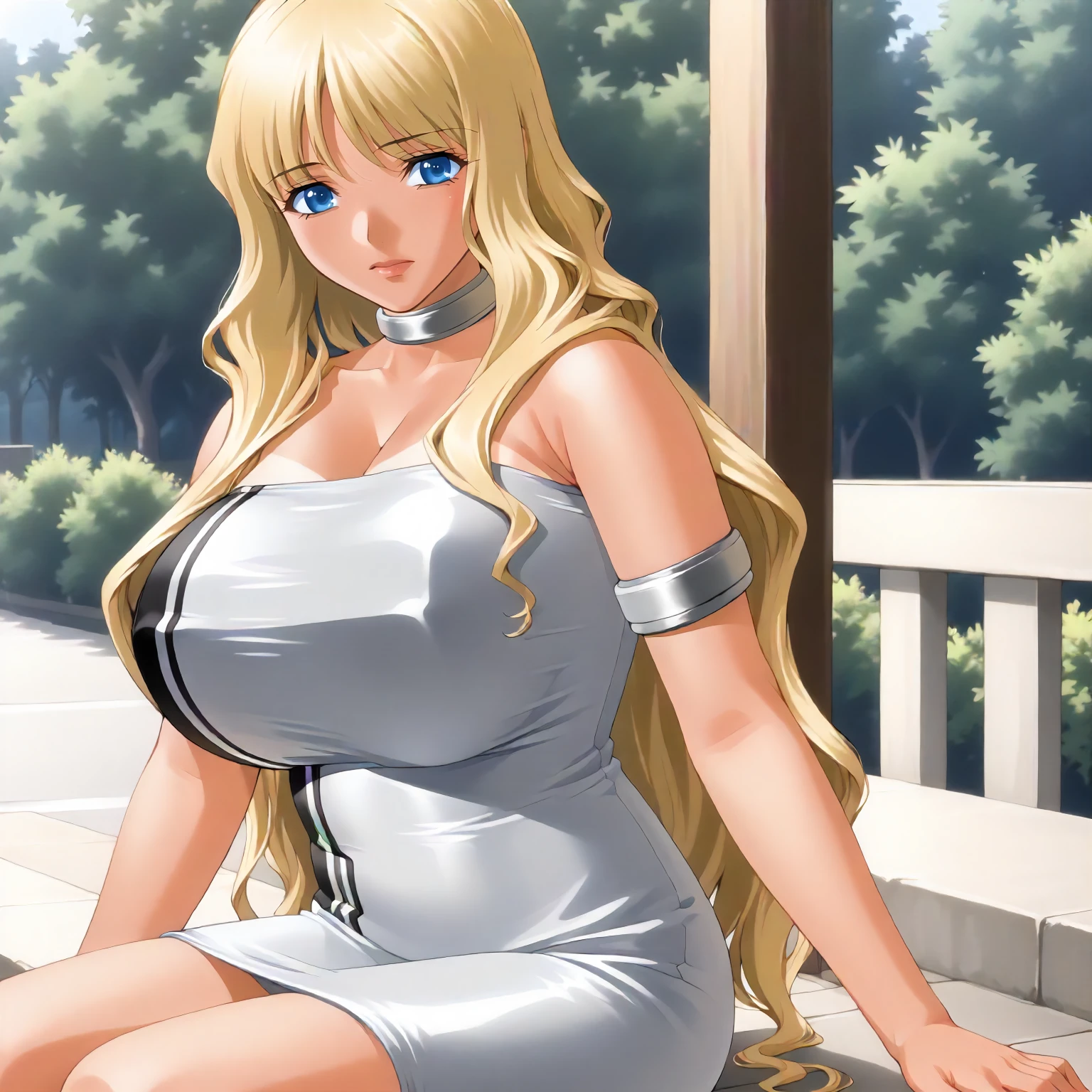 TokikoHanamaru,1girl,mature female,blonde hair,long hair,bangs,blue eyes,tan,