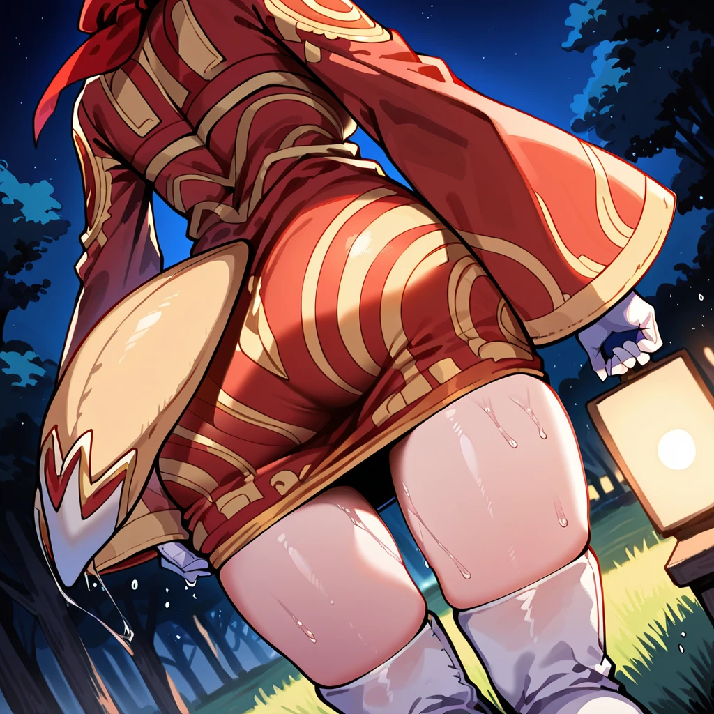 Sample Tags: 1girl, mask, stitches, twintails, scarf, short_dress, long_sleeves, wide_sleeves, white_gloves, tail, shoe_soles, thighhighs