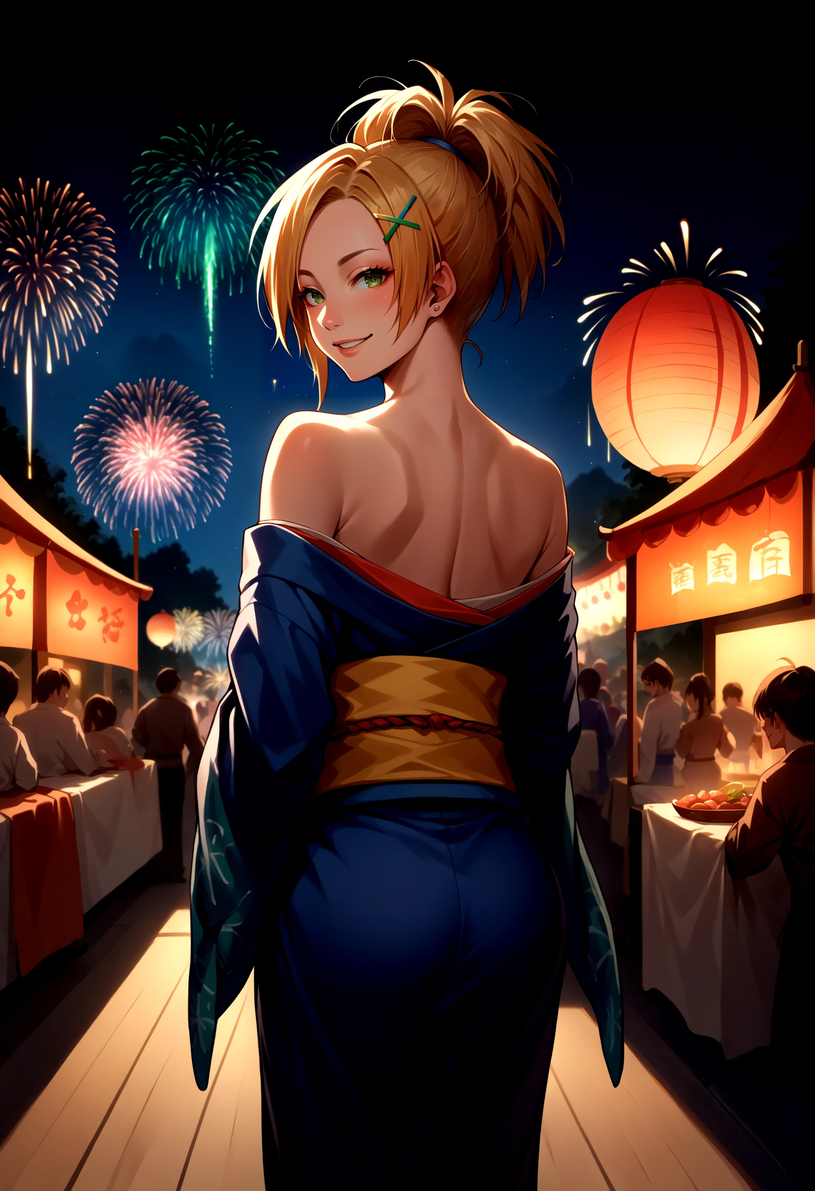 RikkuX, x hair ornament, goggles around neck, fingerless gloves, midriff, navel, belt, bootsX2Outfit: