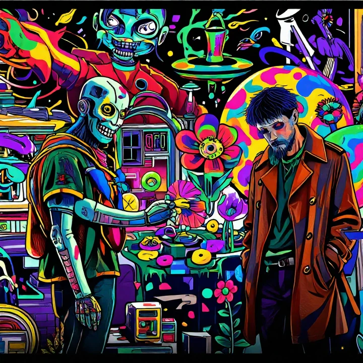 A LoRA trained with Z Image Turbo at 4750 steps on psychedelic comic-art illustrations.