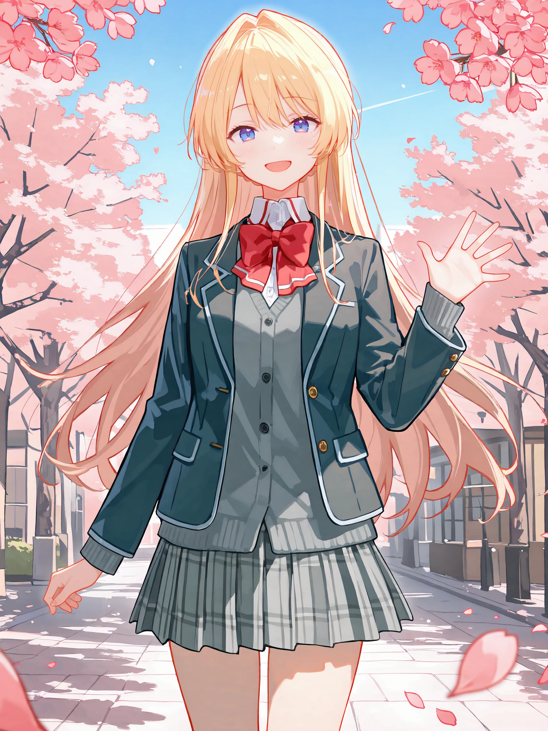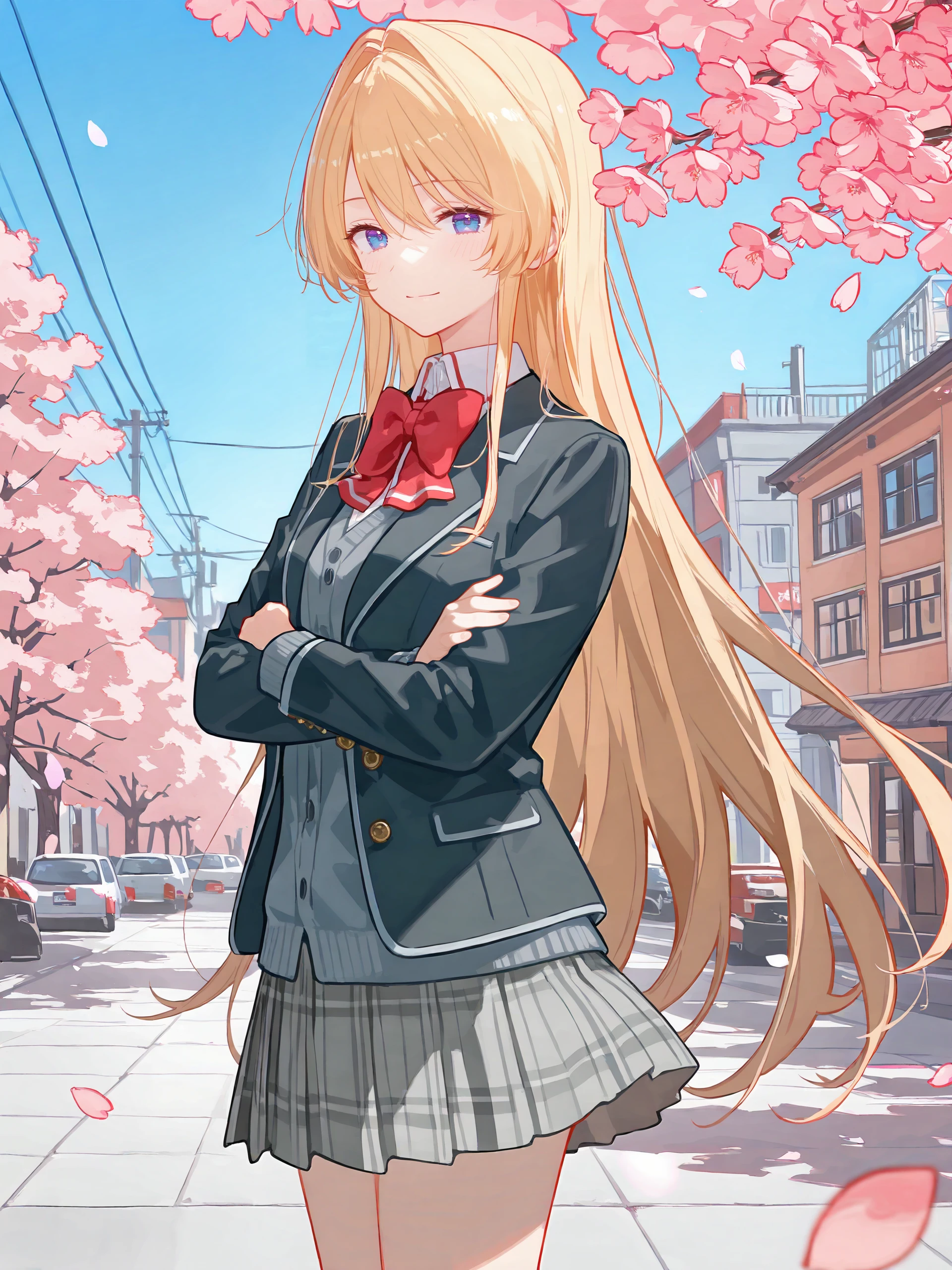 Additional prompts for the default JK costume: school uniform, pleated skirt, plaid skirt, white collared shirt, blazer, red bowtie, loafers, black pantyhose