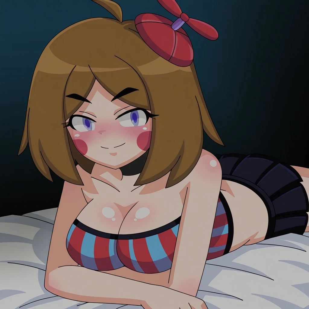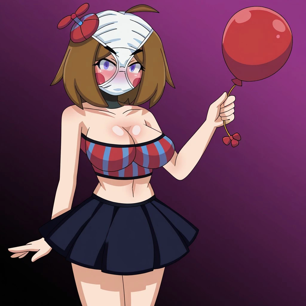 red and blue striped, propeller cap, striped crop top, dark blue skirt