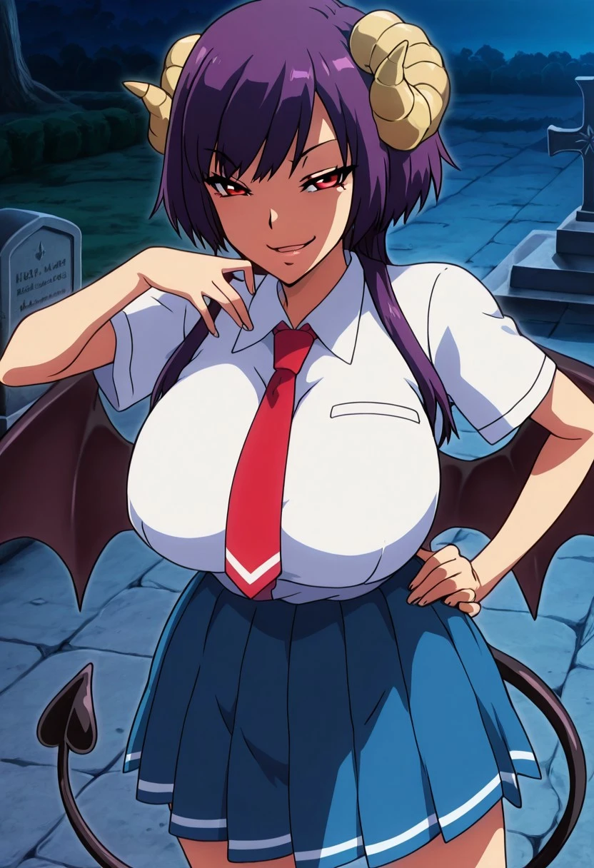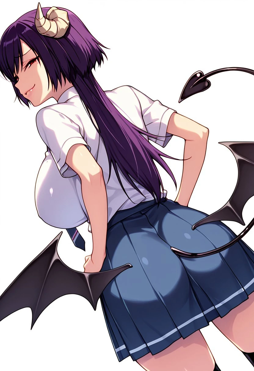 school uniform, white shirt, short sleeves, tie, blue skirt, pleated skirt,