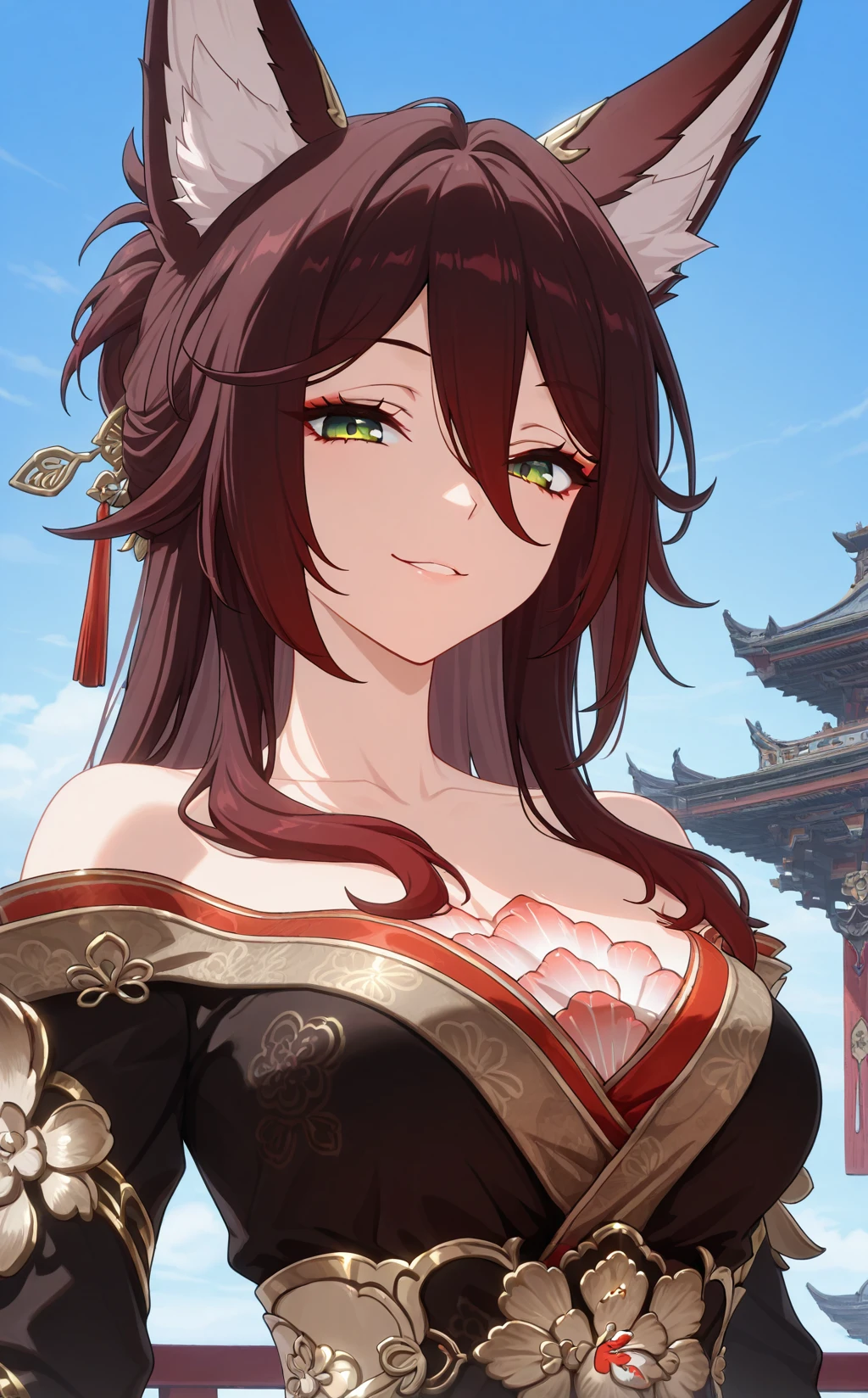 green eyes, fox ears