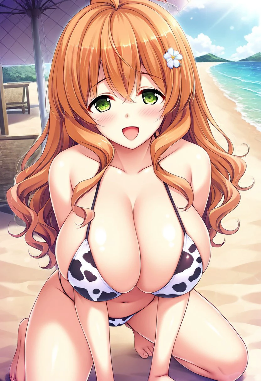 Outfit 3: cow print bikini, halter neck bikini, frilled edges,