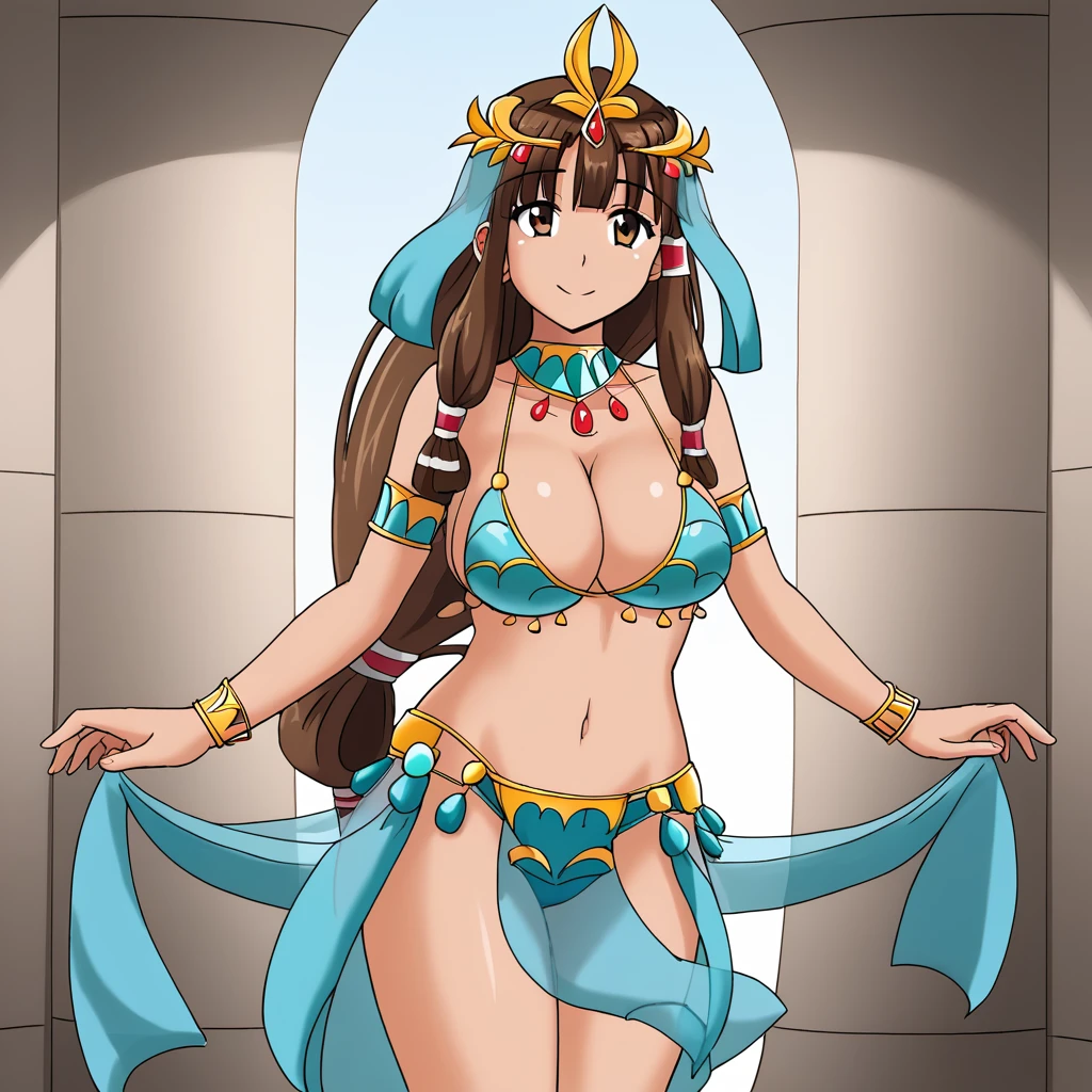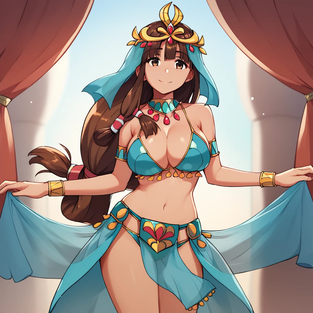 anklet, jewelry, cleavage, dancer, blue bikini, swimsuit, bracelet, harem outfit, headdress, armlet, veil, circlet