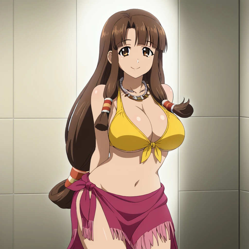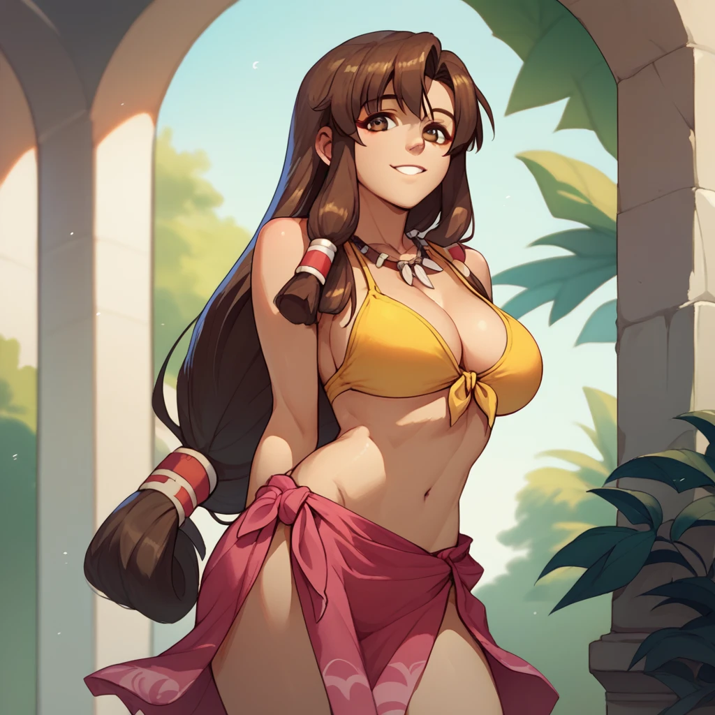 yellow bikini, necklace, front-tie top, sarong