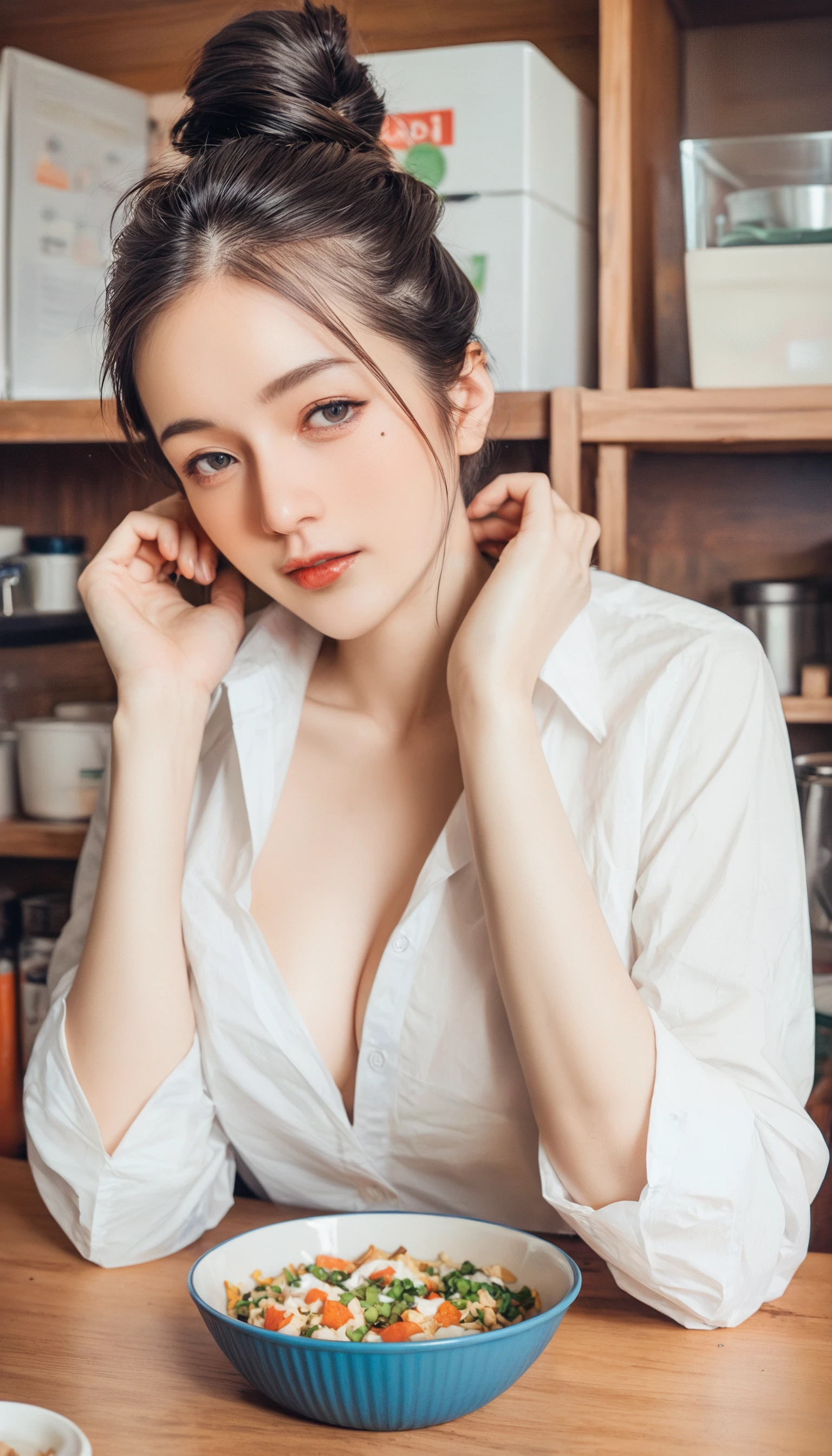 e.g. Tongue Out, ???, holding breasts, pull down panties, licking a banana together with another girl, finger in mouth
