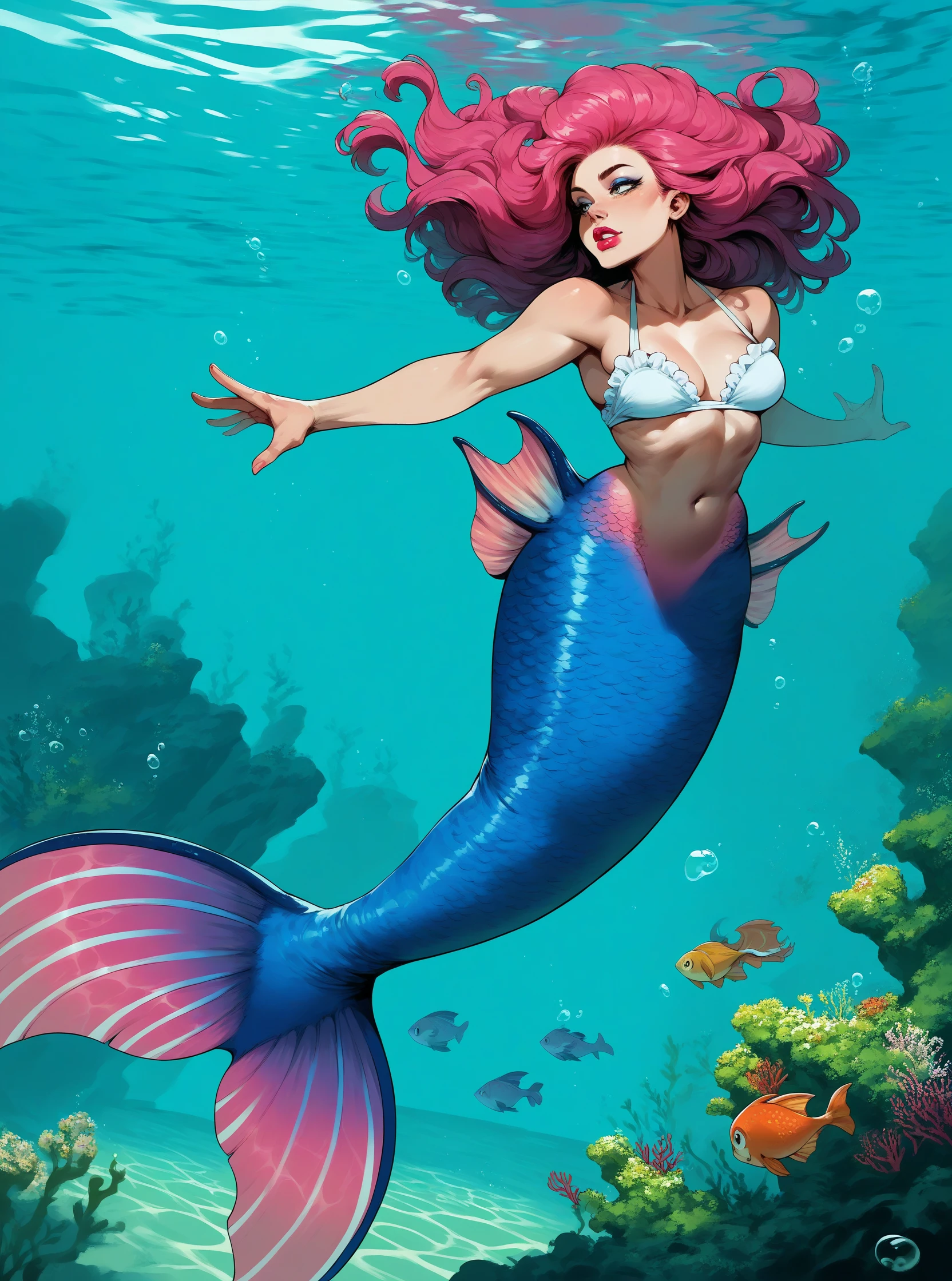 Others: starfish, rock, underwater, swimming, fish, mermaid tail