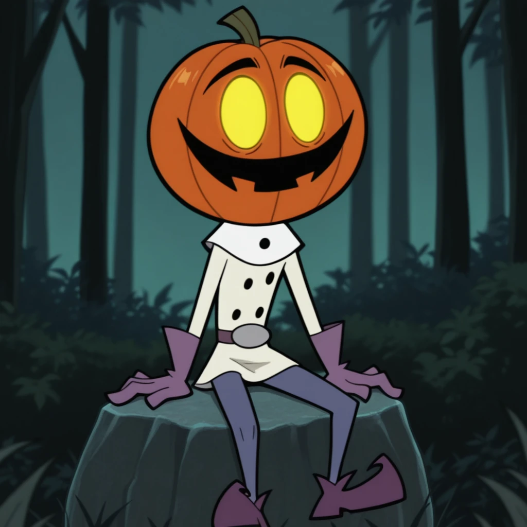 1boy, male, humanoid, solo, pumpkin head, yellow eyes, glowing eyes
