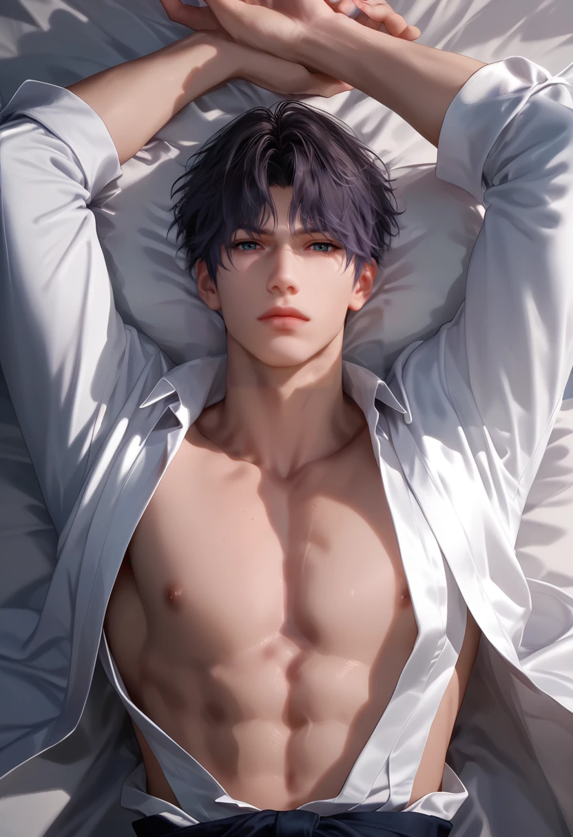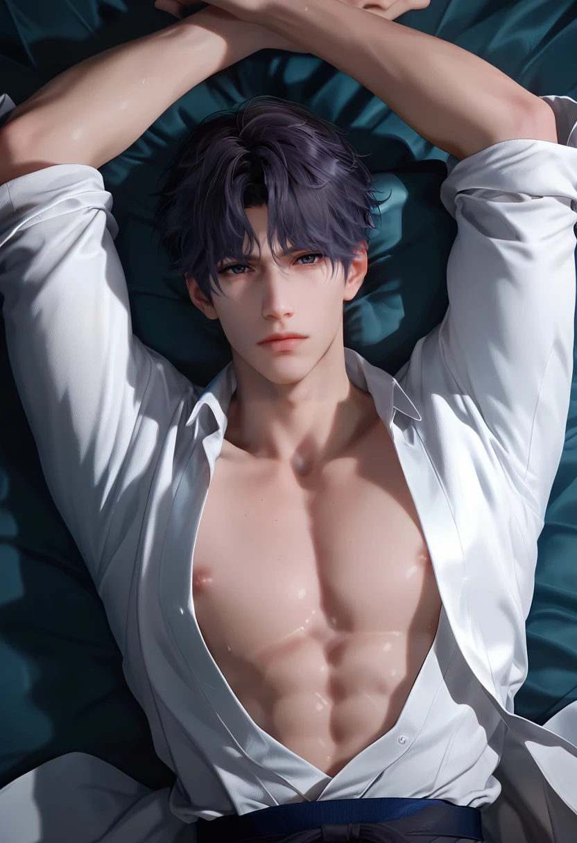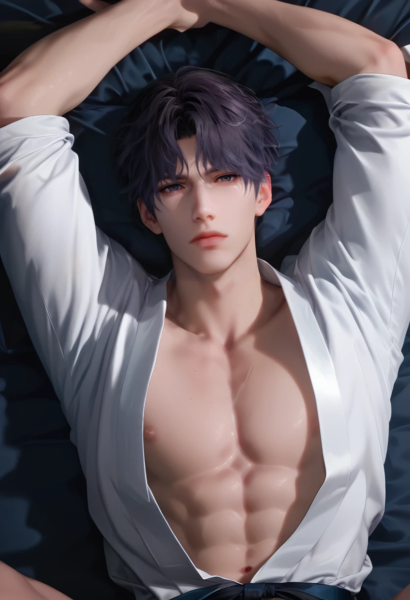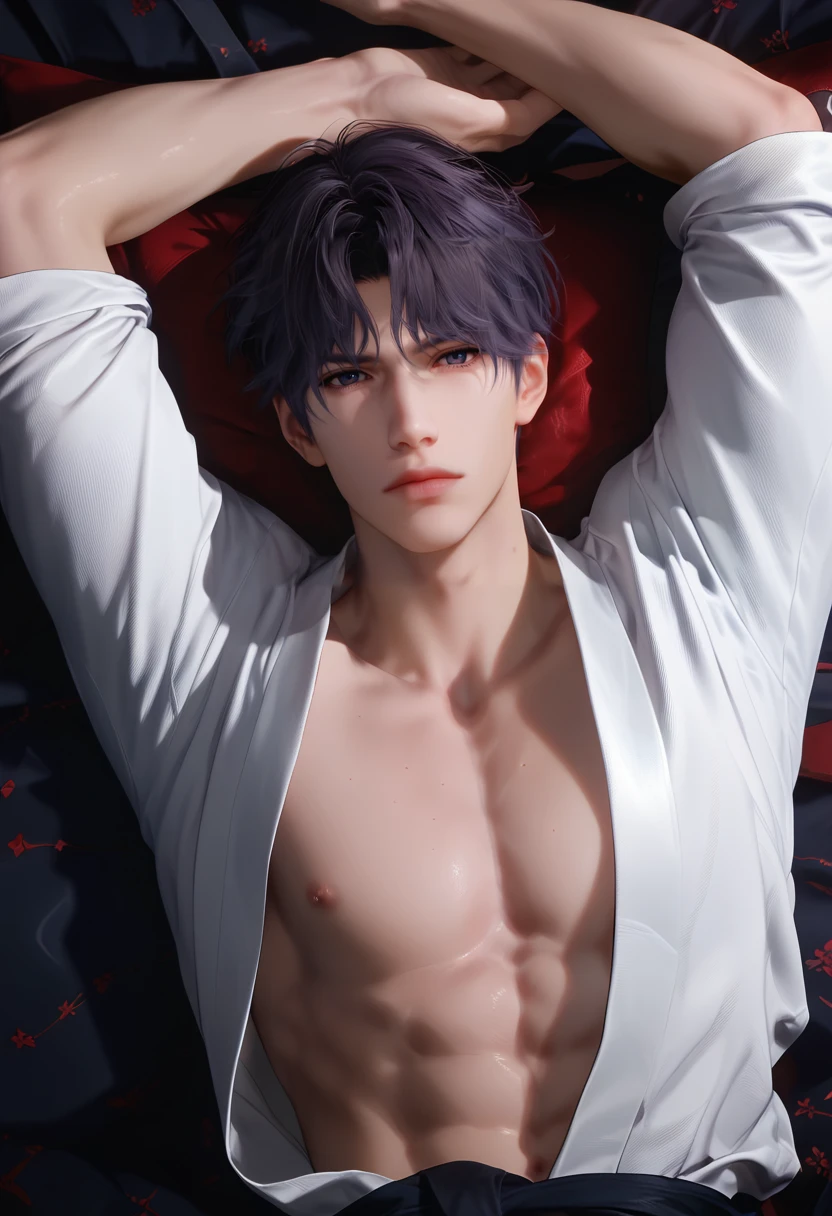 rafayel,bangs,lips smile seems to be a default setting for him, so you might want to use smile,smiling lips as negative prompt to avoid that.