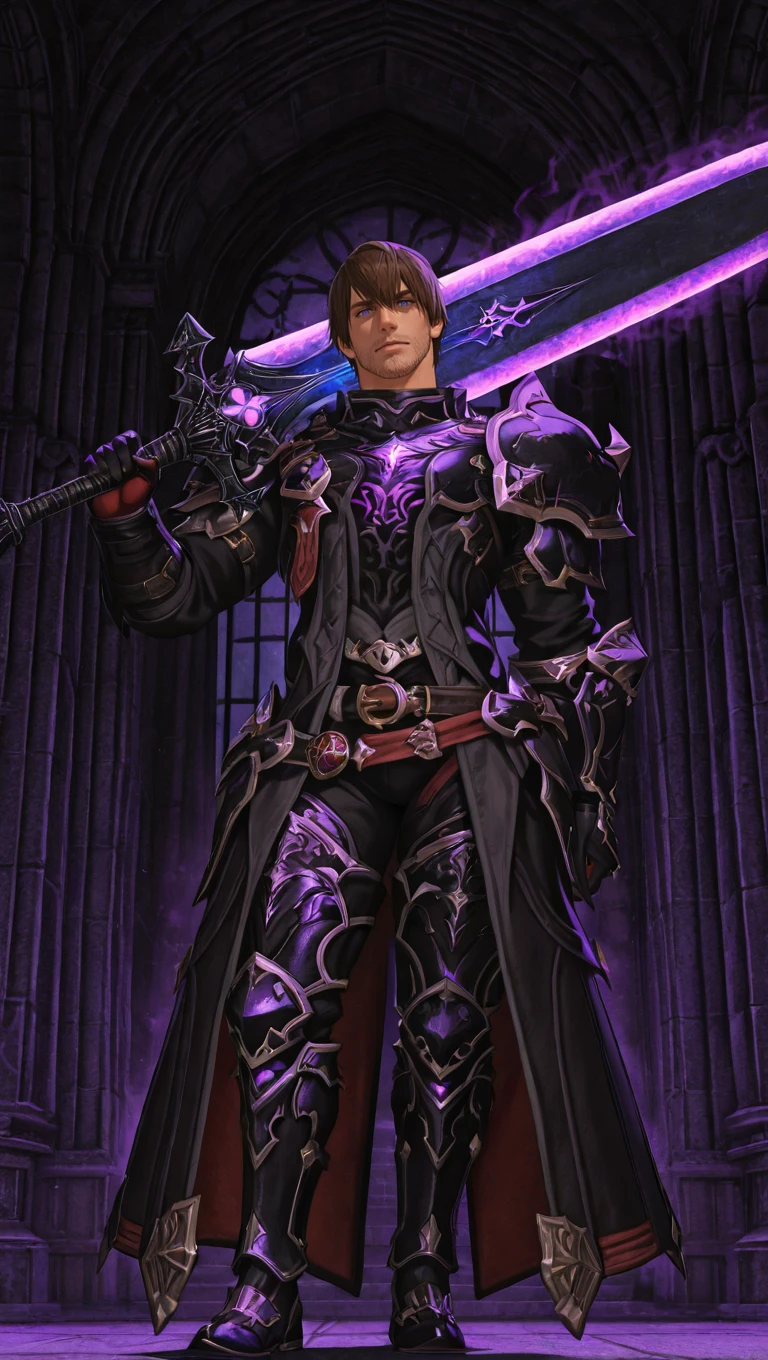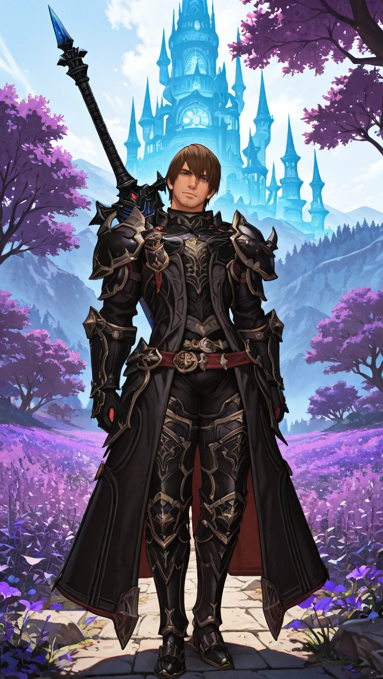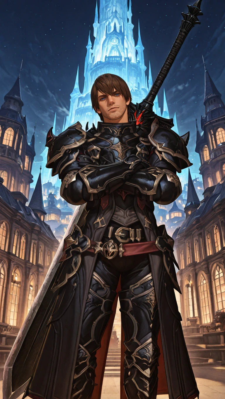 ffxivmeteor, 1boy, adult male, hyur, brown hair, short hair, blue eyes, facial hair, stubble