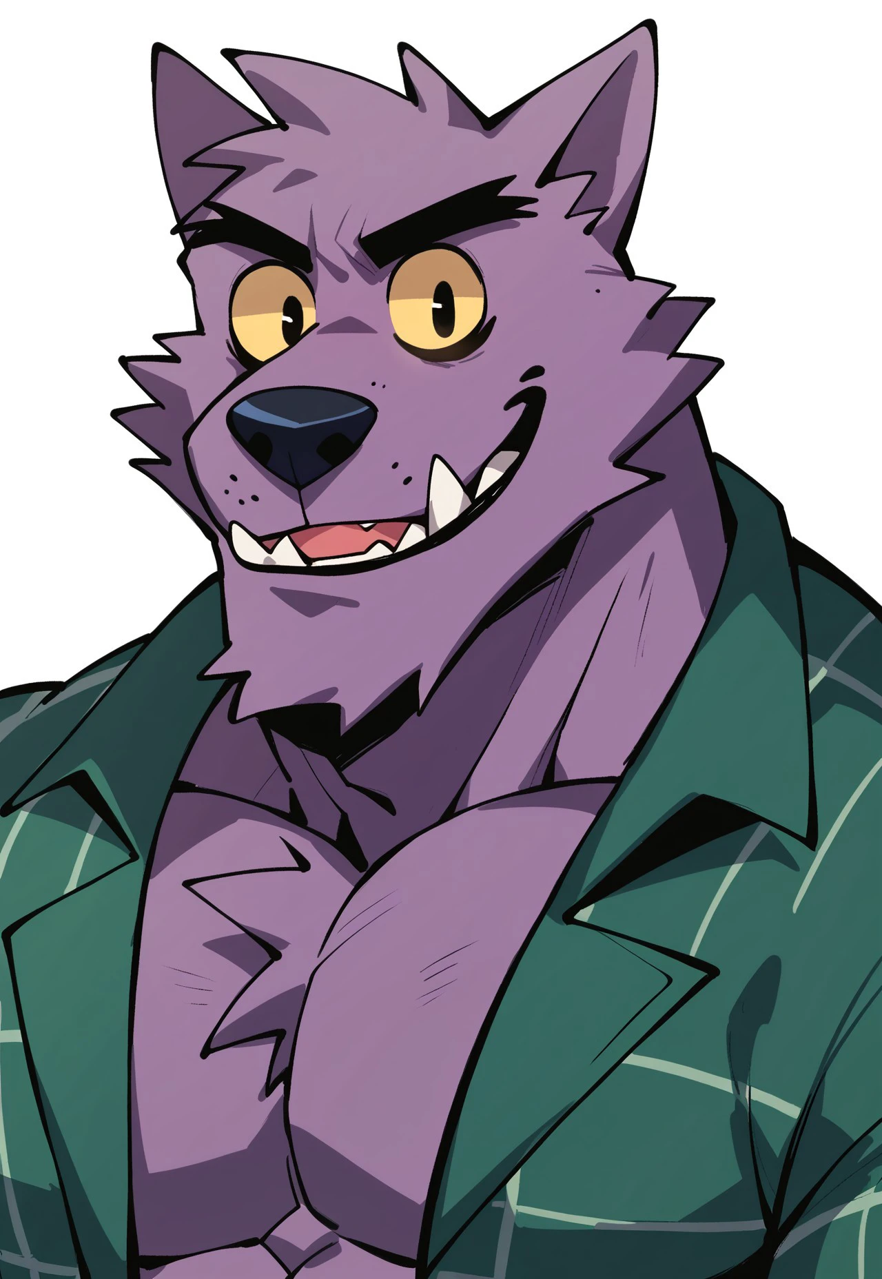 Bernand, Purple Fur, Yellow Sclera, Werewolf, Green Striped Shirt, Shorts
