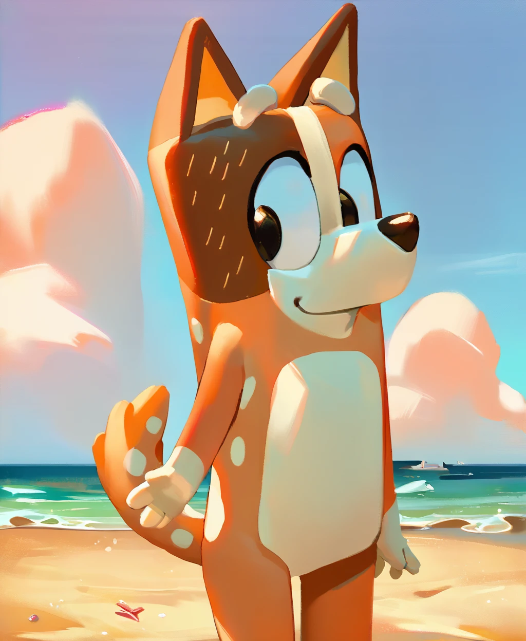 I wanted to create a Bluey style with more flexibility. This was trained on 250 images ranging from on-model character sheets, 3D renders, backgrounds and rendered art styles to make the LoRA more compatible with more creative prompts, while maintaining character likeness.