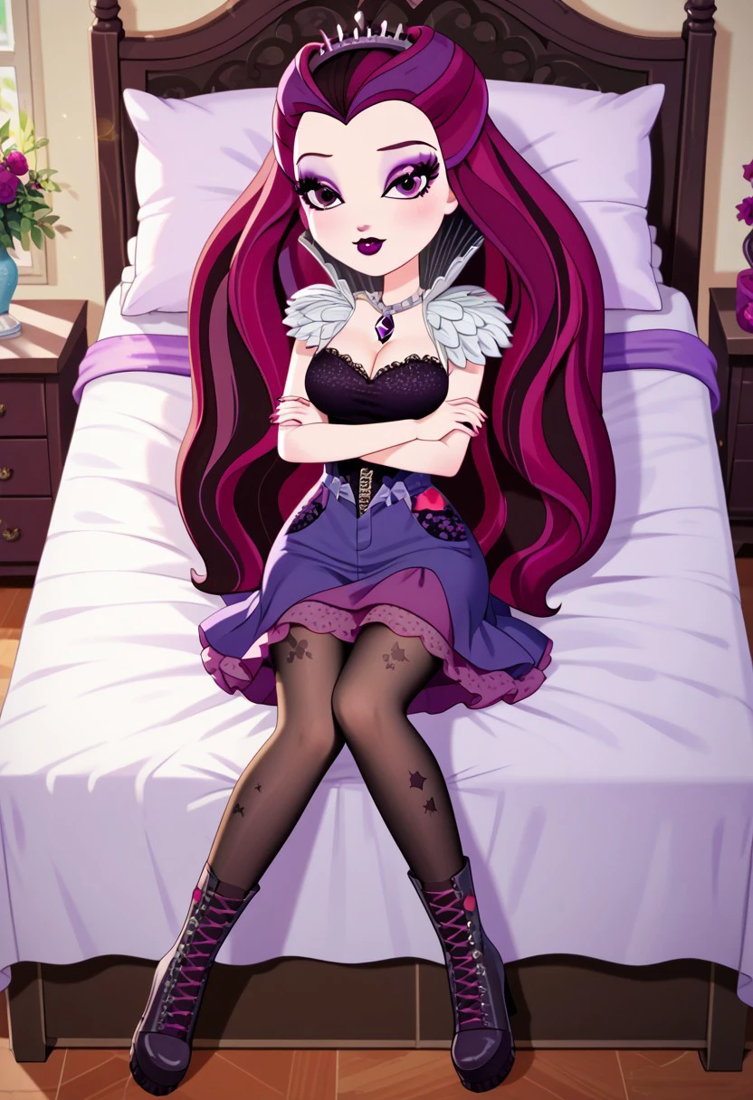 raven queen, multicolored hair, purple hair, magenta hair, dark hair, purple eyes, dark lipstick,