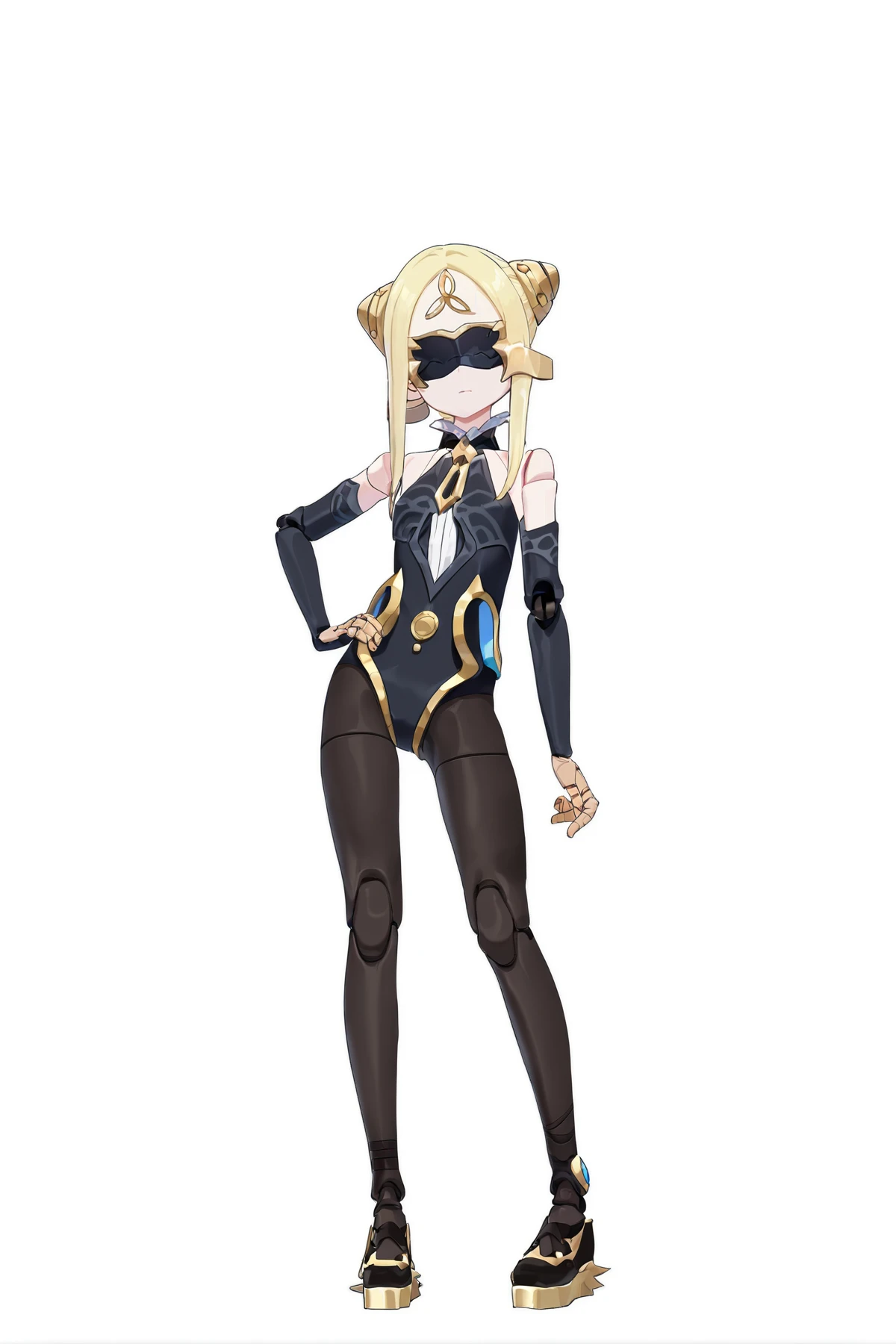 qianren, qianren's def clothes, 1girl, blindfold, blonde hair, pantyhose, joints, black shoes,