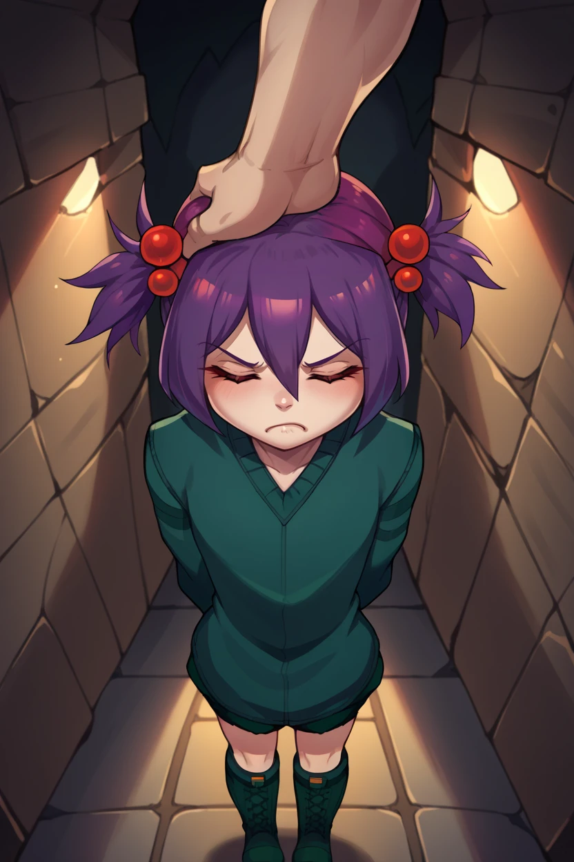 spid3r, short twintails, purple hair, hair bobbles