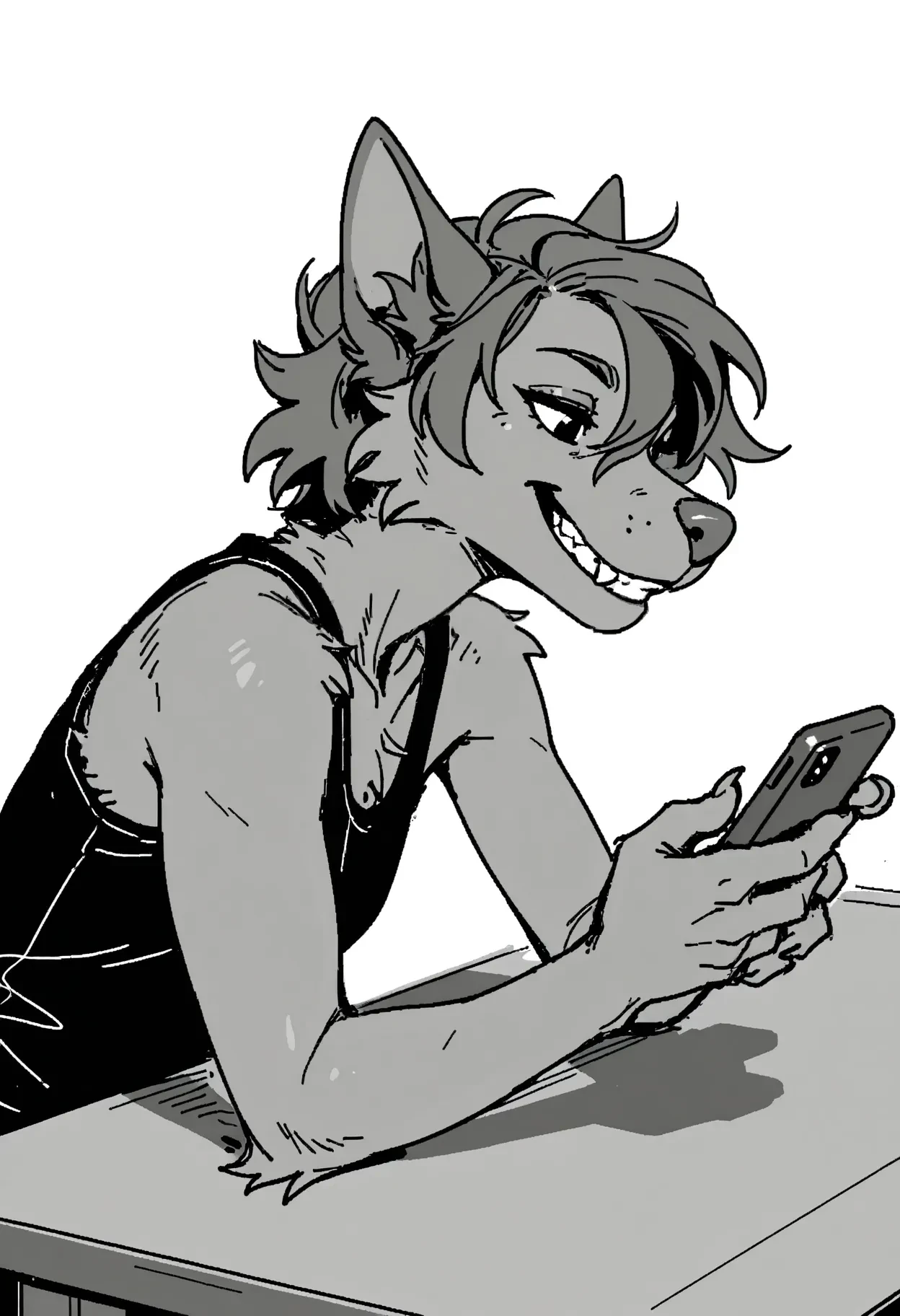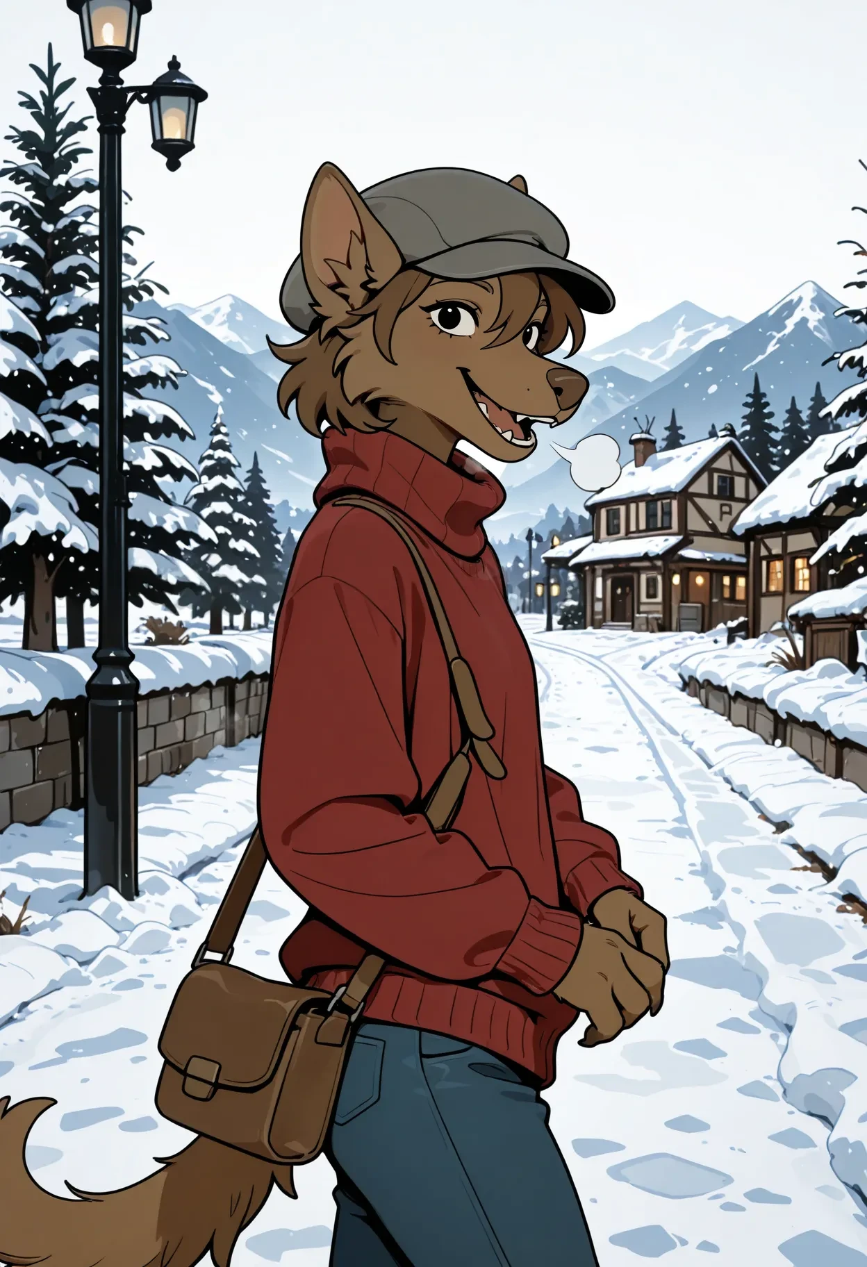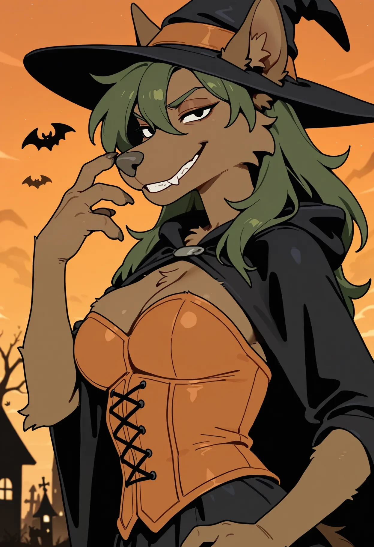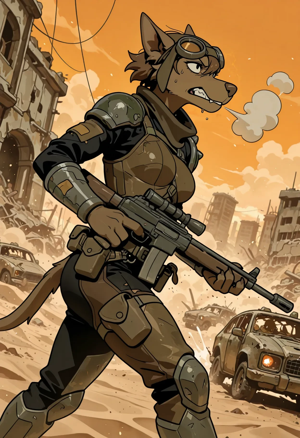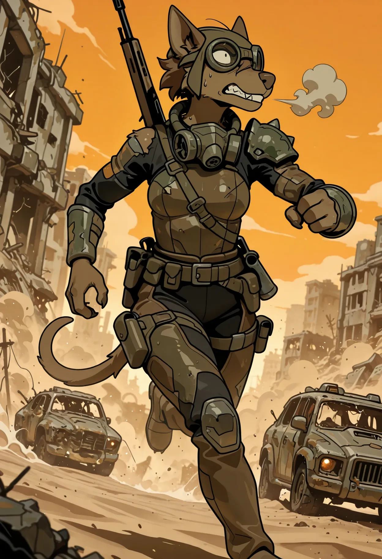 oliac, female, furry, anthro, black eyes, brown fur, brown body, brown nose, brown hair, short hair, dog, ears, tail,