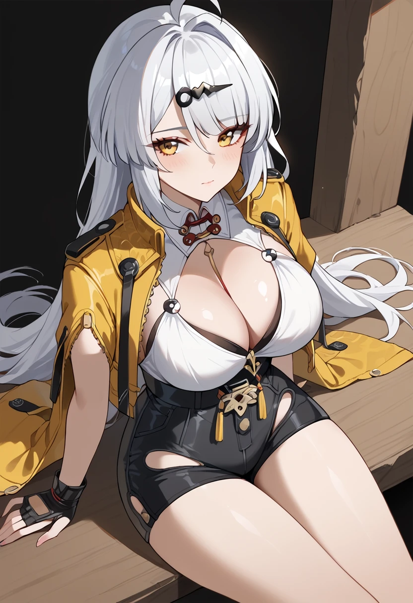 yixuanzzzxl1111 illustrious, yixuan, white hair, ahoge, long hair, yellow eyes, hairclip,Outfit promt (trails of ink):