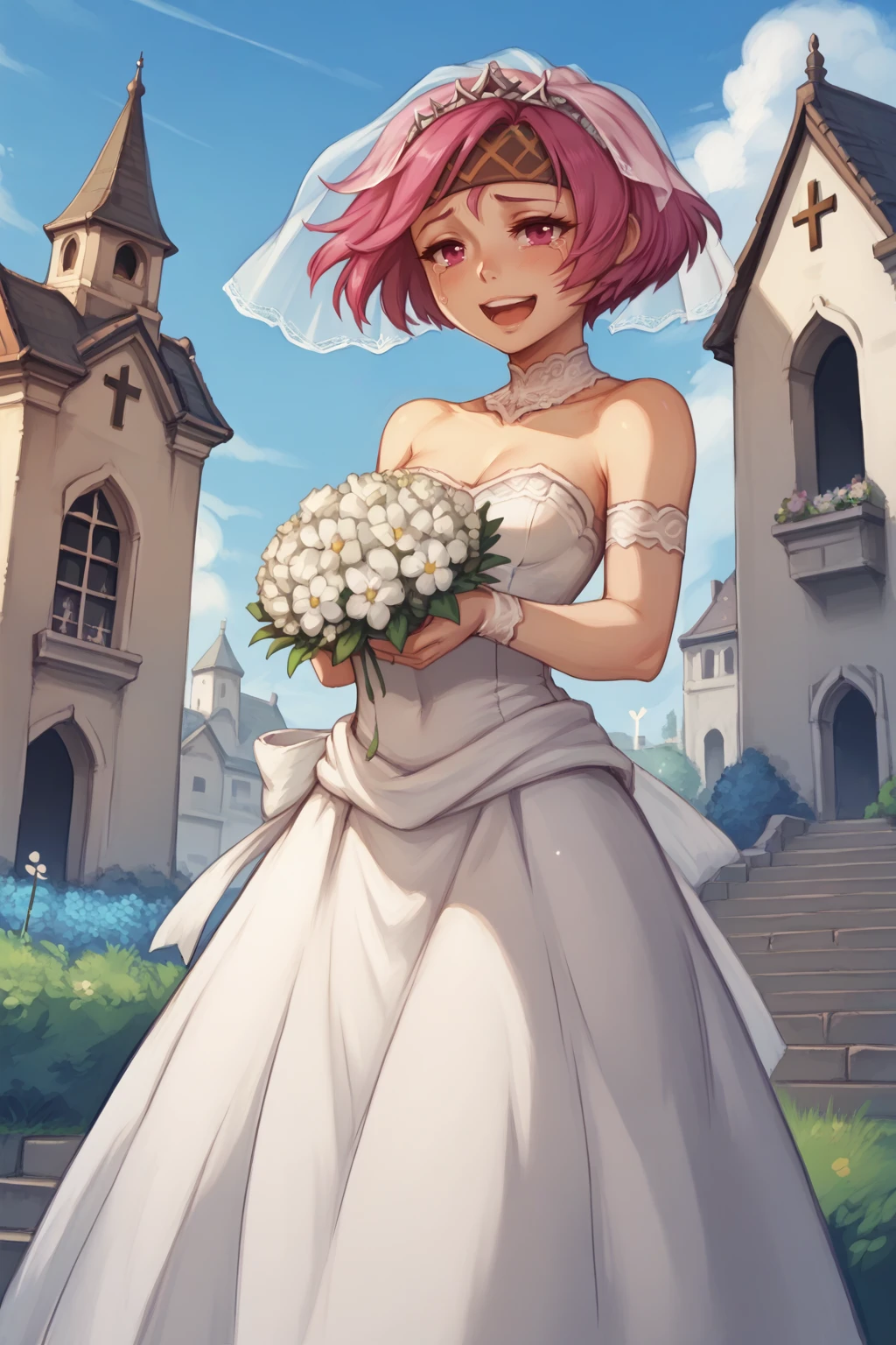 Main Prompts: NSNeimiFE8, short hair, pink eyes, headband