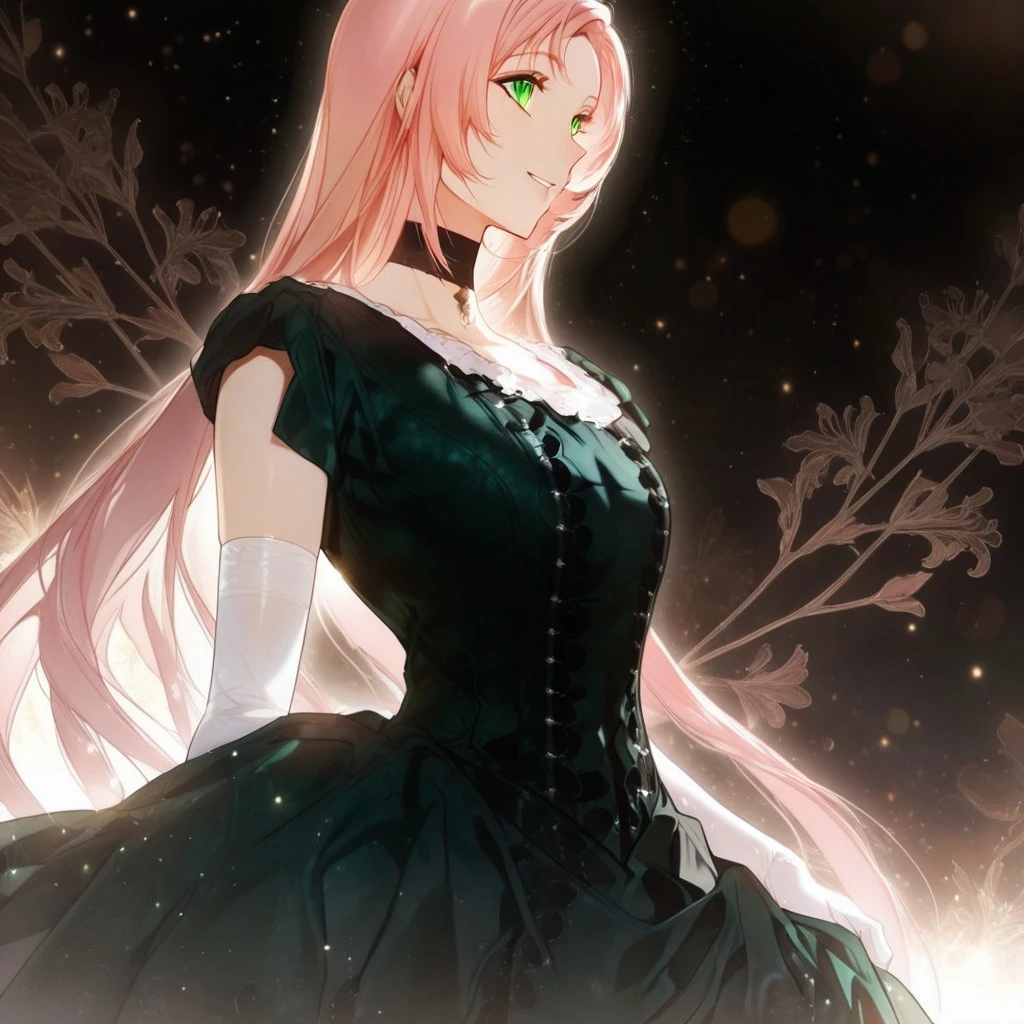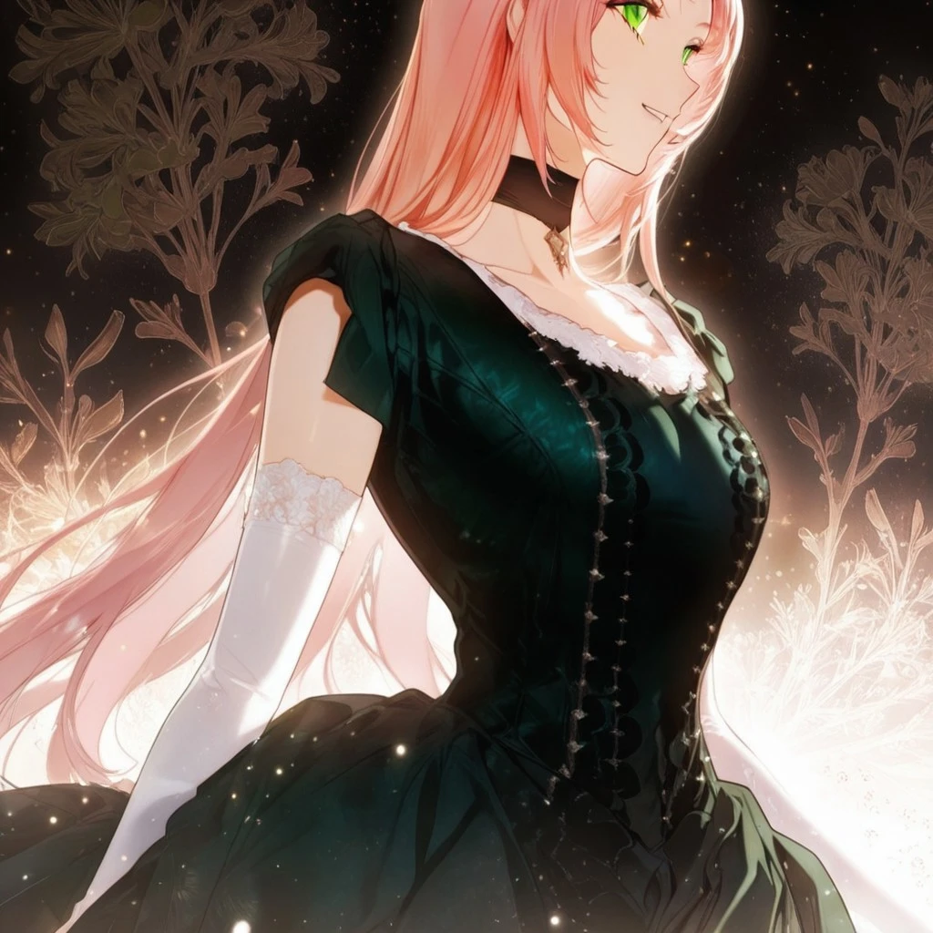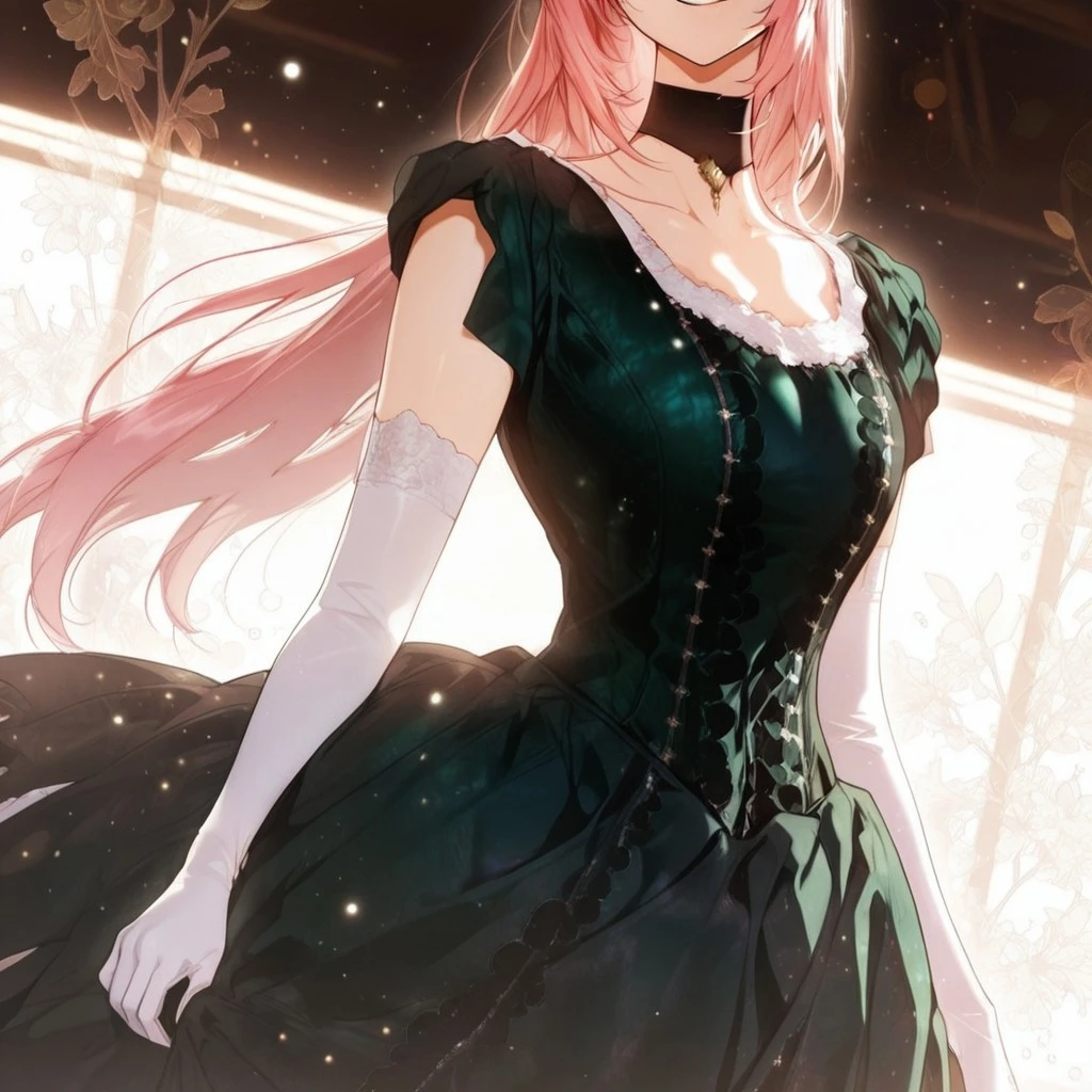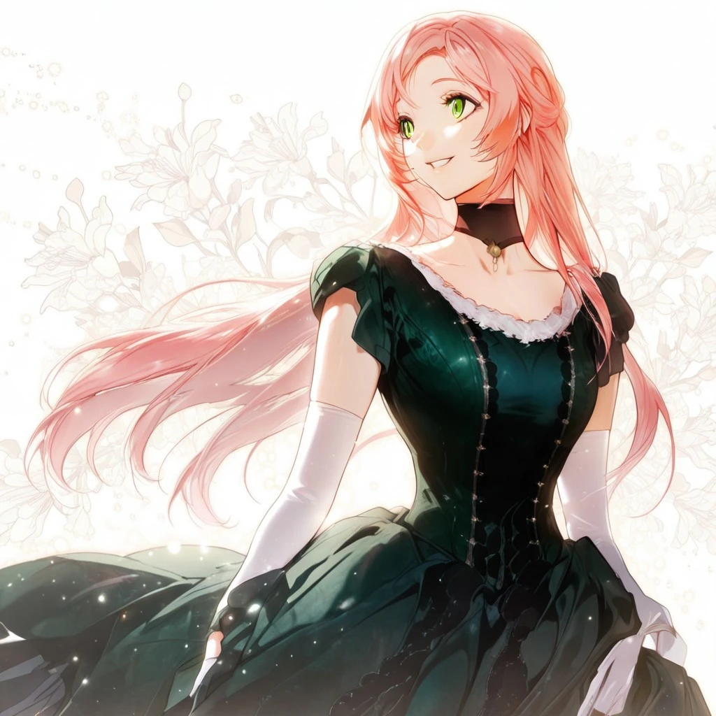 shurioutfit1, dark green dress, white sleeve gloves, choker
