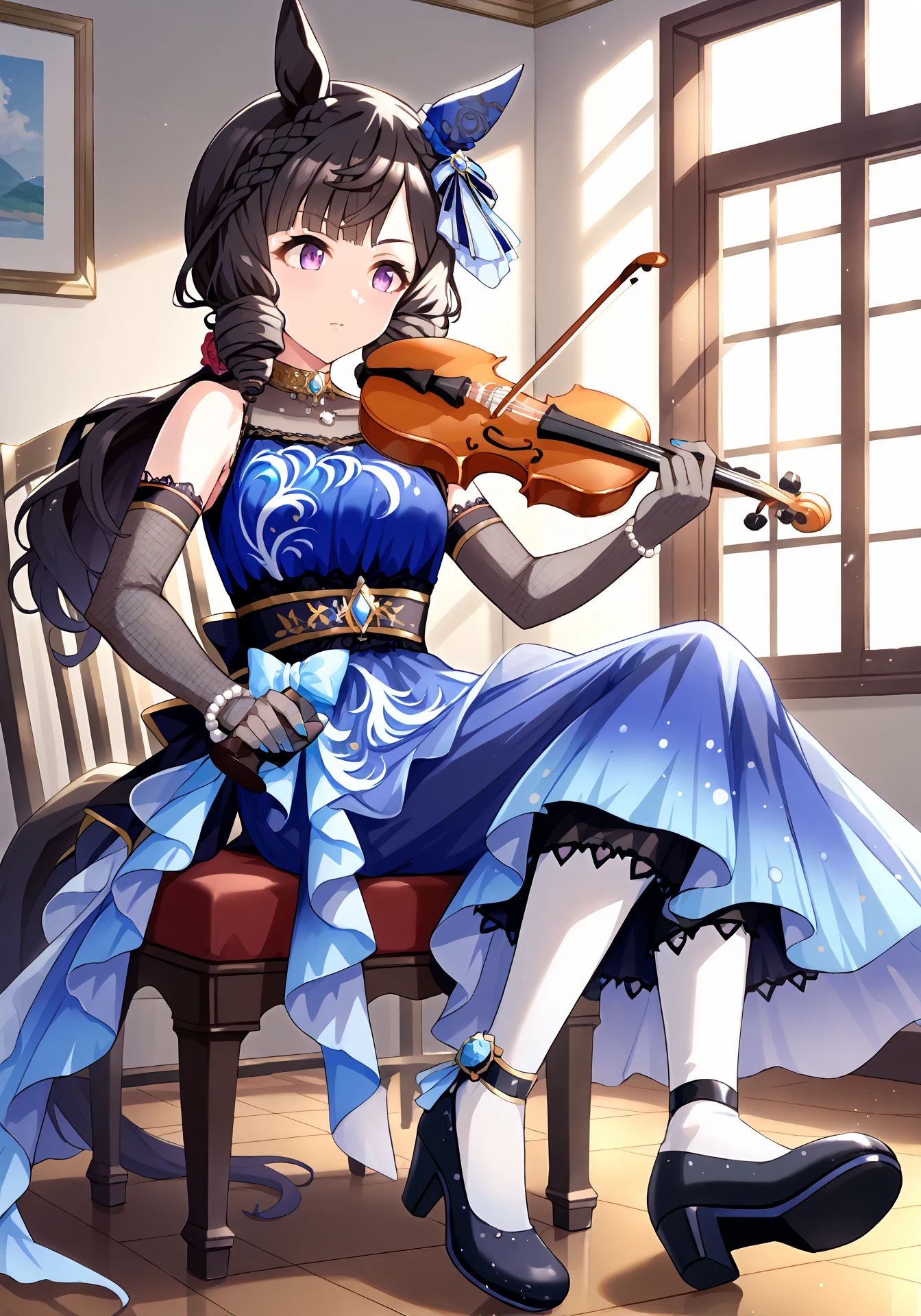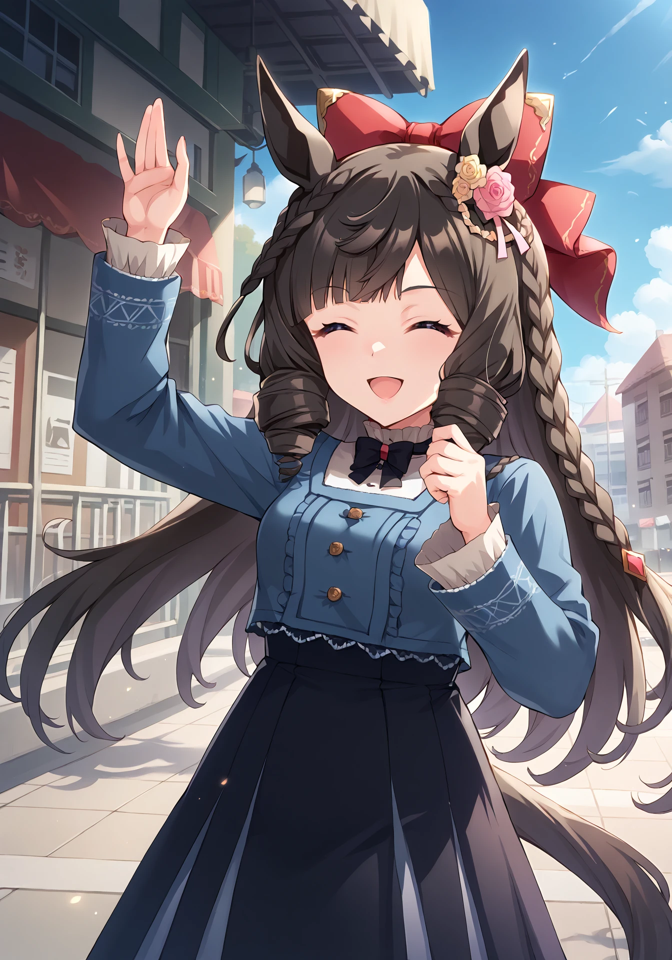 DRuby,black hair,drill hair,horse girl,long hair,purple eyes,medium breasts,braid