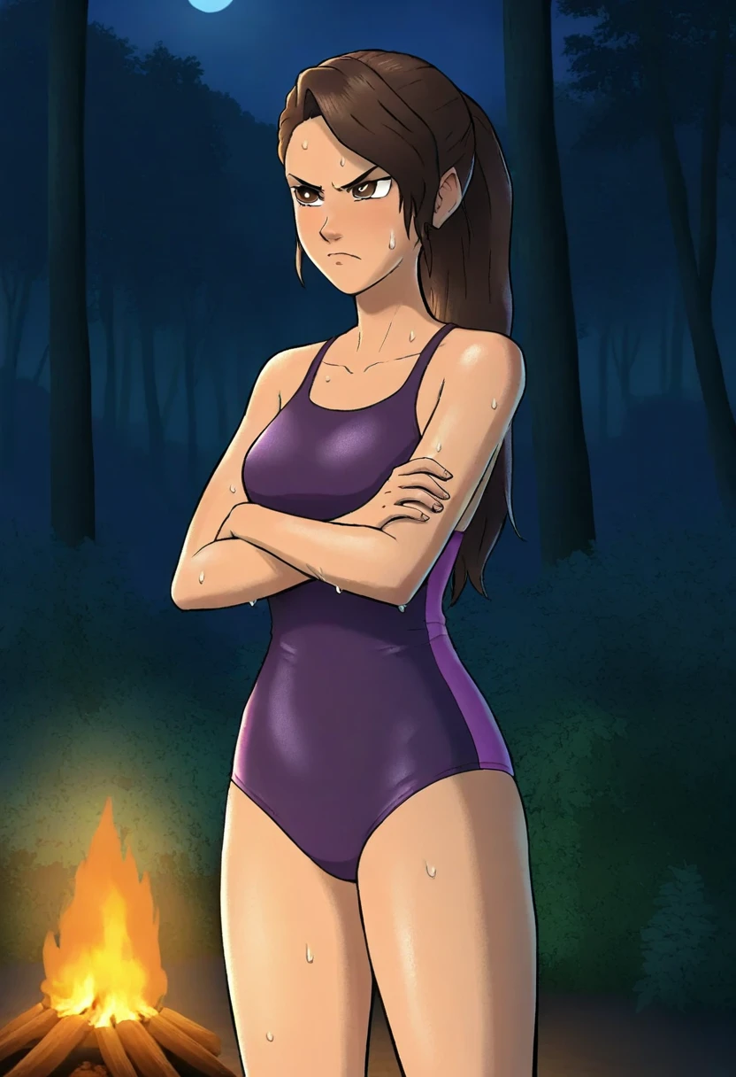Outfit (Camp Cretaceous) - purple one-piece swimsuit, competition swimsuit