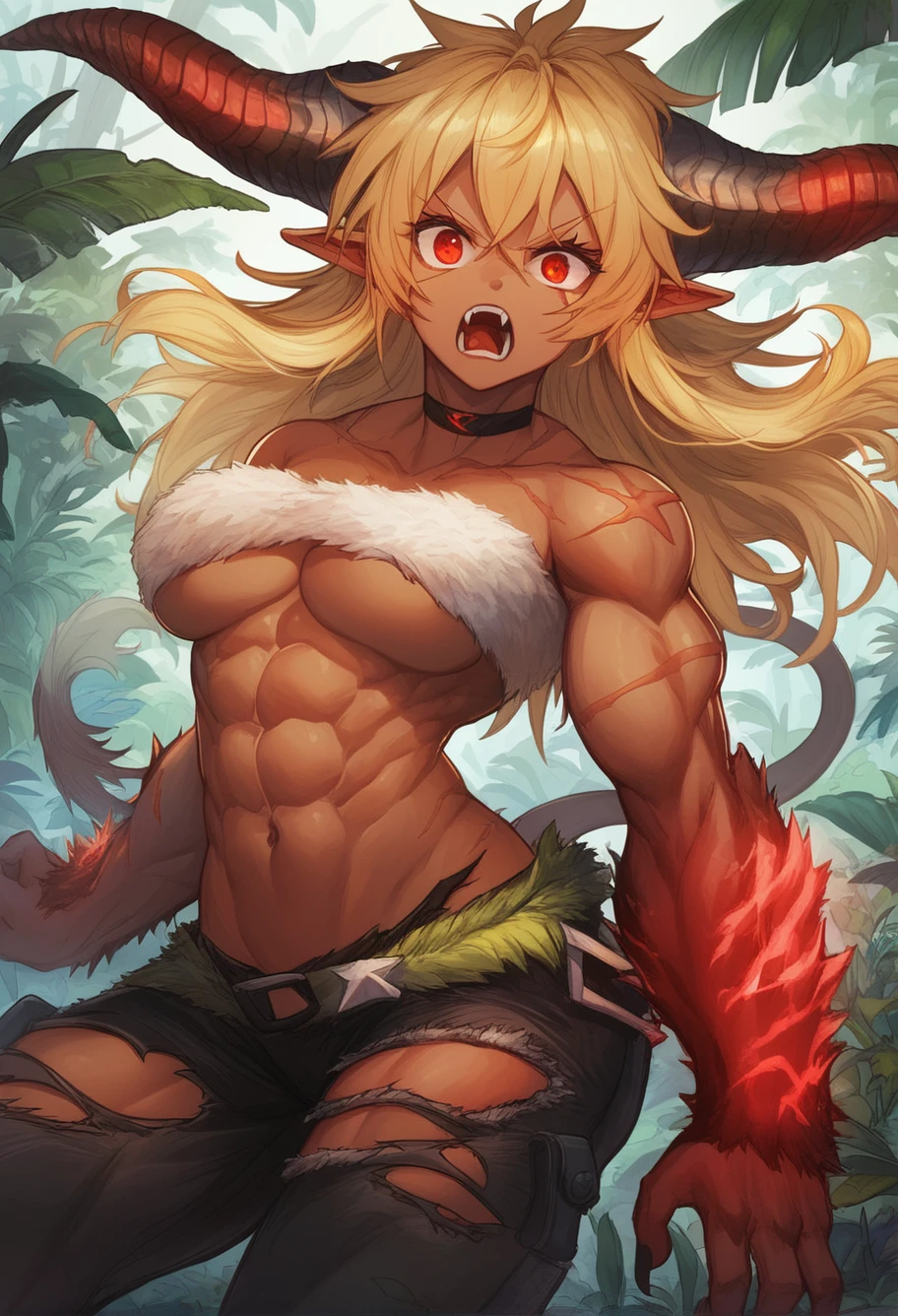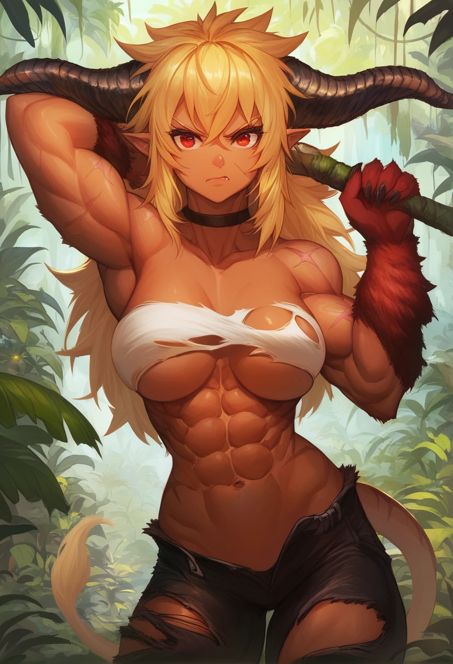 If you want the furious appearance more, you have to prompt "red arms or furry arms" they can also be used together for better results