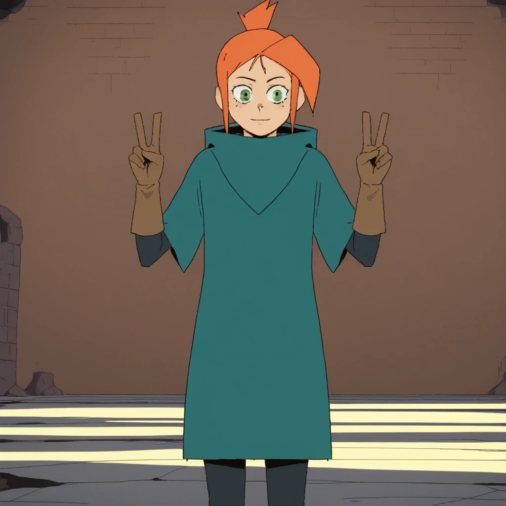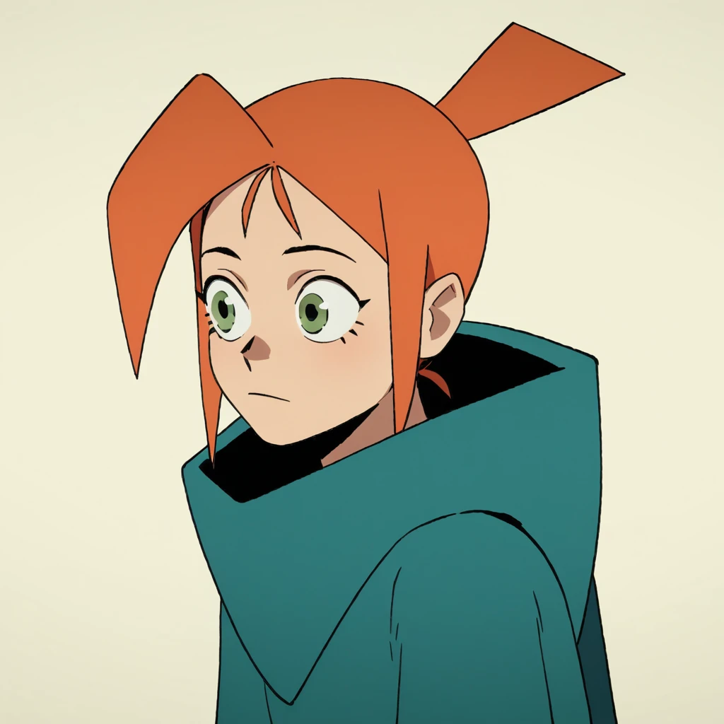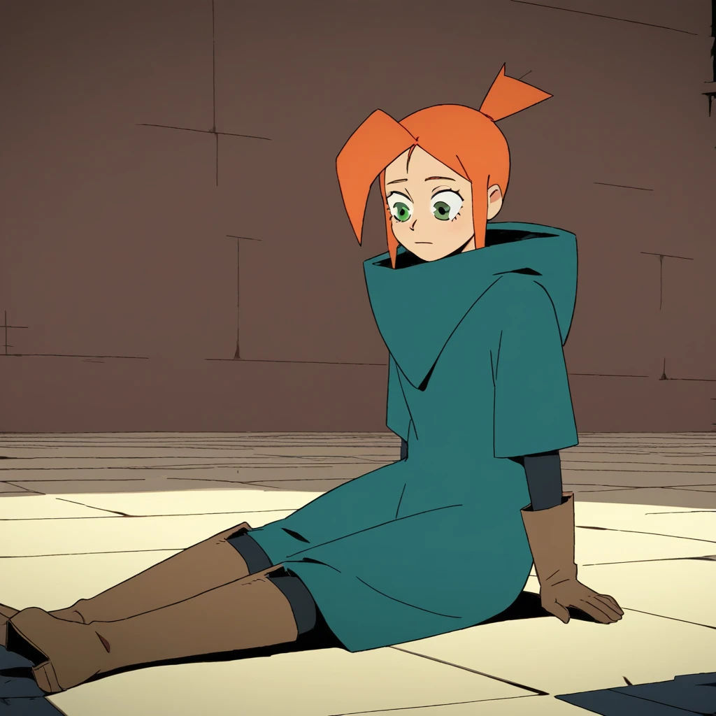 LaureEsposito, 1girl, solo, orange hair, green eyes,