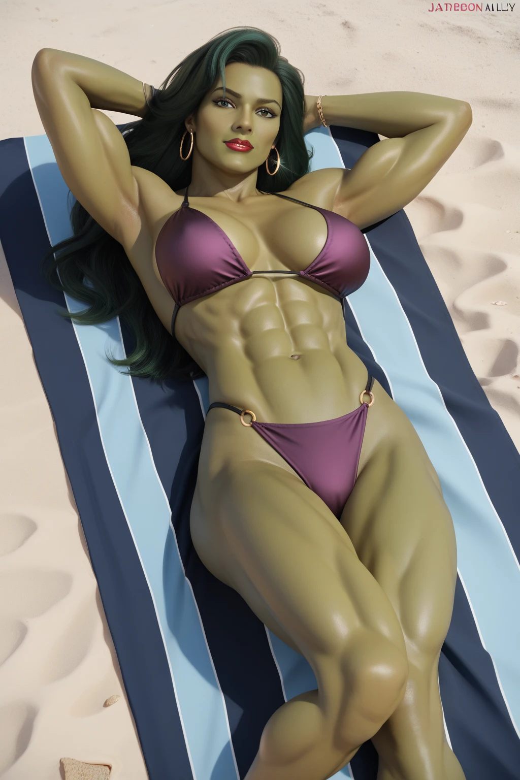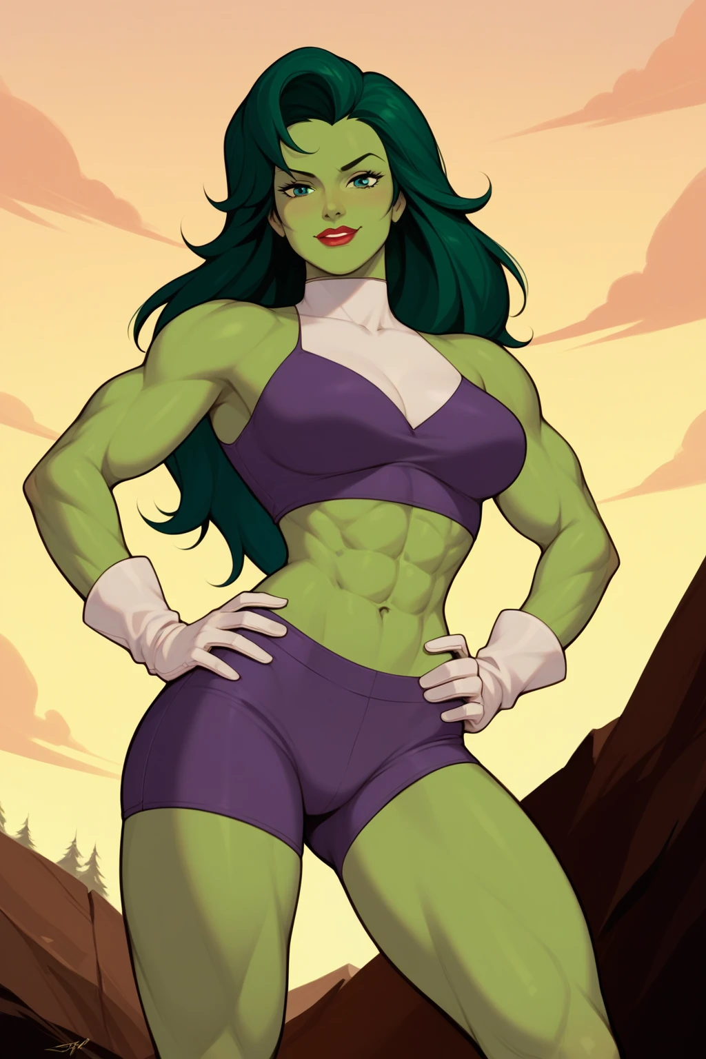Base She-Hulk Prompt: jennifer walters, long hair, green hair, green eyes, muscular female