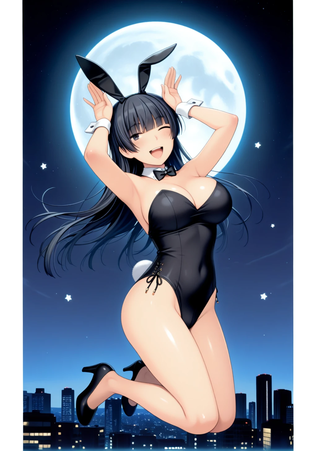 "black hair, long hair,blunt bangs,black eyes"