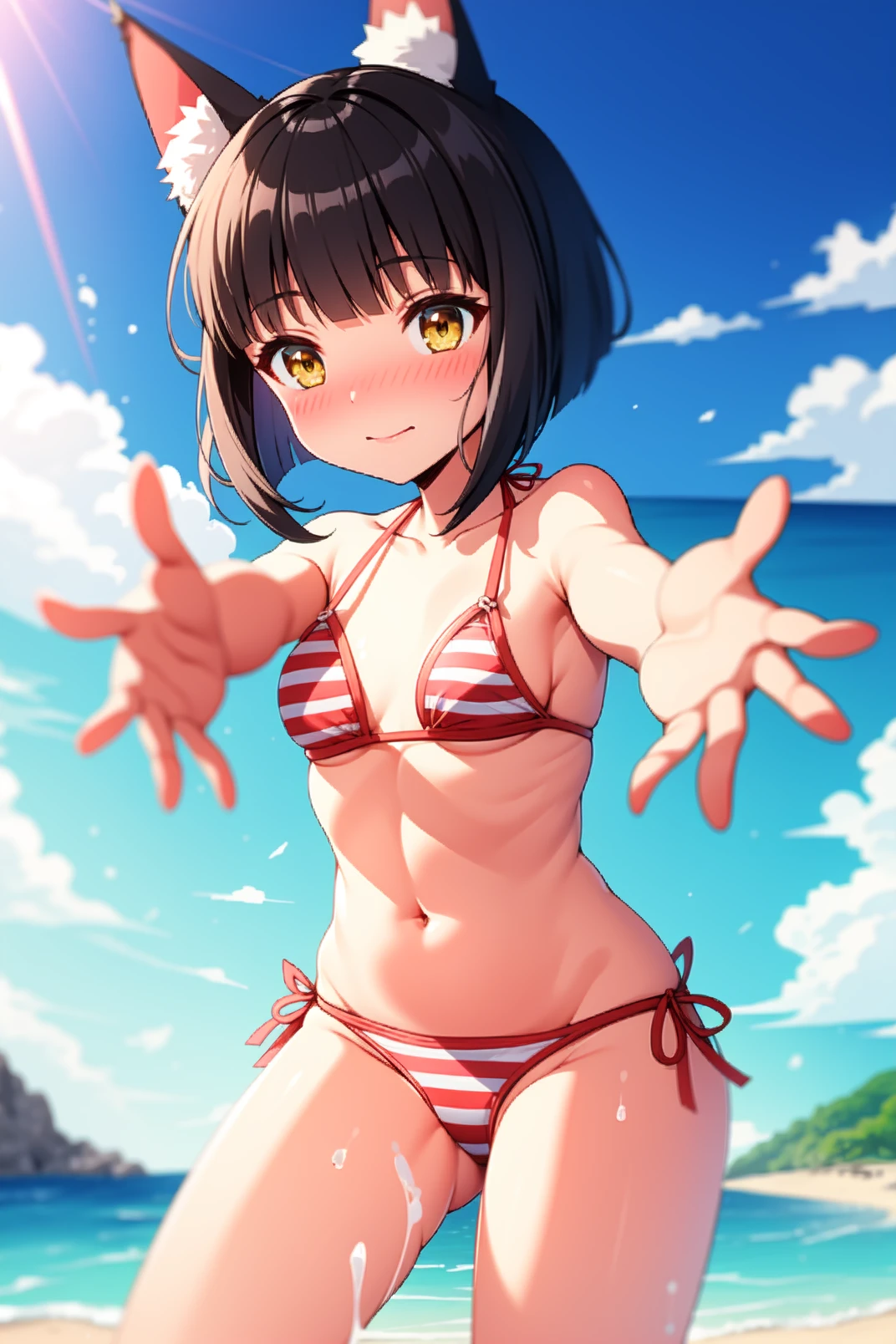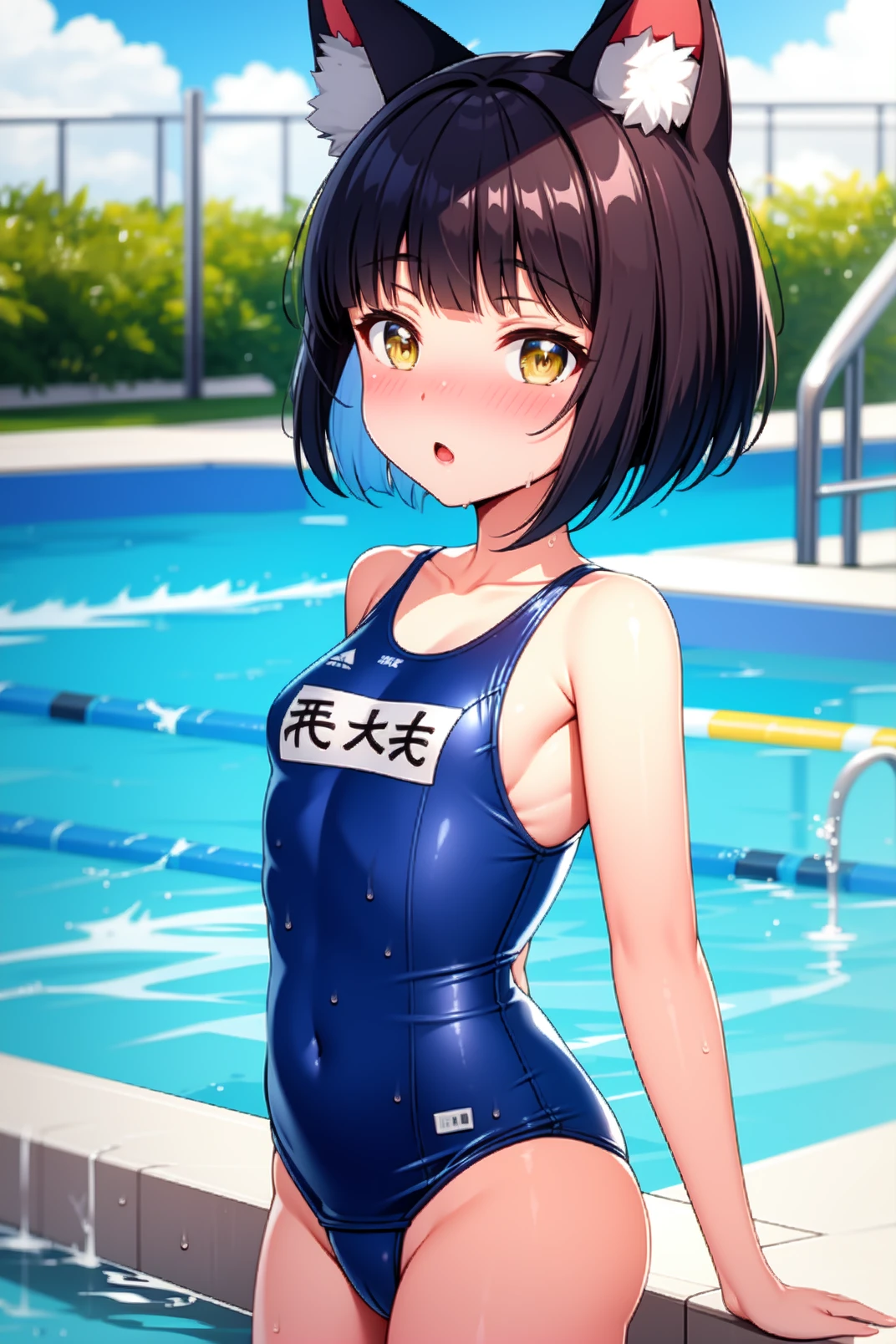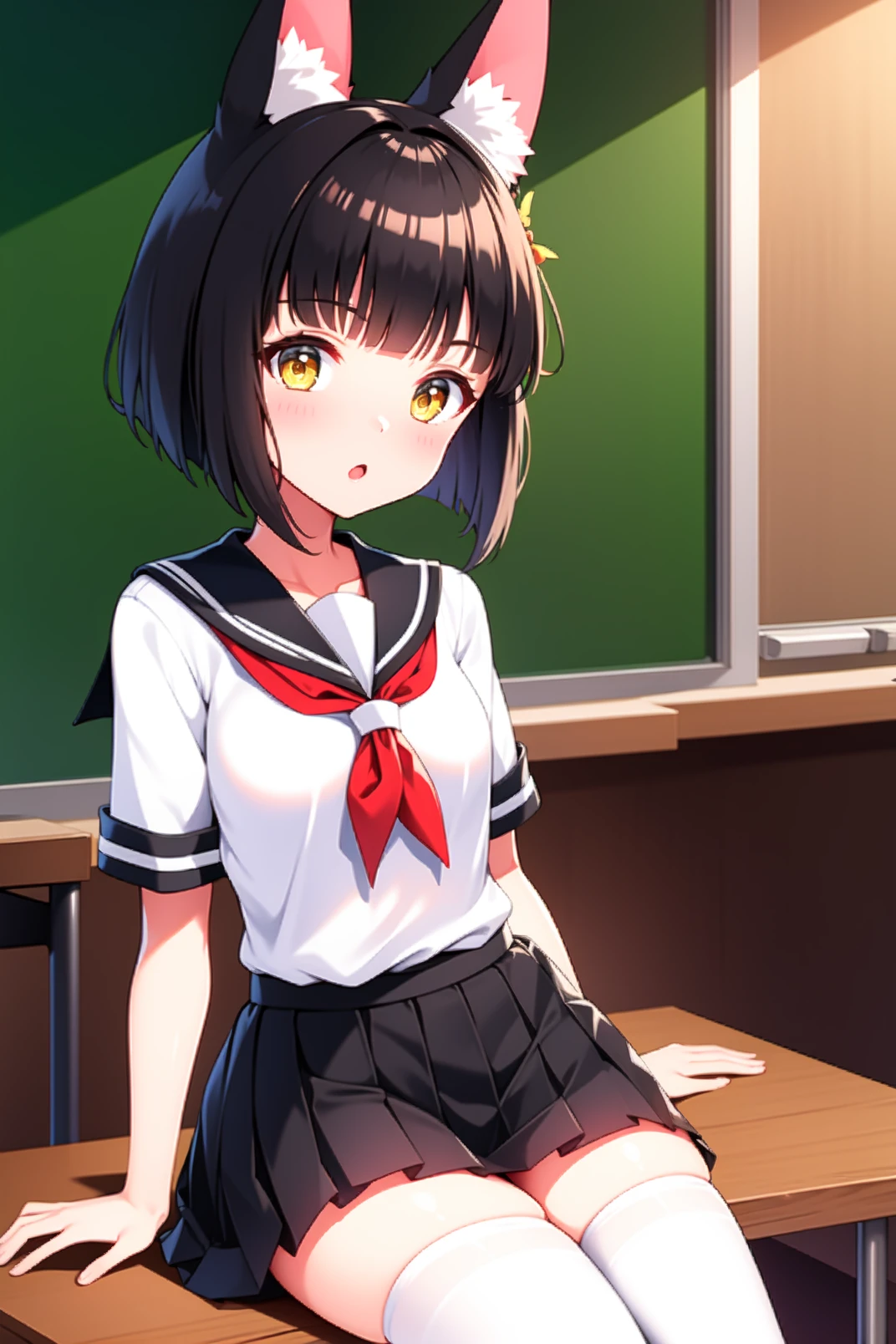 mutsu, yellow eyes, black hair, short hair, blunt bangs, fox ears, animal ear fluff