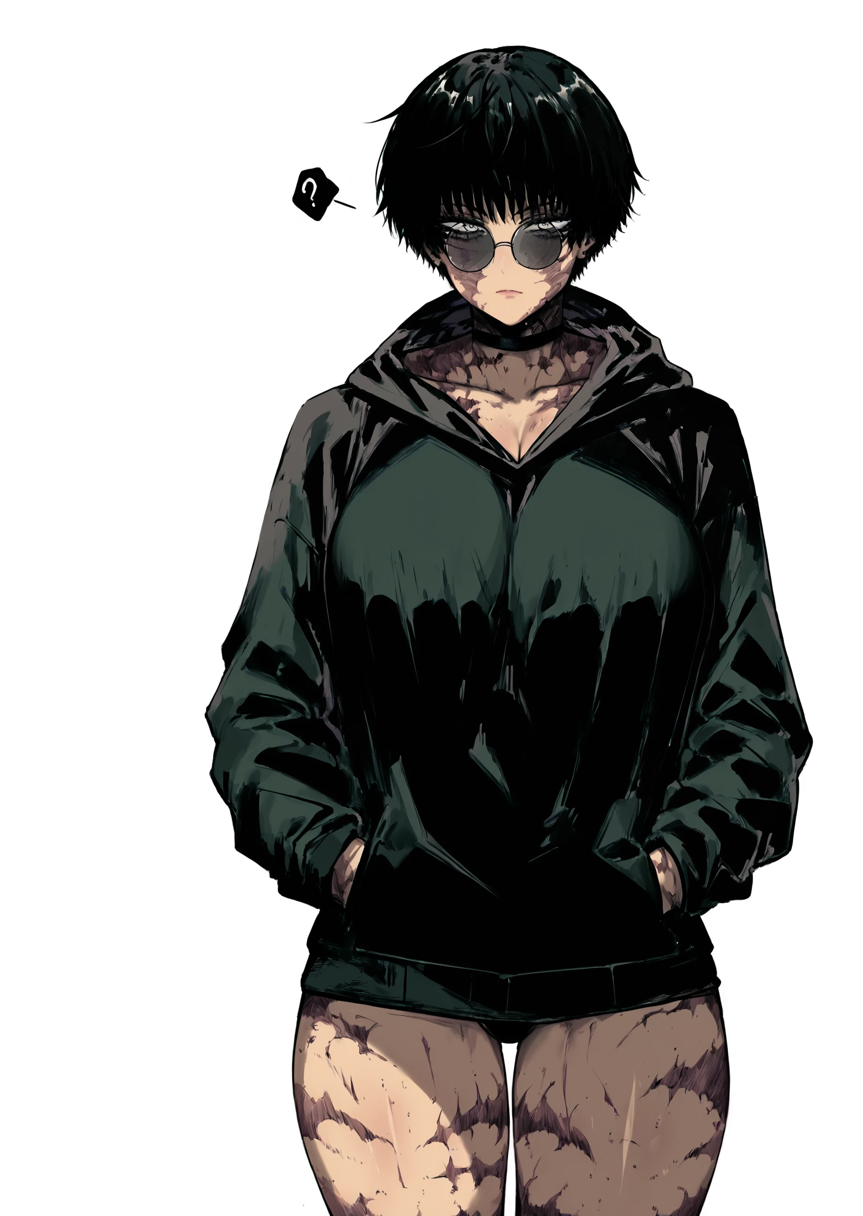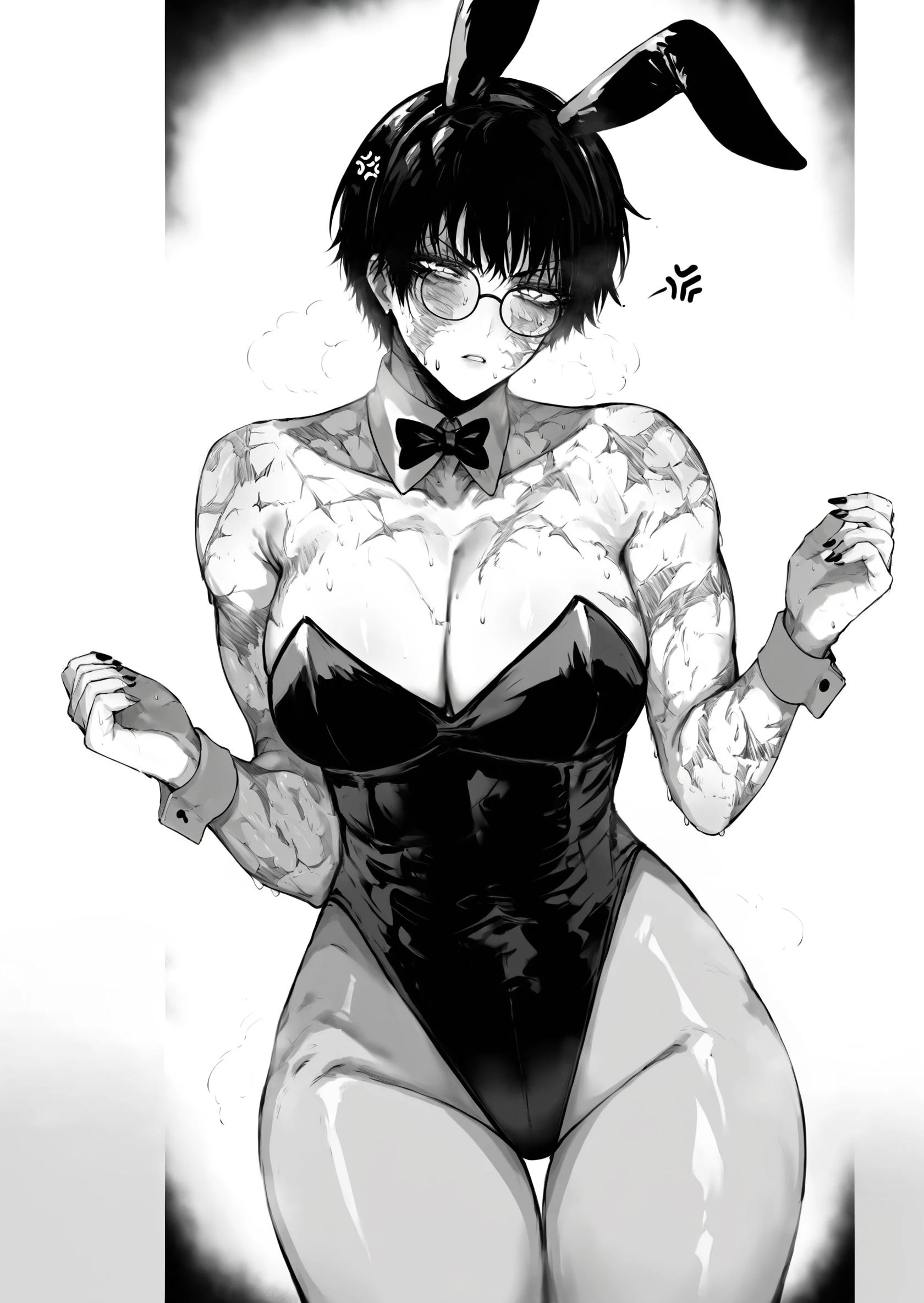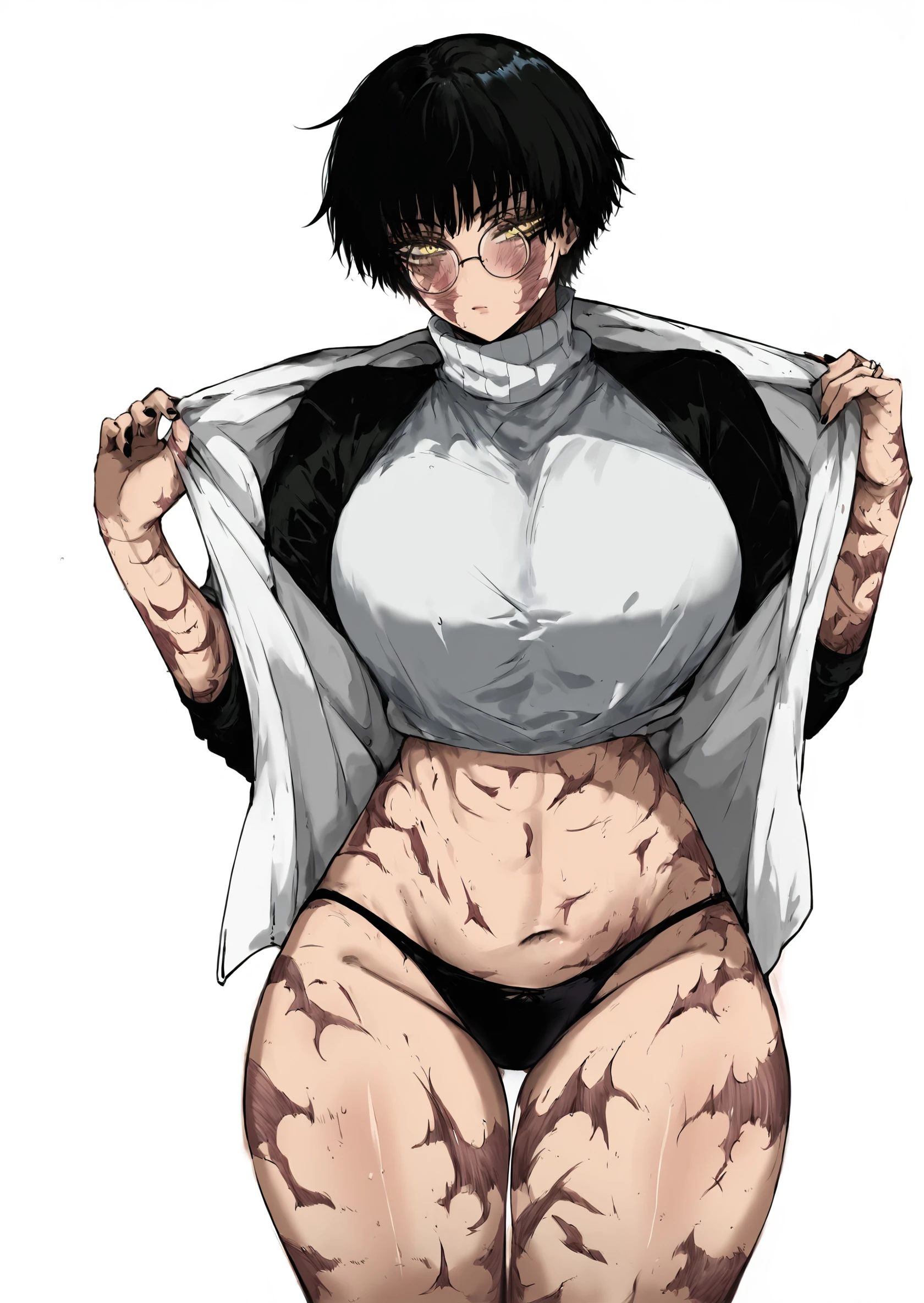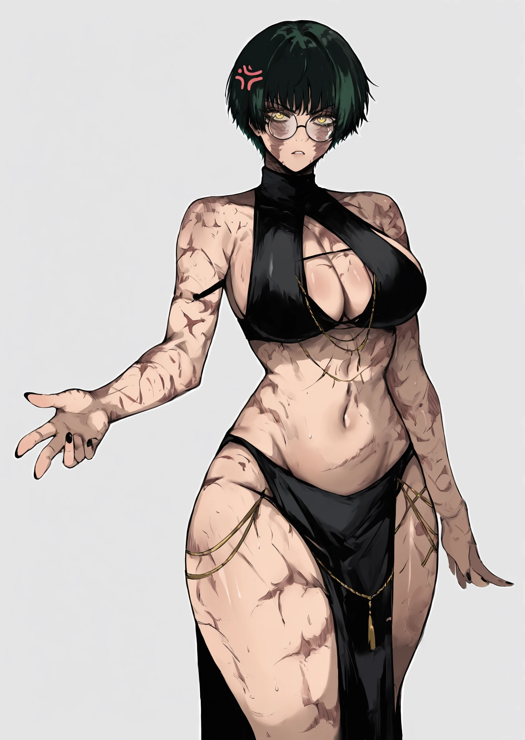 1girl, burn scar, muscular female
