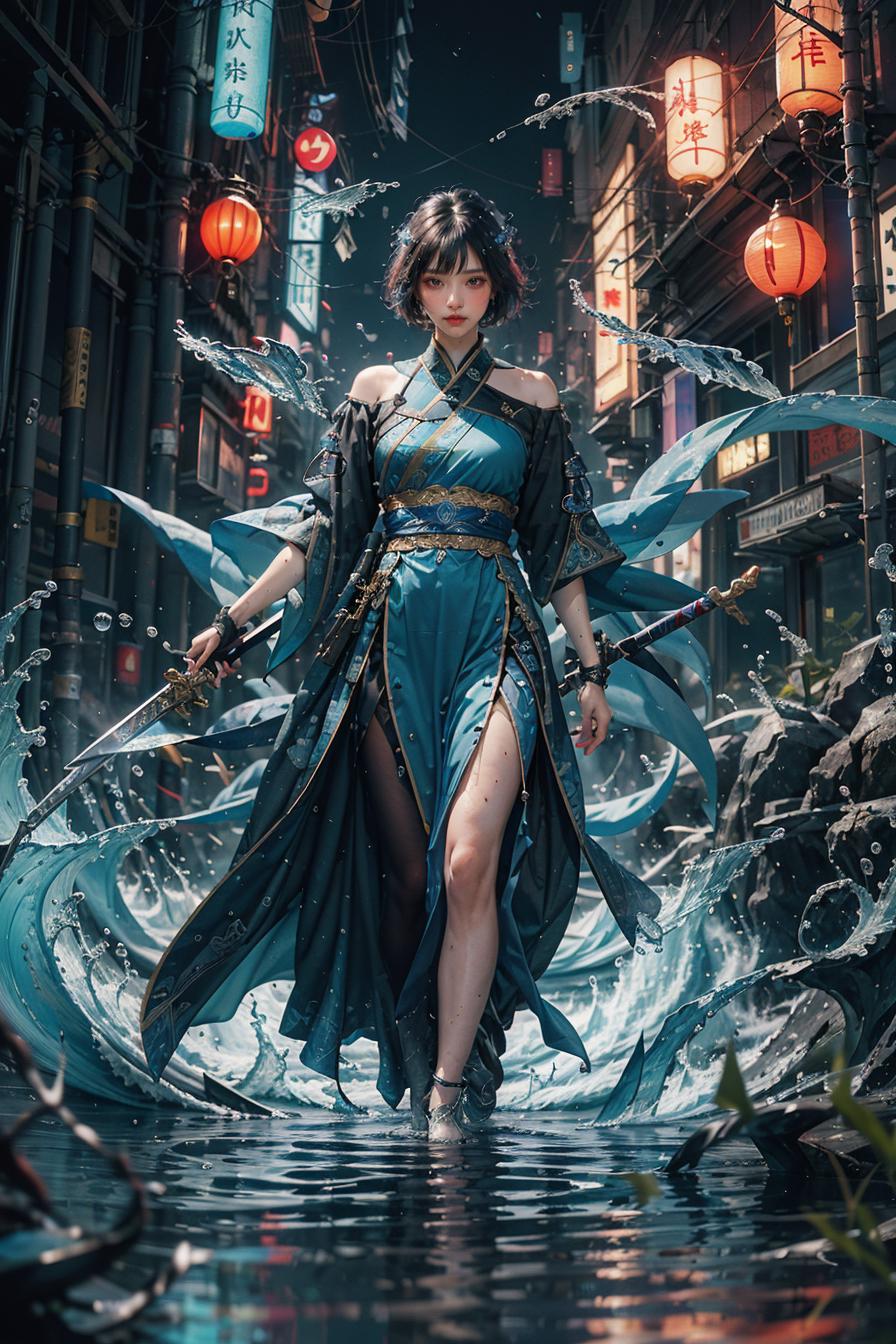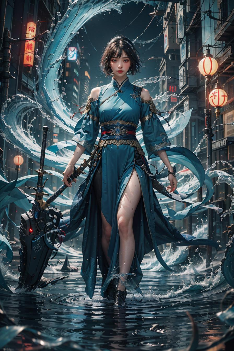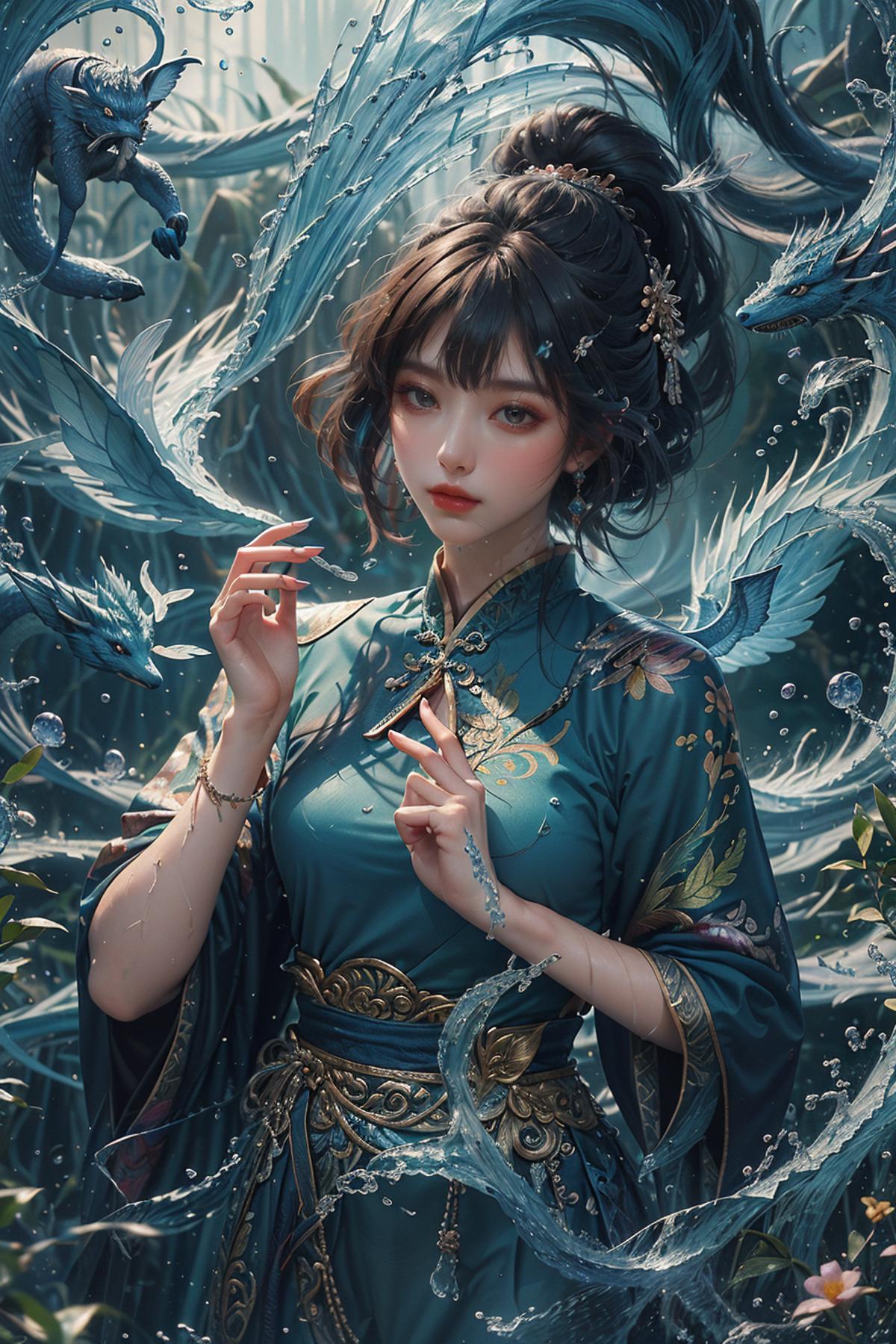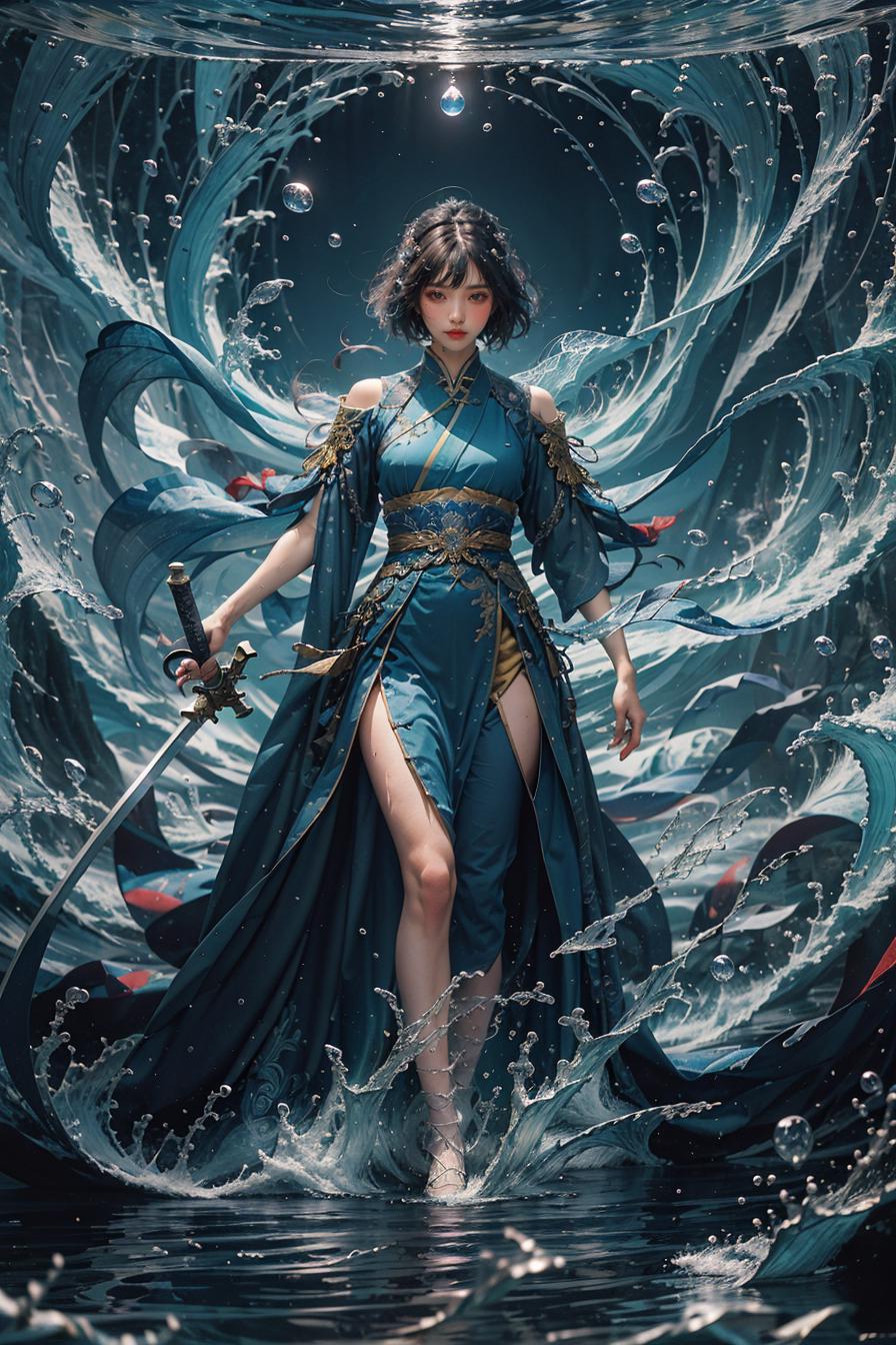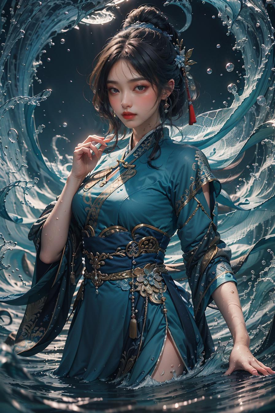 <lora:Water God Gonggongshi:0.8>,shuishen,gonggongshi,water,waves, (masterpiece,topquality,official art,beautiful and aesthetic:1.2)